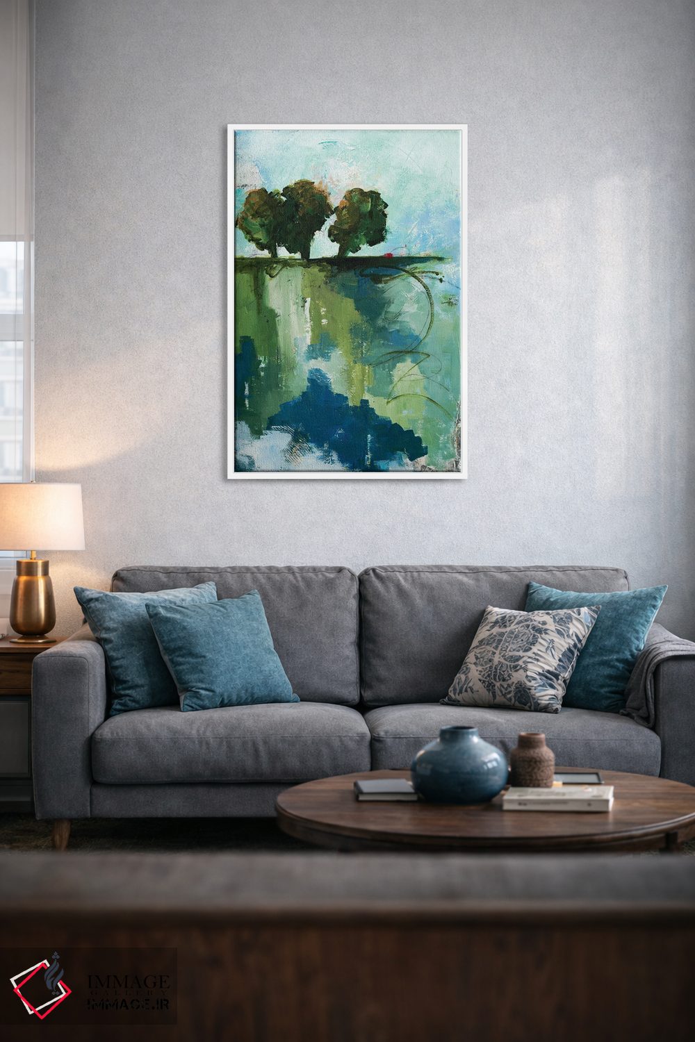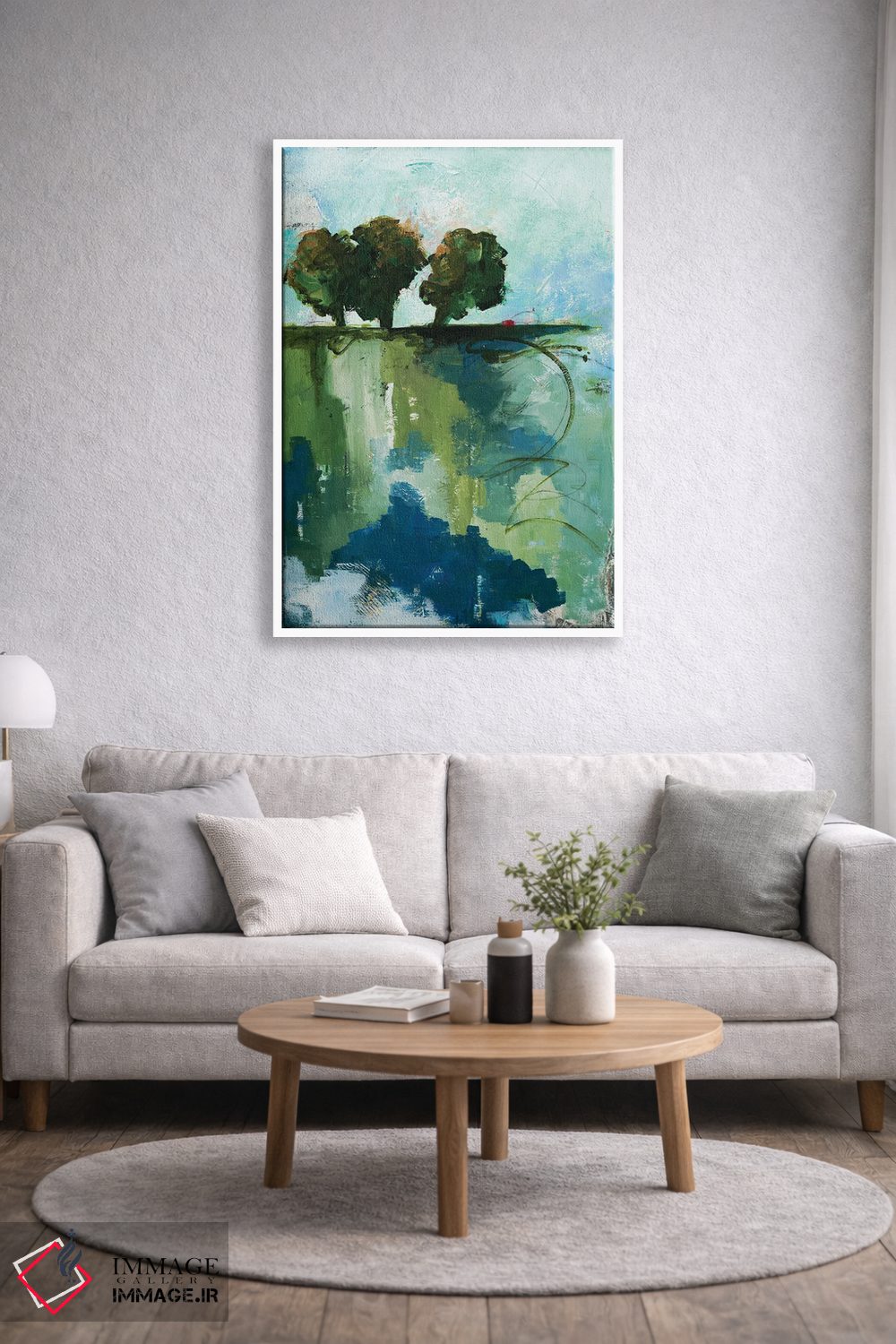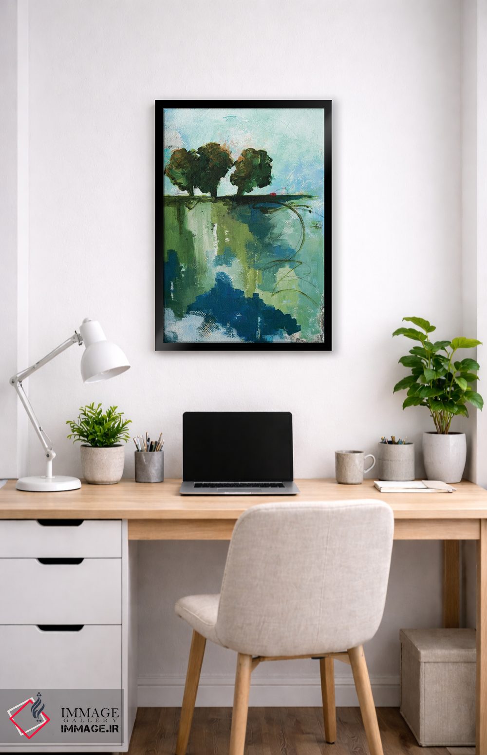 براساس پالت سرد اثر، قاب سفید مات (فریم باریک) پیشنهاد اول است و نقرهای برسخورده (متالیک) مکمل. برای سفارشهای پروژهای با ابعاد و قابهای اختصاصی با ایماژ در تماس باشید.