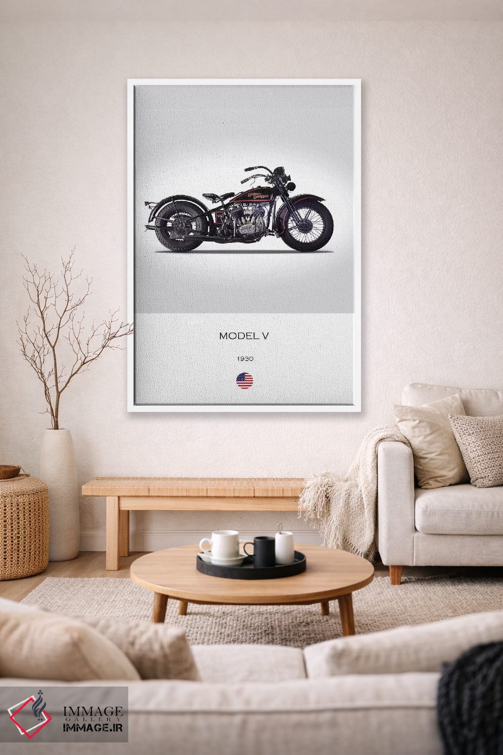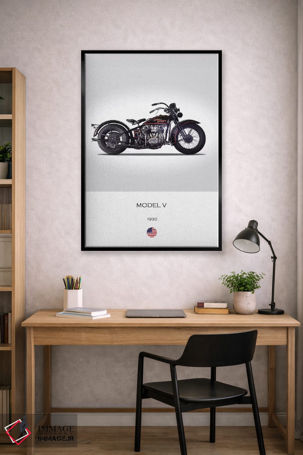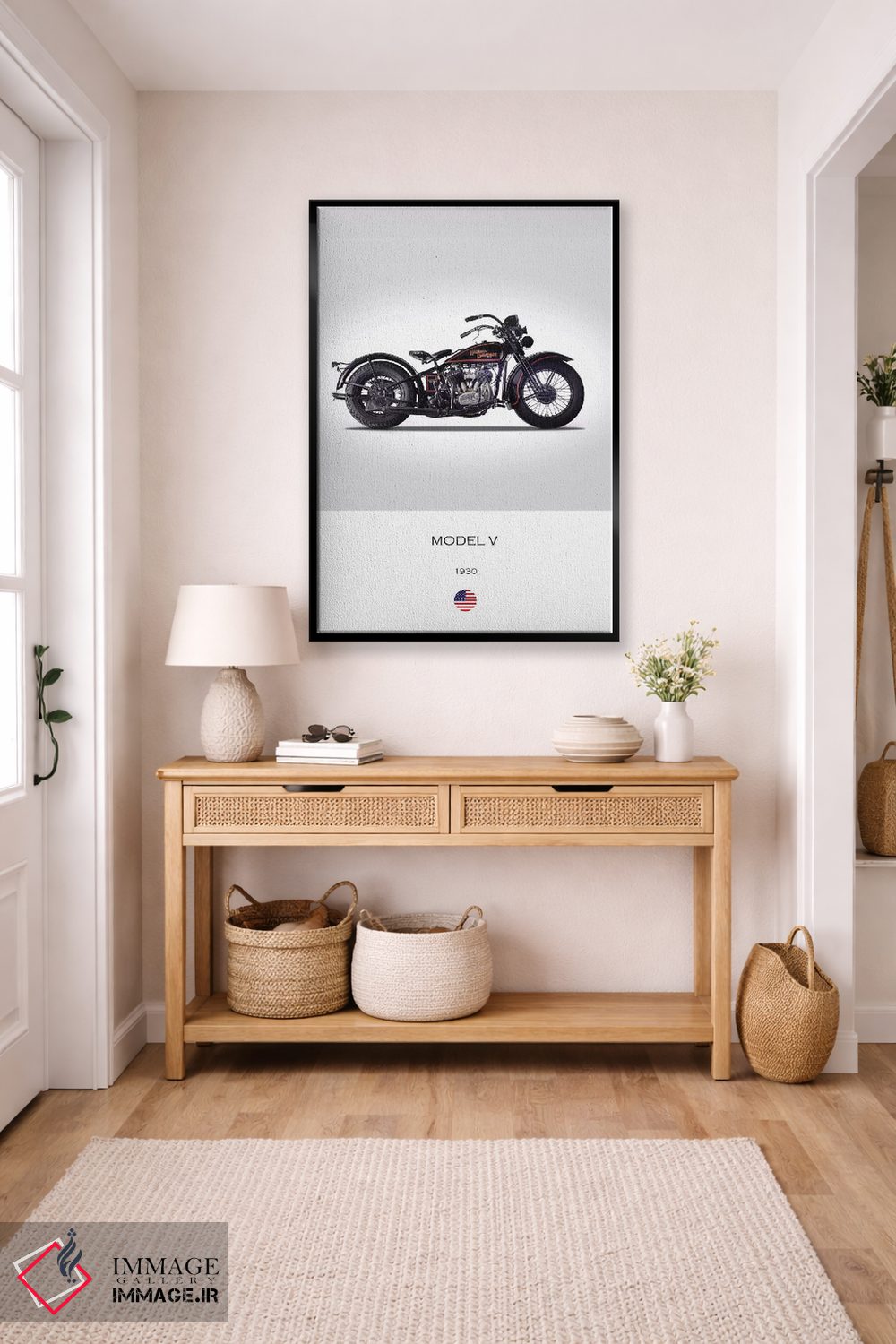 این تابلو با عنوان «موتورسیکلت هارلی—دیویدسون مدل V سال ۱۹۳۰» اثرِ «مارک روگان» به دیوار، شخصیت و جهت میدهد؛ برای فضاهایی با نور طبیعی پیشنهاد میشود. یک انتخاب خوشسلیقه است که با گذر زمان هم تازه میماند.