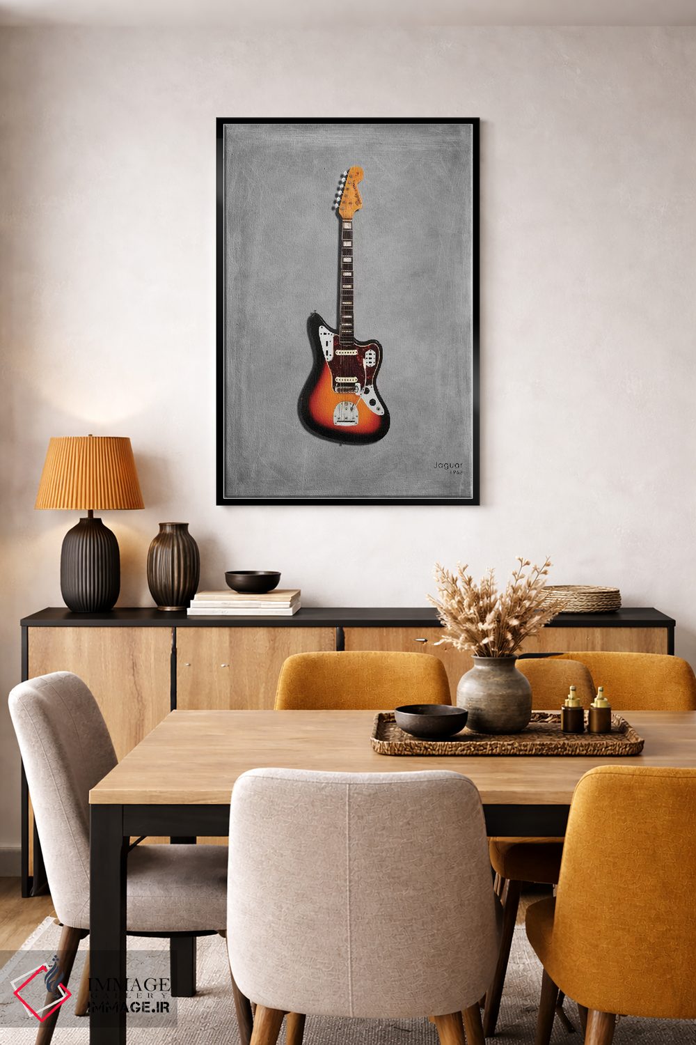 براساس پالت گرم اثر، قاب تیک گرم (چوبی) پیشنهاد اول است و مشکی مات (فریم متوسط) مکمل. برای سفارشهای پروژهای با ابعاد و قابهای اختصاصی با ایماژ در تماس باشید.