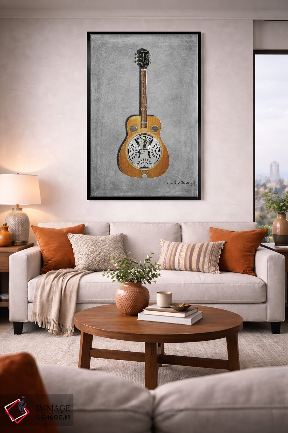 براساس پالت گرم اثر، قاب تیک گرم (چوبی) پیشنهاد اول است و مشکی مات (فریم متوسط) مکمل. برای سفارشهای پروژهای با ابعاد و قابهای اختصاصی با ایماژ در تماس باشید.