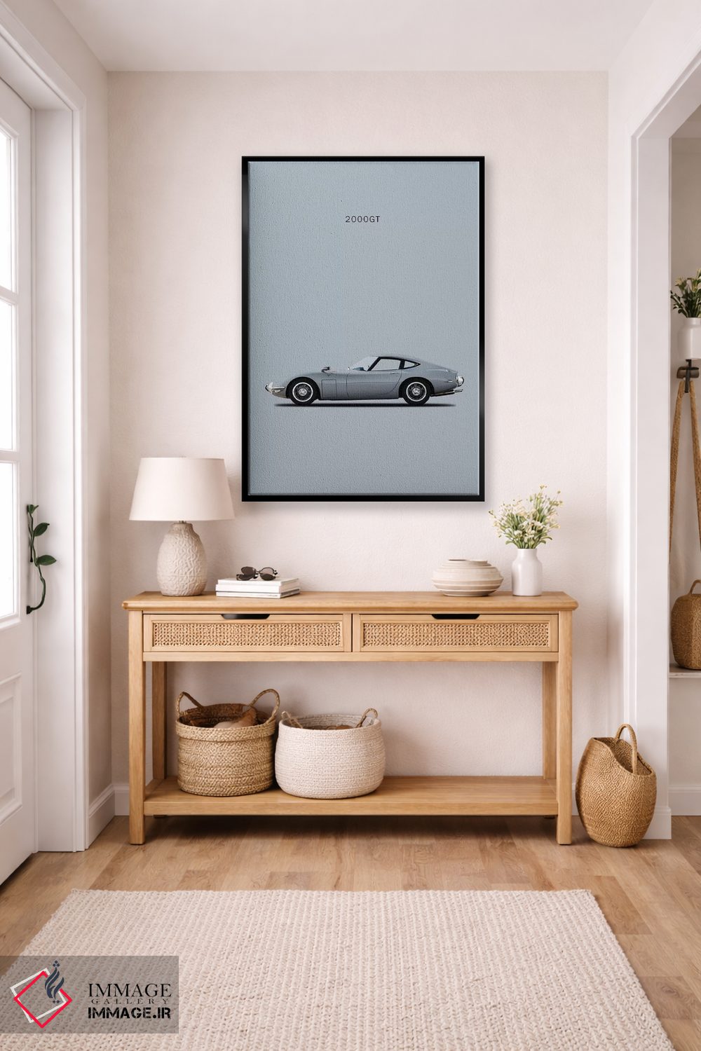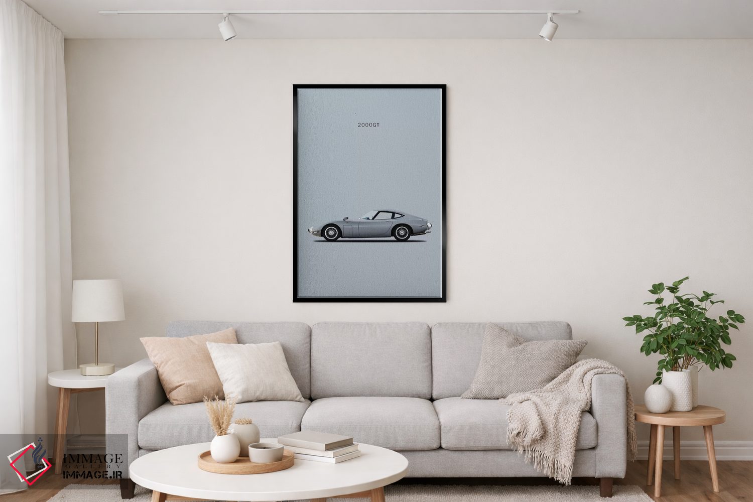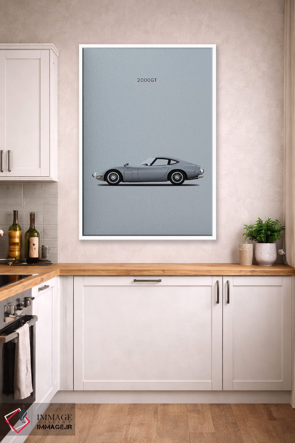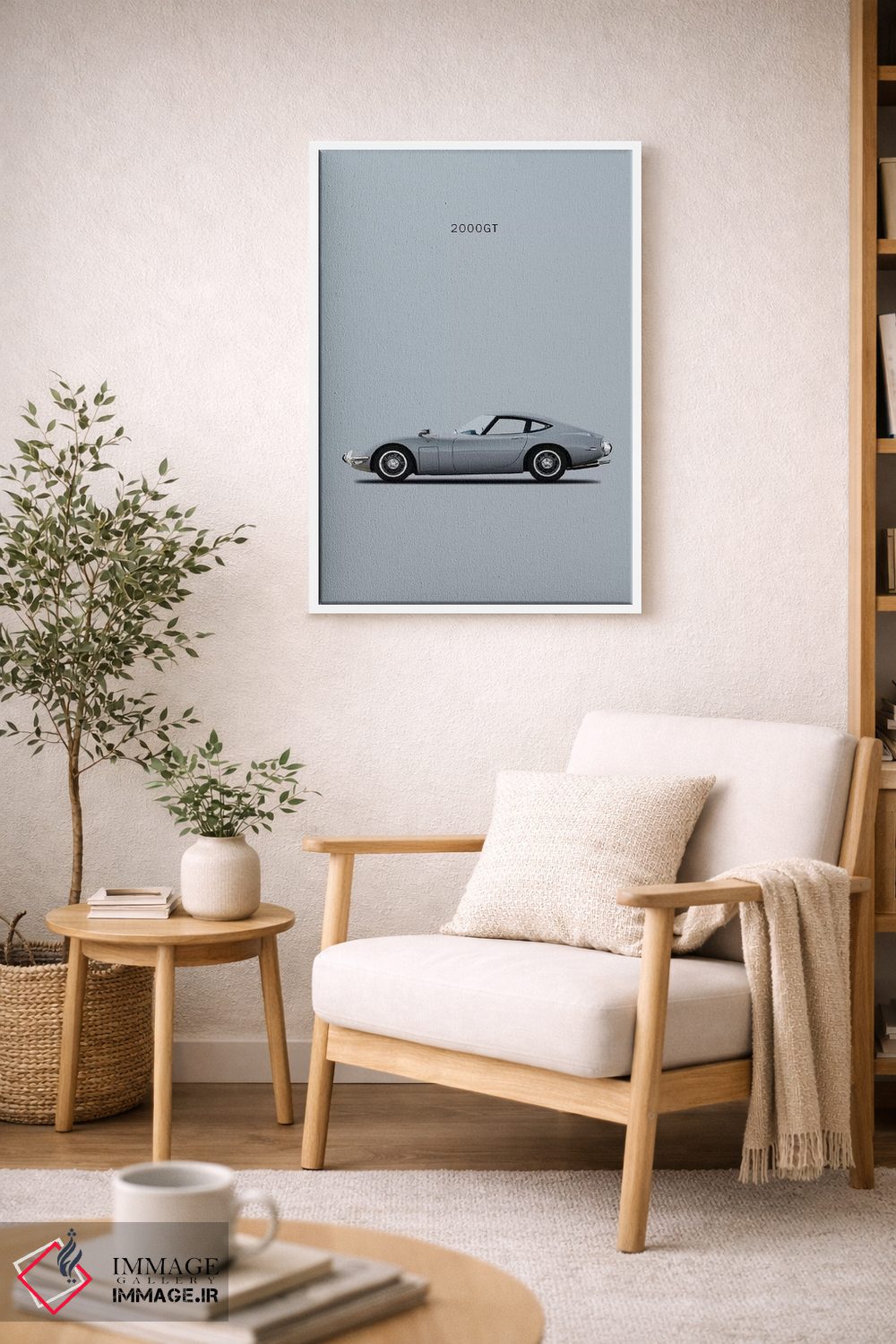 در «تویوتا ۲۰۰۰GT» اثرِ «مارک روگان»، فرم و رنگها کنترلشدهاند؛ نتیجه، یک اثر مرتب و خوشنشین برای دیوارهای مینیمال.