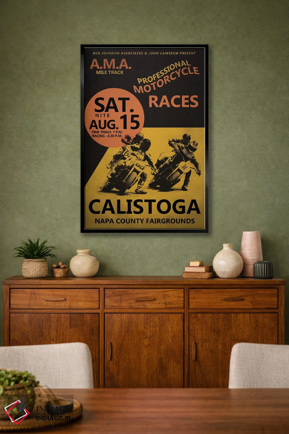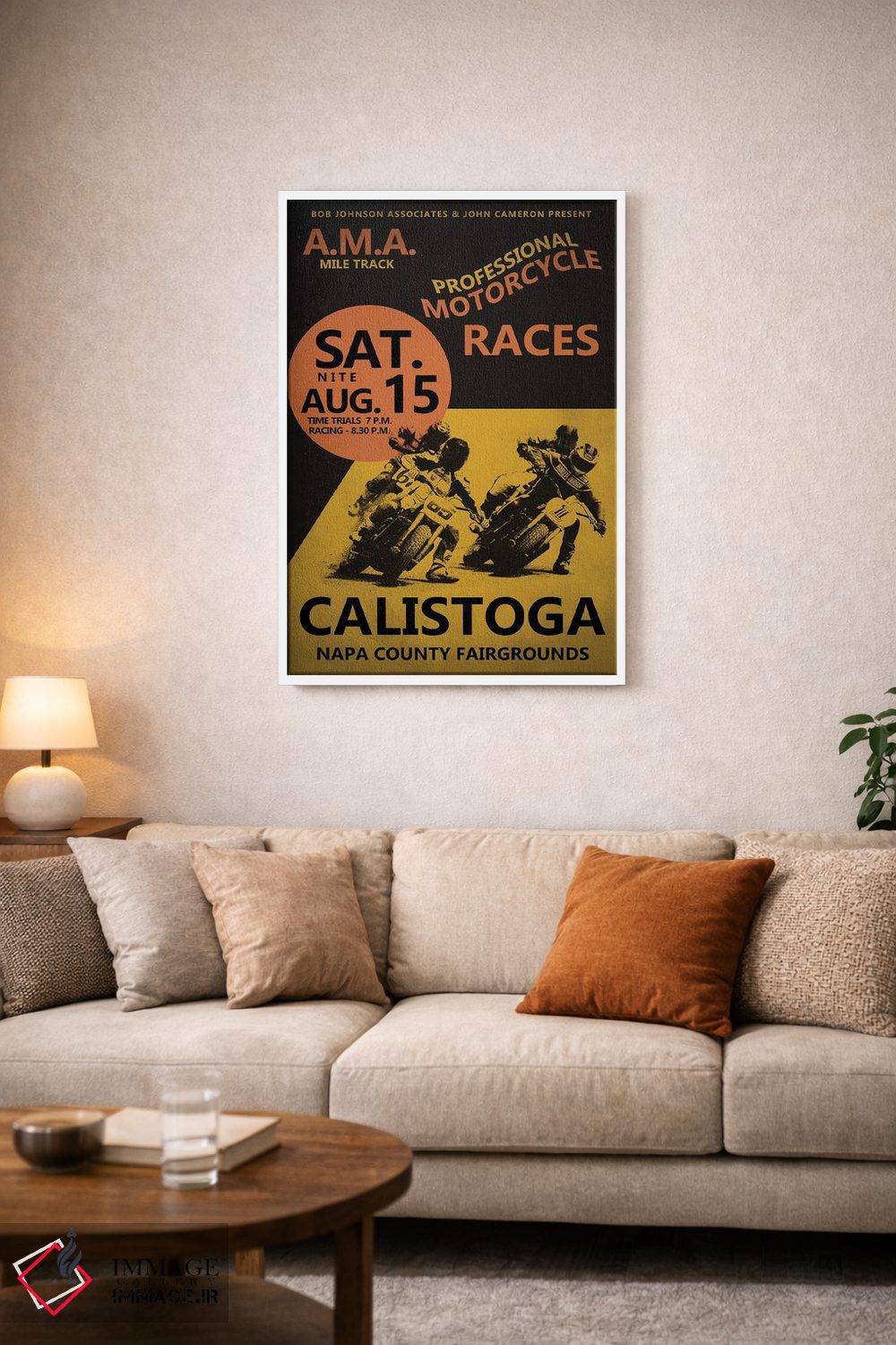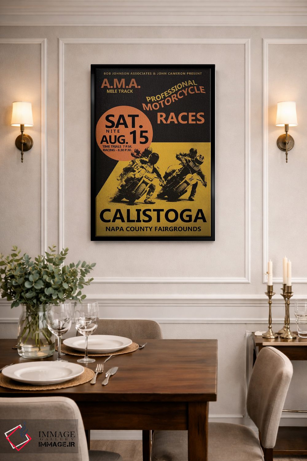 تابلو دکوراتیوِ «مسابقات موتورسواری کالیستوگا» با موضوعِ این اثر؛ مناسب برای نشیمن، اتاق خواب یا دیوار کنار میز ناهارخوری اثرِ «مارک روگان».