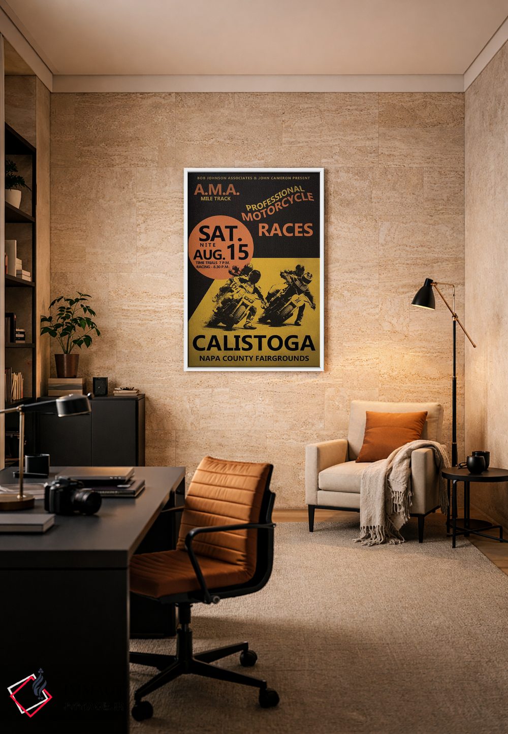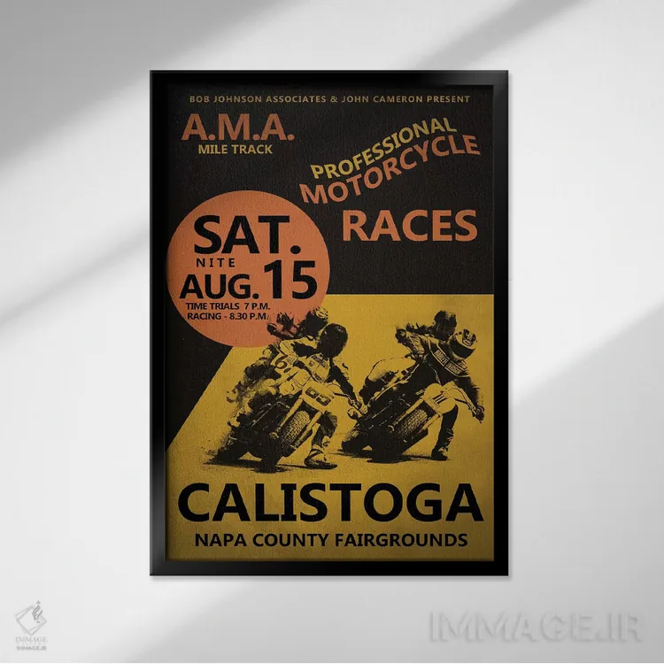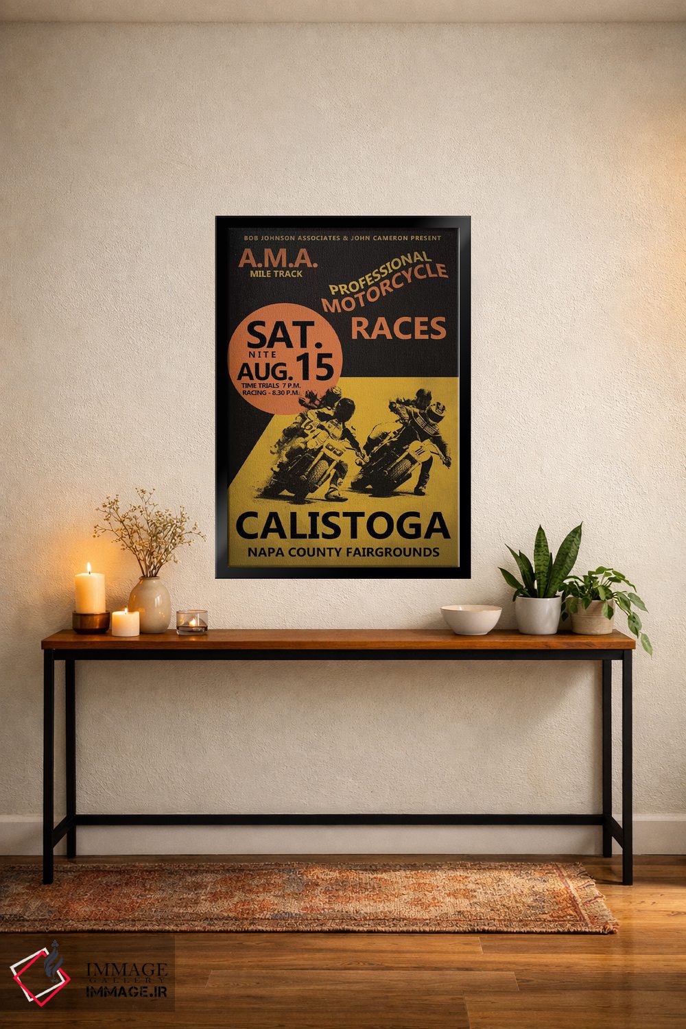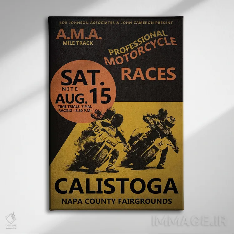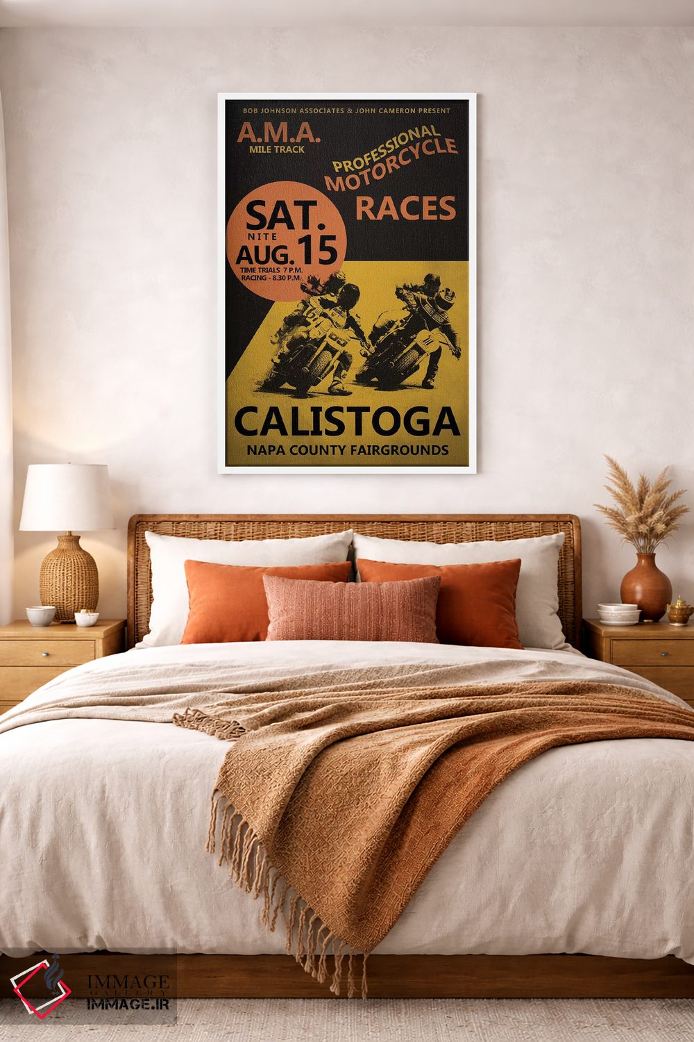 تابلو دکوراتیوِ «مسابقات موتورسواری کالیستوگا» با موضوعِ این اثر؛ مناسب برای نشیمن، اتاق خواب یا دیوار کنار میز ناهارخوری اثرِ «مارک روگان».