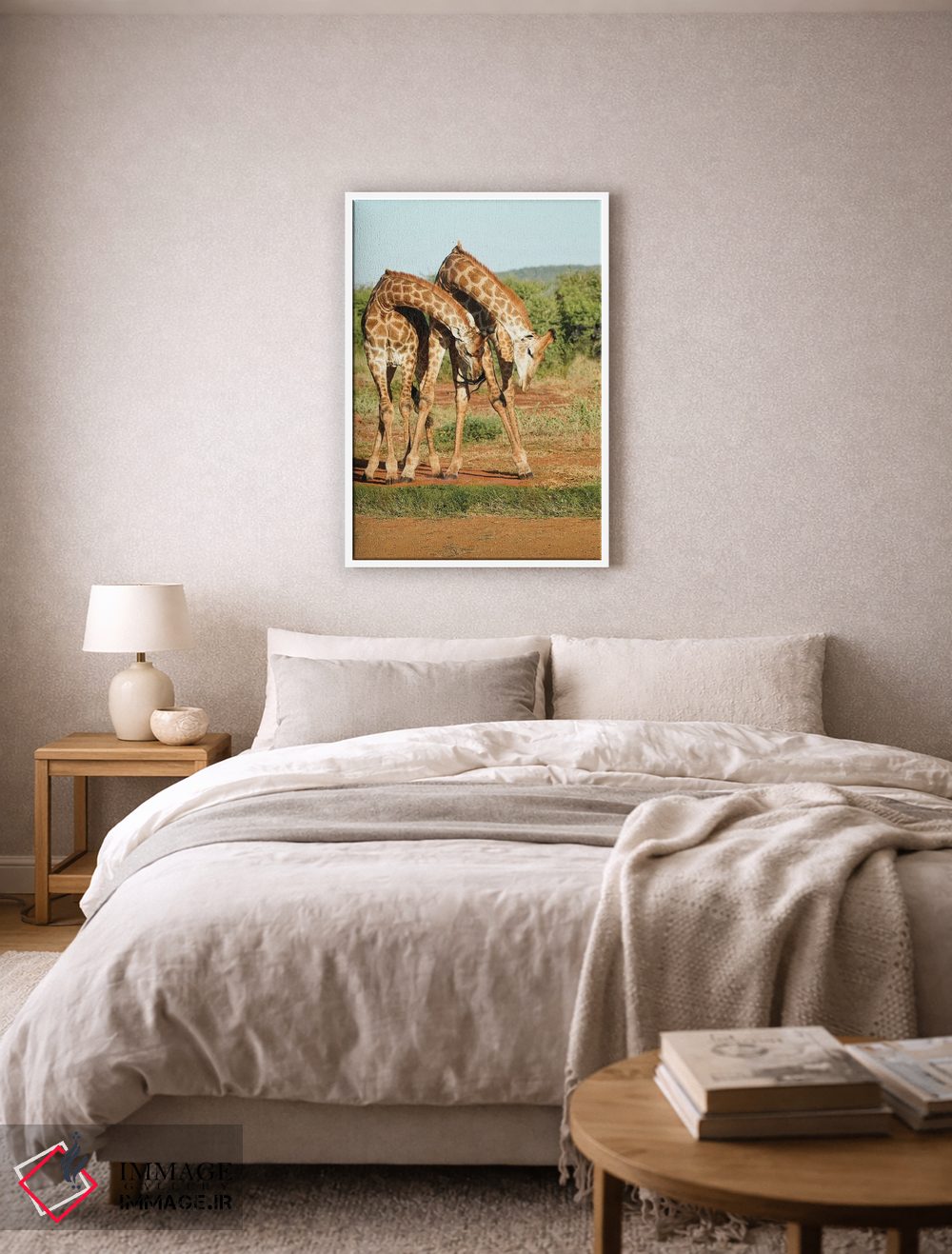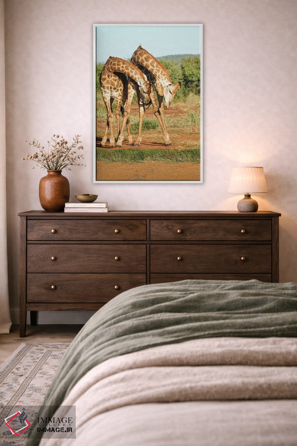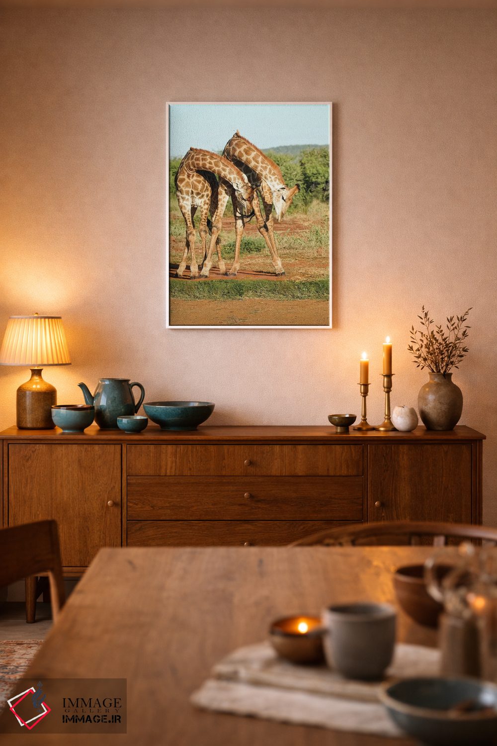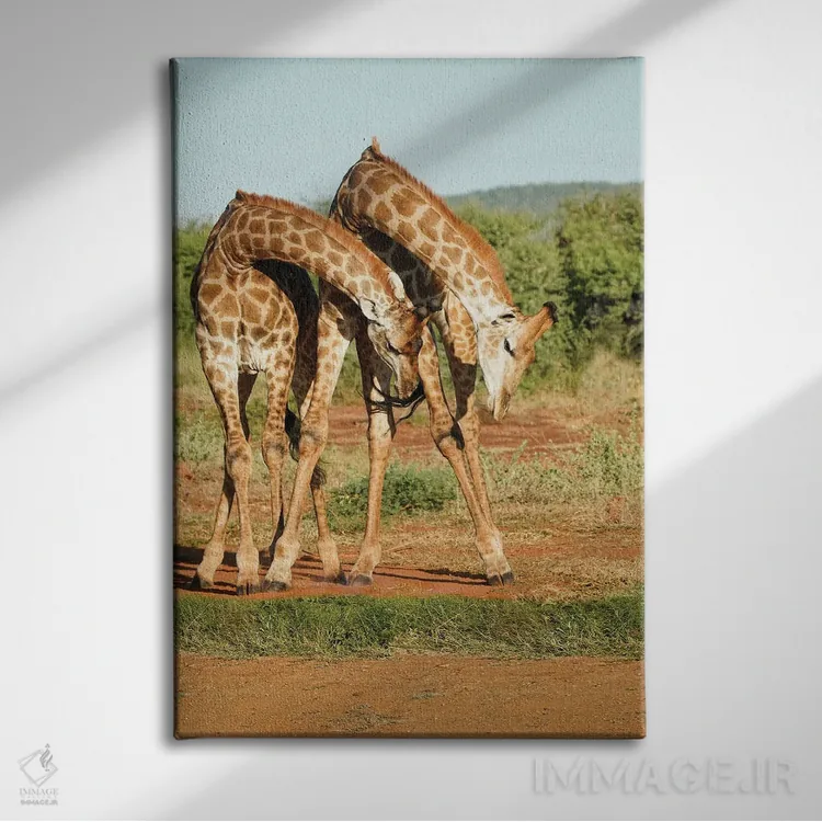 تابلو دکوراتیو زرافه های رقصان آفریقایی اثر رندا تامپسون - نمای پرسپکتیو محصول