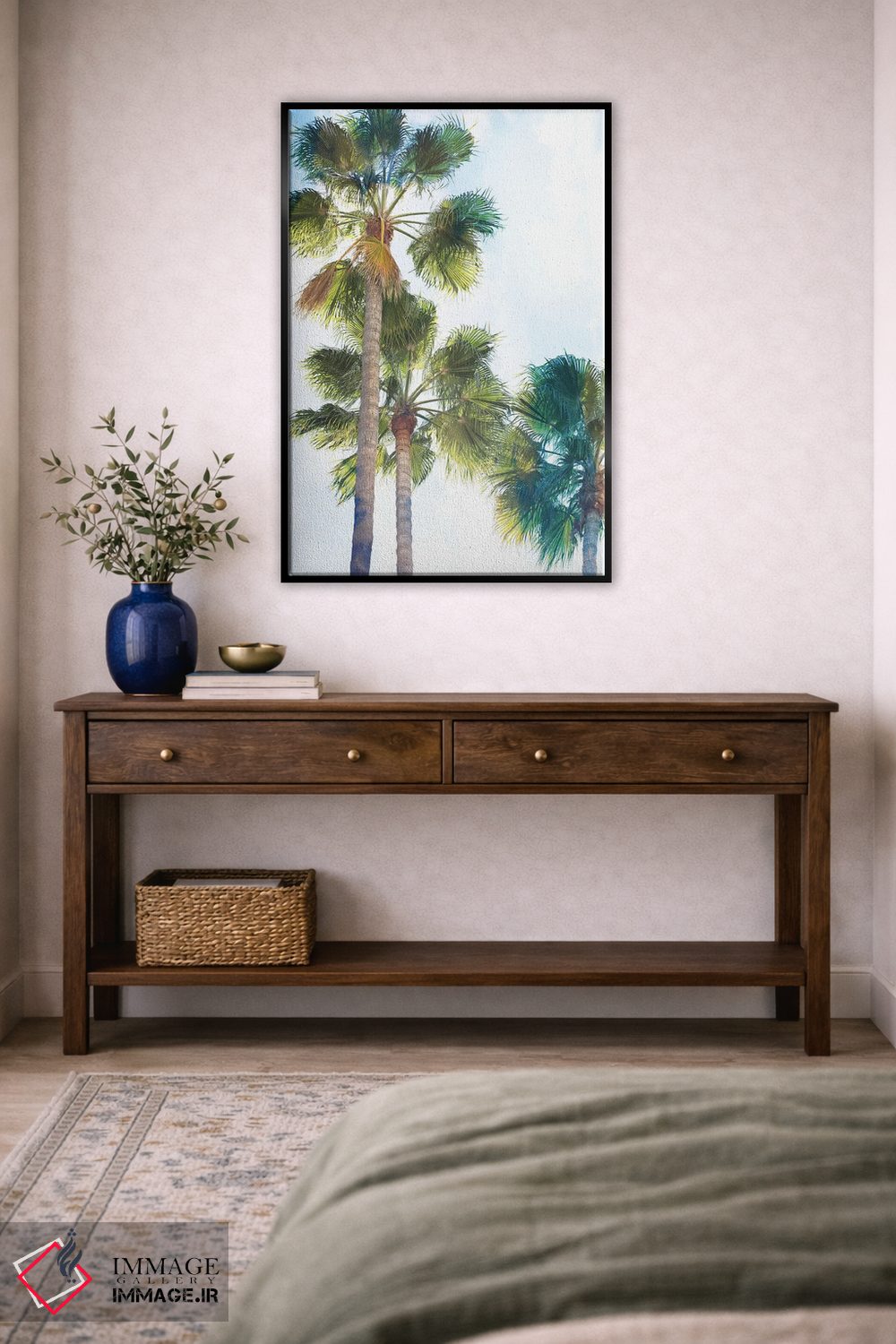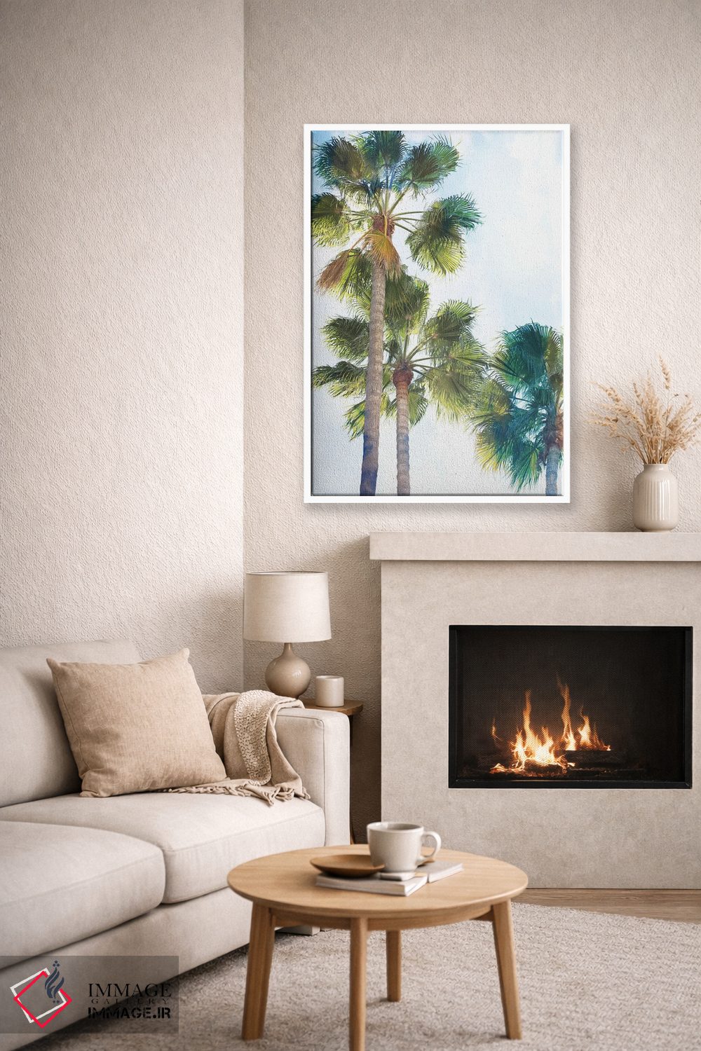 براساس پالت سرد اثر، قاب بلوط روشن (چوبی) پیشنهاد اول است و استخوانی ملایم مکمل. برای سفارشهای پروژهای با ابعاد و قابهای اختصاصی با ایماژ در تماس باشید.