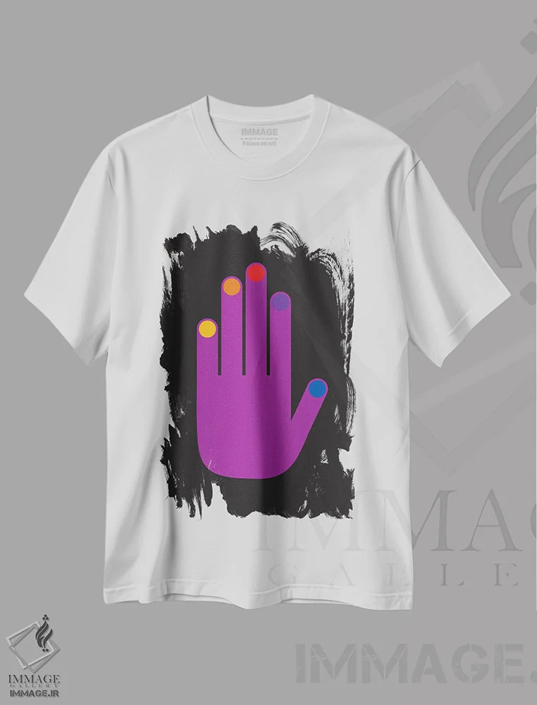 تیشرت طرح دار دست بنفش پاپ اثر دیزاینز سرکا