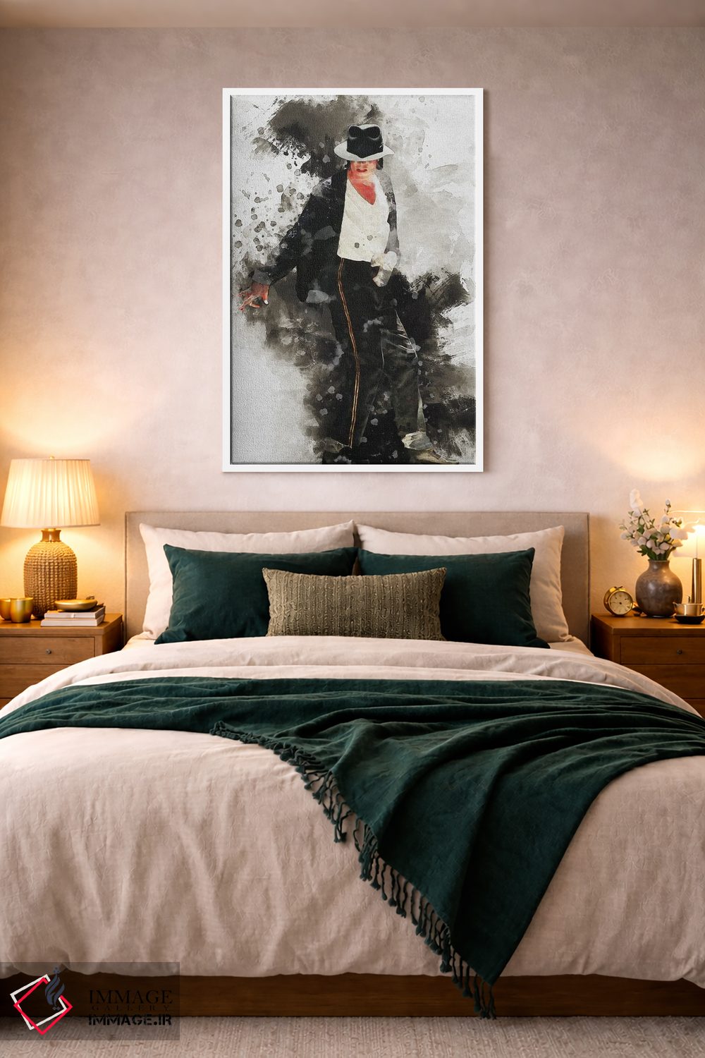 براساس پالت گرم اثر، قاب بلوط روشن (چوبی) پیشنهاد اول است و استخوانی ملایم مکمل. برای سفارشهای پروژهای با ابعاد و قابهای اختصاصی با ایماژ در تماس باشید.
