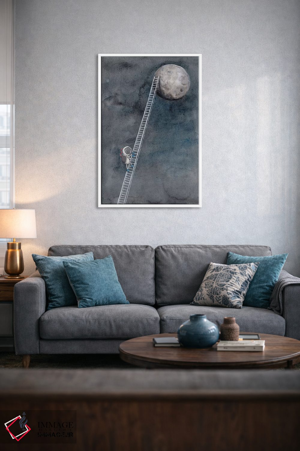 براساس پالت سرد اثر، قاب سفید مات (فریم باریک) پیشنهاد اول است و نقرهای برسخورده (متالیک) مکمل. برای سفارشهای پروژهای با ابعاد و قابهای اختصاصی با ایماژ در تماس باشید.