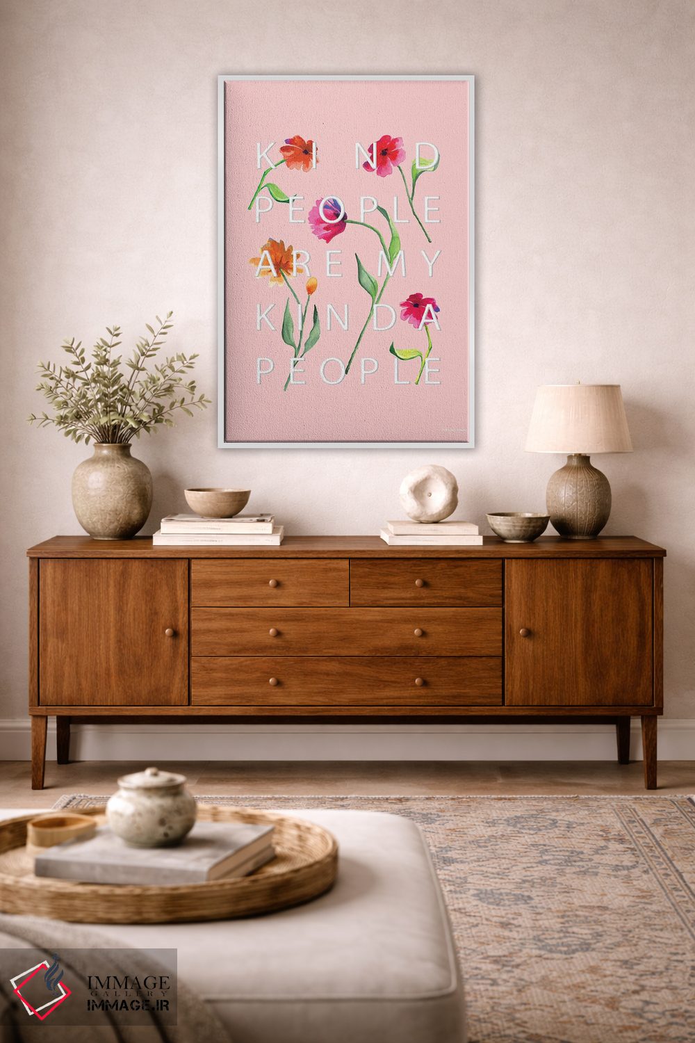 بوم گالری ایماژ طوری طراحی شده که اثر روی دیوار «پرداختشده» و حرفهای دیده شود—نه پرزرقوبرقِ بیپایه؛ بلکه دقیق و خوشپرداخت. با بافت ظریف کنواس، حس اثر هنری را در نگاه نزدیک نگه میدارد و نتیجه را یکدستتر میکند. با قابپذیری، قاب مناسب مرز بصری تمیزتری به اثر میدهد و همین «پرداخت» تفاوت را میسازد. حاصل کار، یک تابلو خوشنشین است که هم از دور اثرگذار است و هم از نزدیک خوشخوان؛ اگر فضا مینیمال است، همین پرداخت تمیز کافی است.