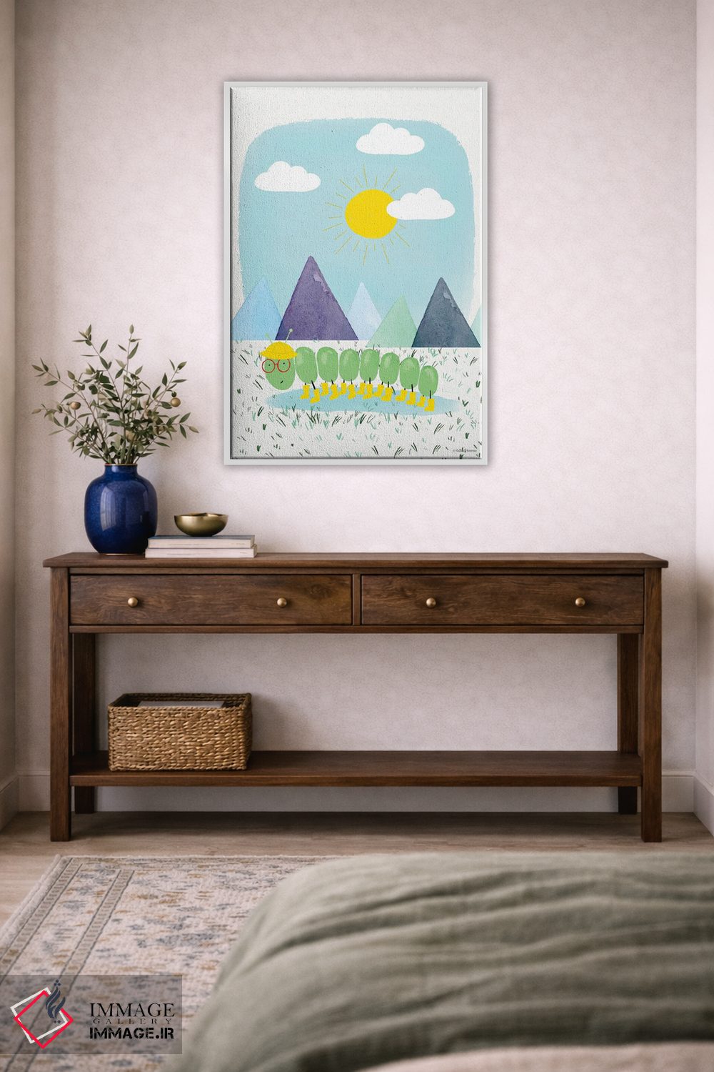 «ماجراجویی کرم ابریشم III» اثرِ «ریچل نیمان» میتواند فضا را صمیمیتر و دعوتکنندهتر نشان بدهد؛ برای اتاق بازی یا گوشهٔ مطالعه پیشنهاد میشود. با قاب چوبی یا مشکی، حس مرتبتری پیدا میکند.