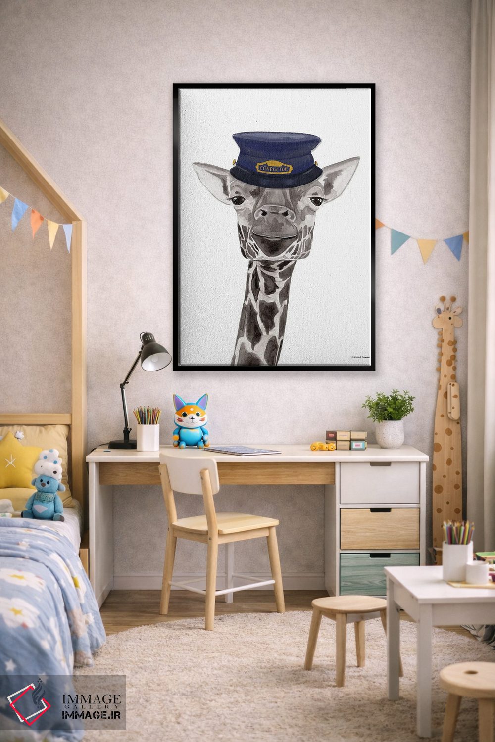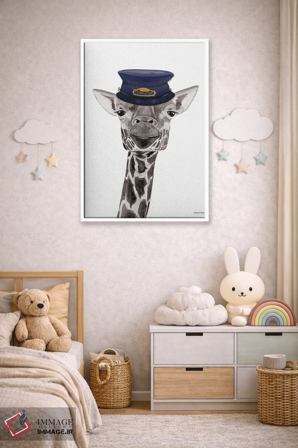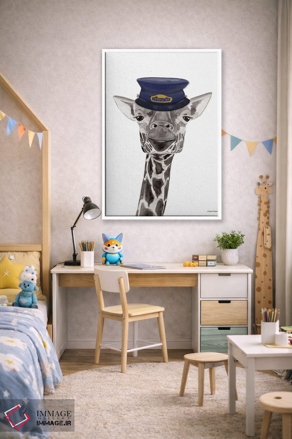 اگر میخواهید دیوار کمی سرزندگیِ محترمانه داشته باشد، «زرافه رانندهٔ قطار» اثرِ «ریچل نیمان» حس طبیعت را بیدغدغه وارد خانه میکند، برای اتاق بازی یا گوشهٔ مطالعه گزینهٔ مناسبیست. هر بار نگاهش میکنید، یک جزئیات تازه به چشم میآید.