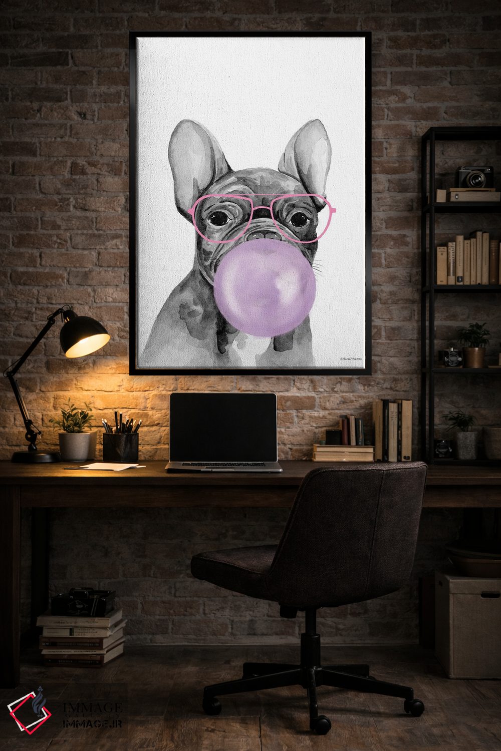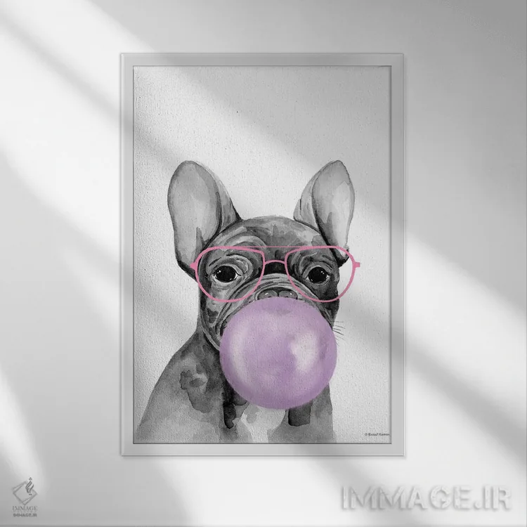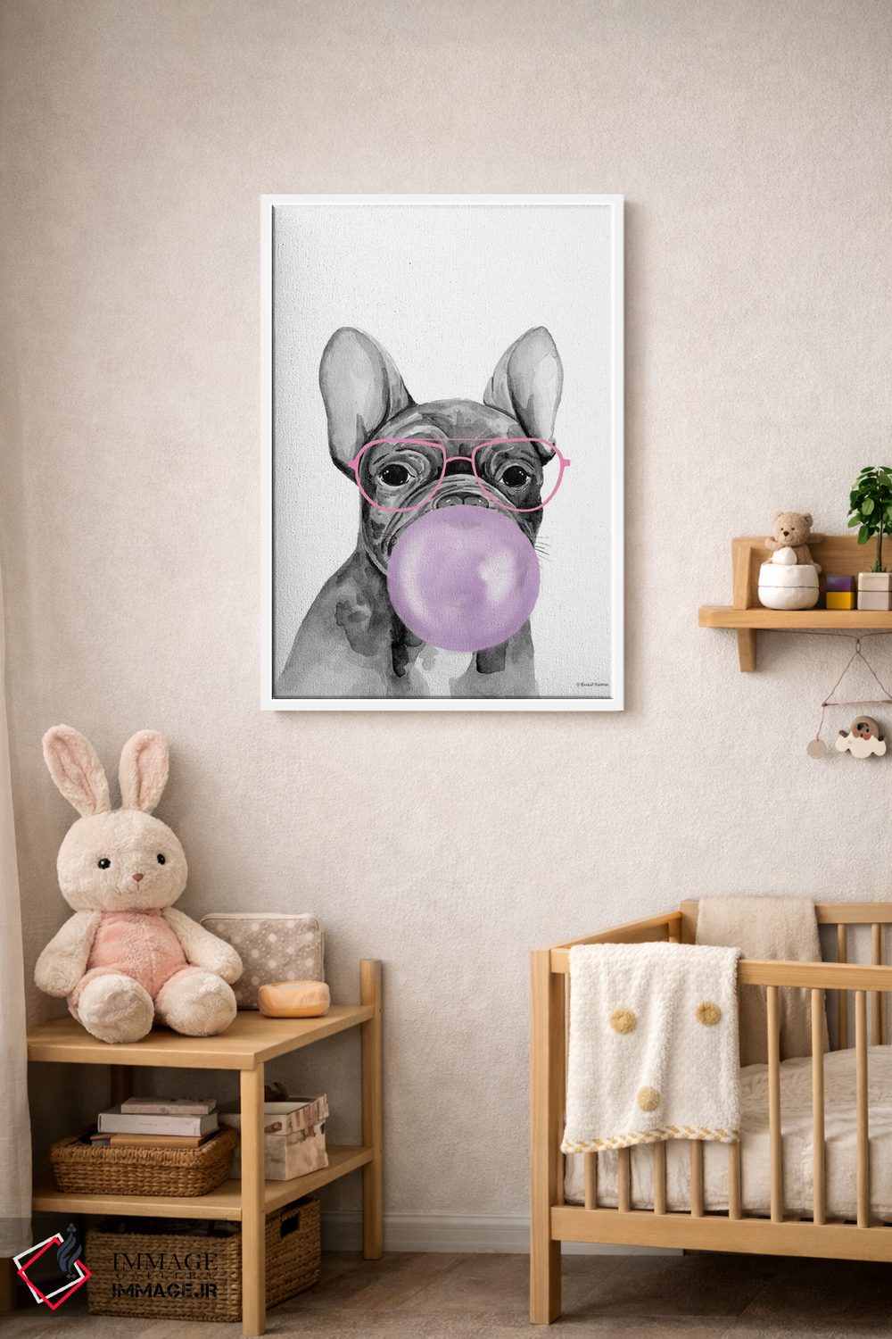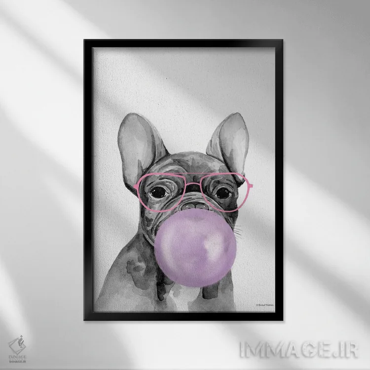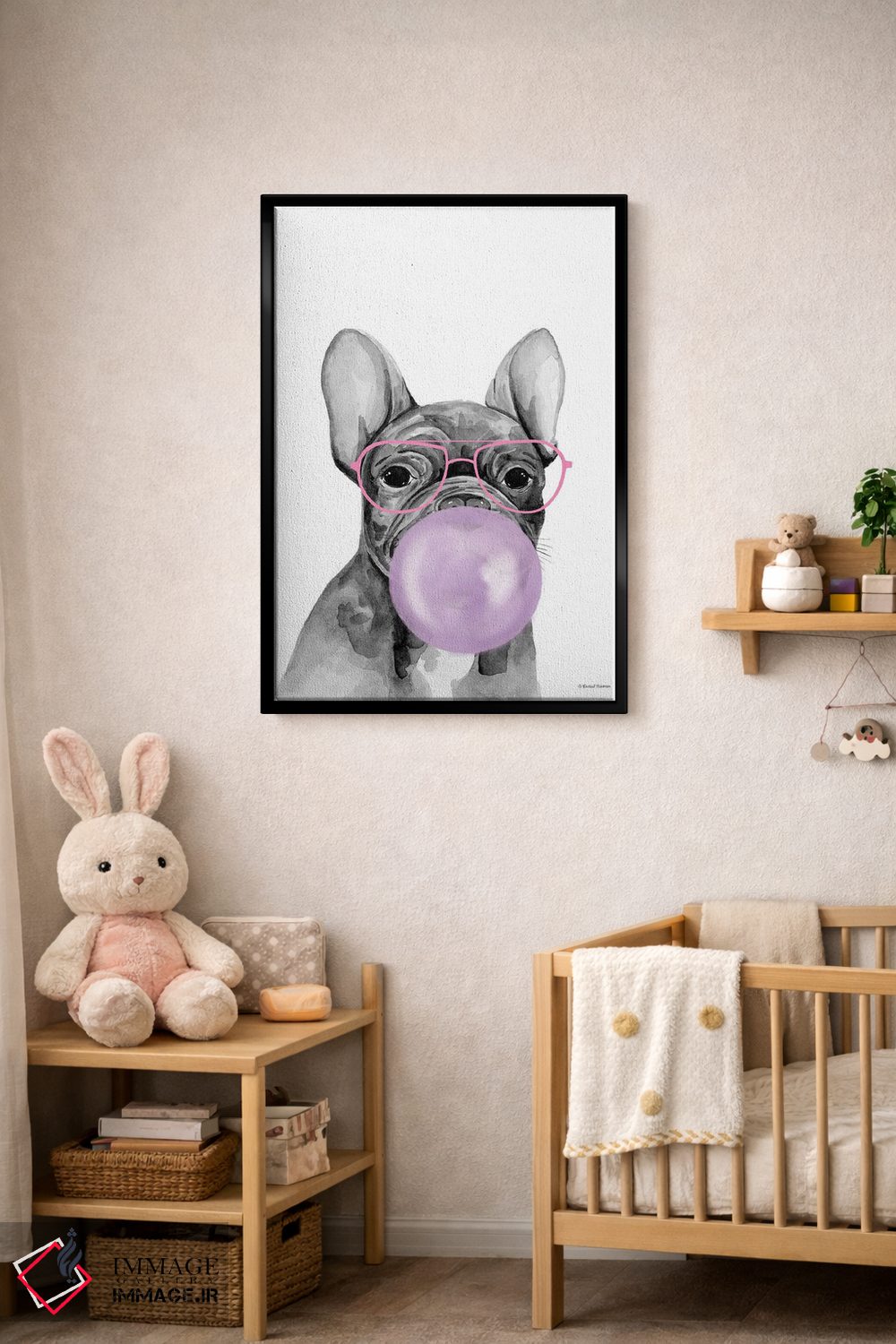 تابلو دکوراتیو توله سگ آدامس بادکنکی اثر ریچل نیمان