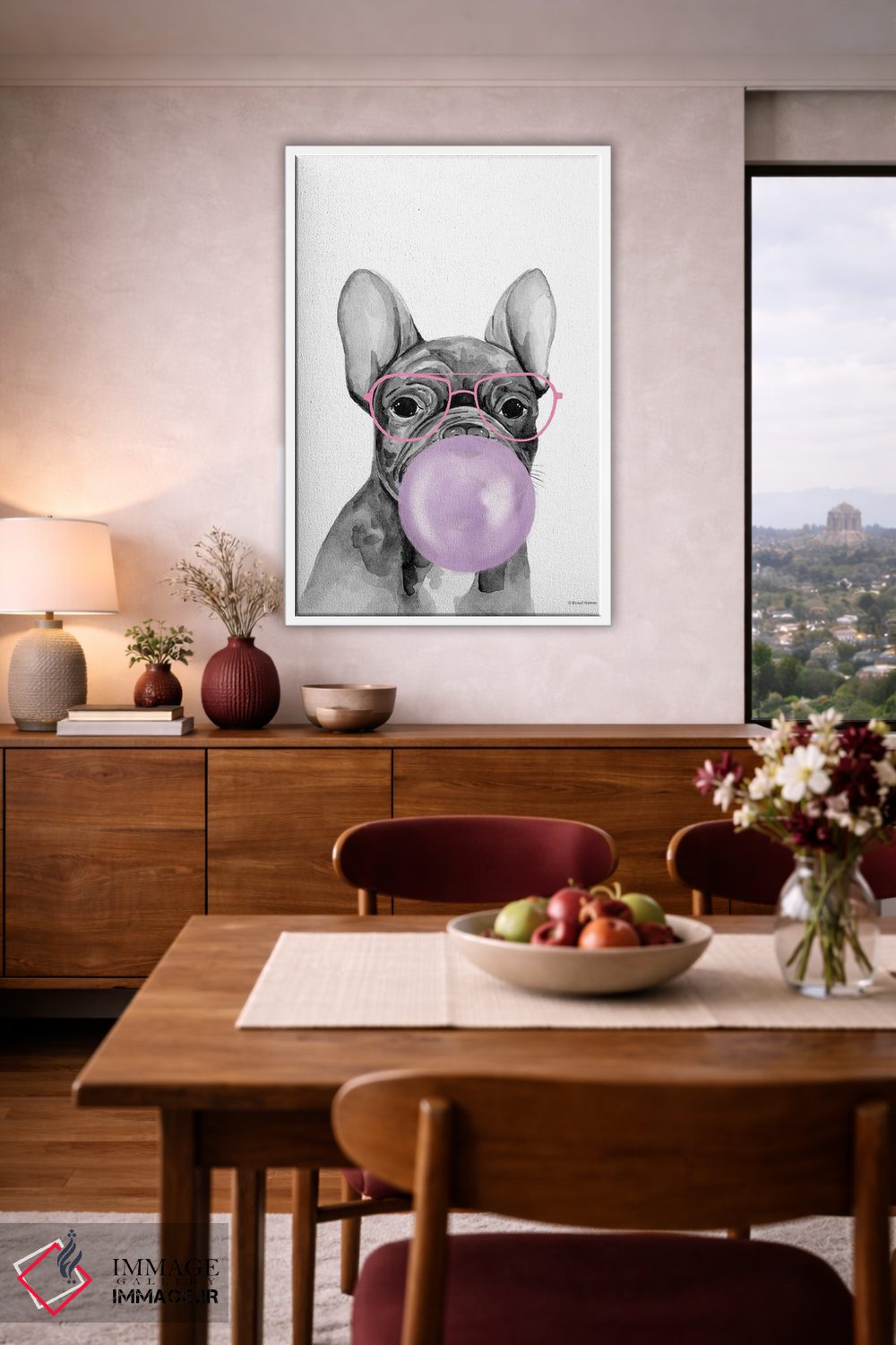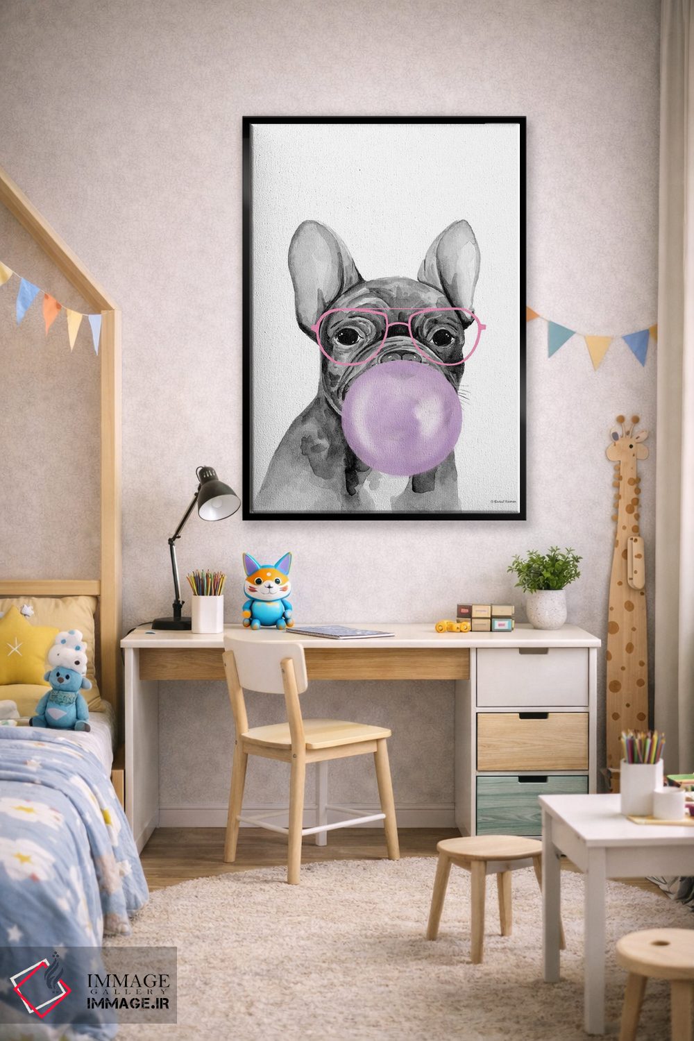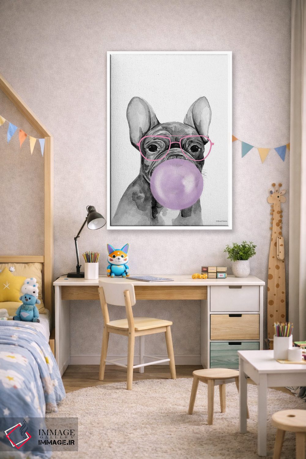 تابلو دکوراتیو توله سگ آدامس بادکنکی اثر ریچل نیمان