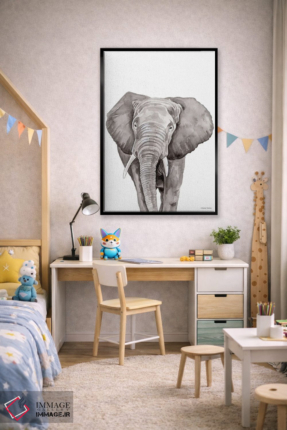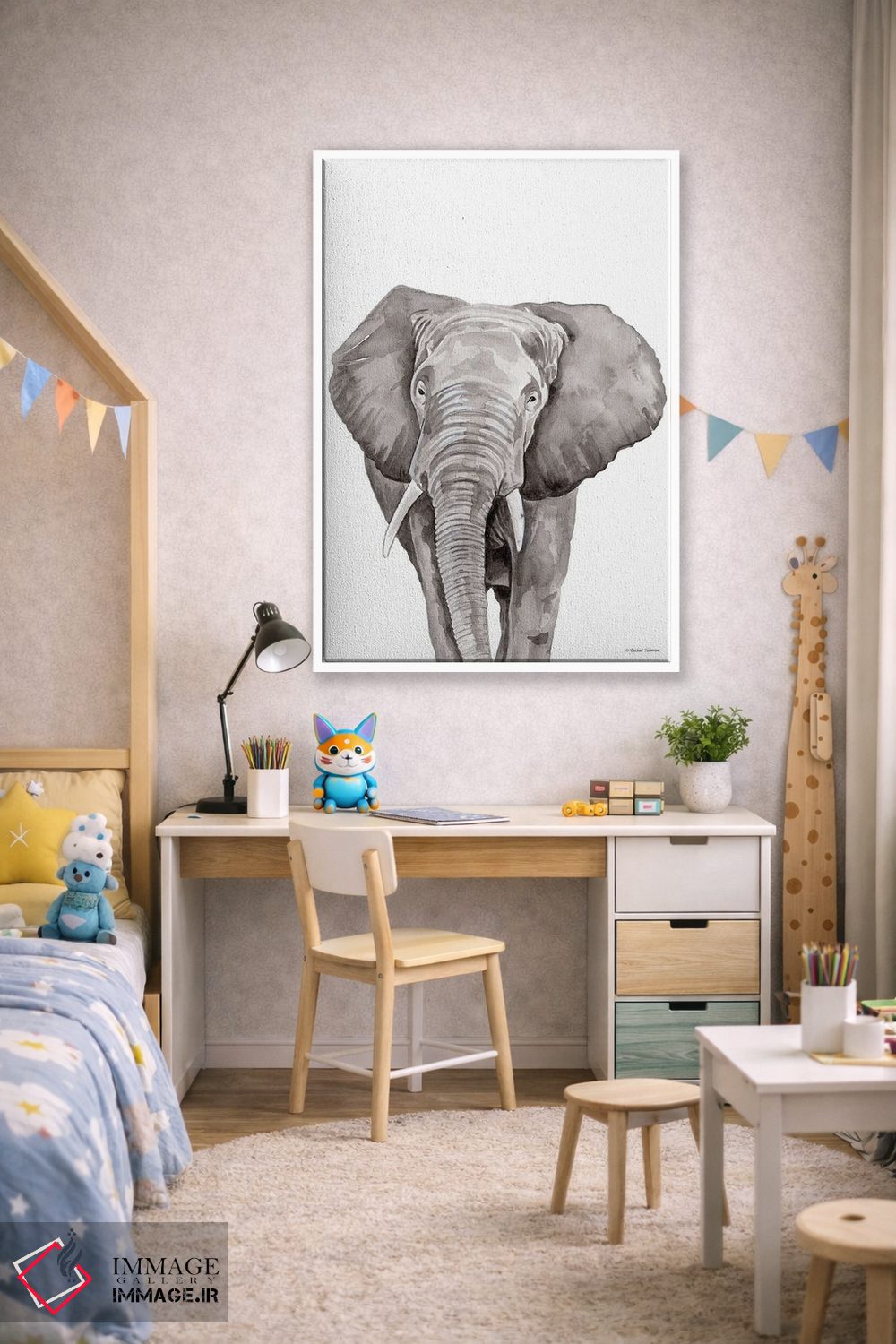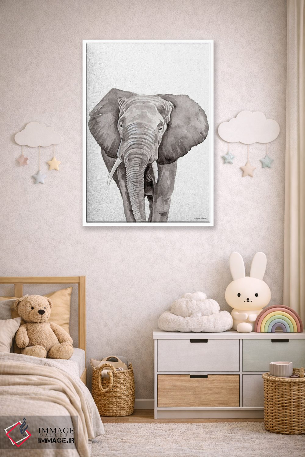 تابلو دکوراتیو فیل سافاری در حال قایم باشک اثر ریچل نیمان