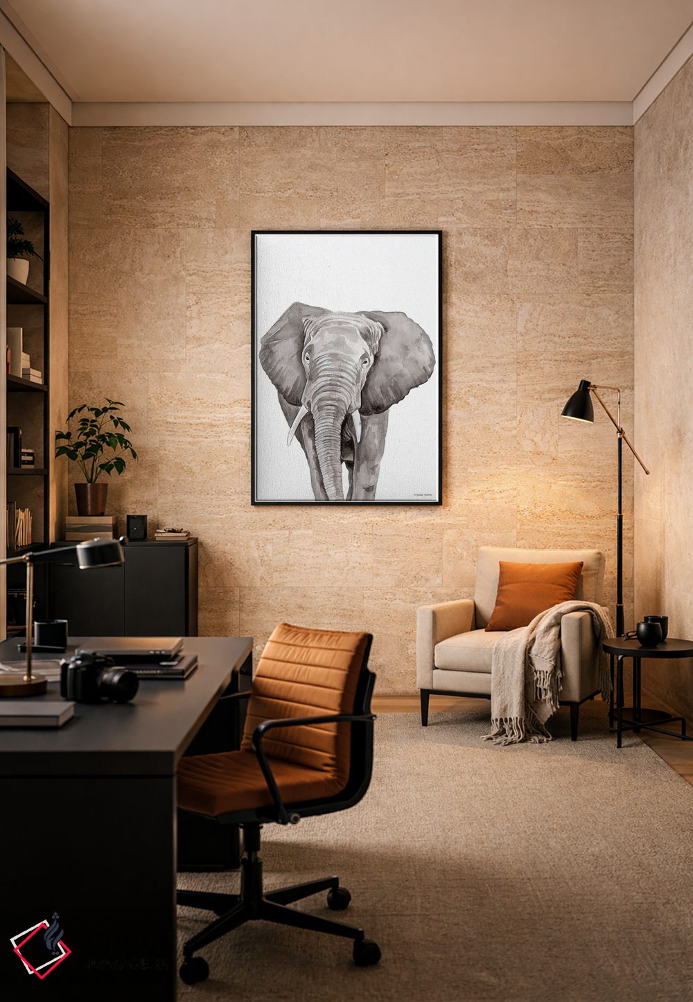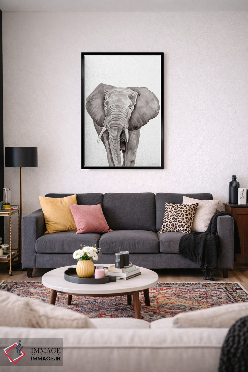 اگر به آثار حیوانات علاقه دارید، «فیل سافاری در حال قایمباشک» اثرِ «ریچل نیمان» در کنار رنگهای خنثی، تضاد دلچسبی میسازد، برای دکورهایی با رنگهای خنثی گزینهٔ مناسبیست. با قاب چوبی یا مشکی، حس مرتبتری پیدا میکند.