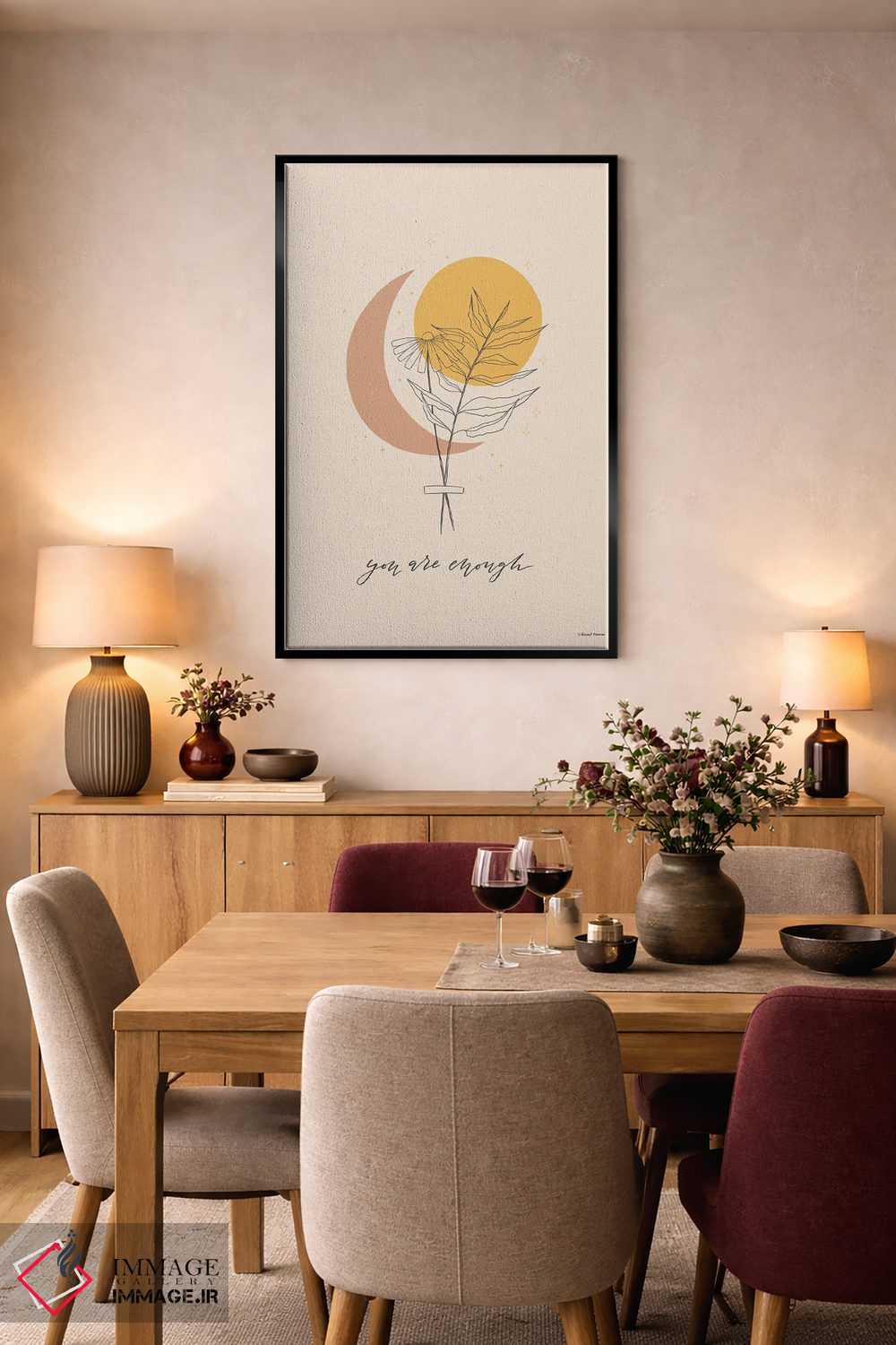 تابلو مینیمال تو کافی هستی اثر ریچل نیمان - نمای روبه‌رو روی دیوار