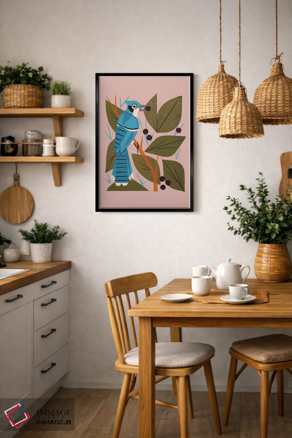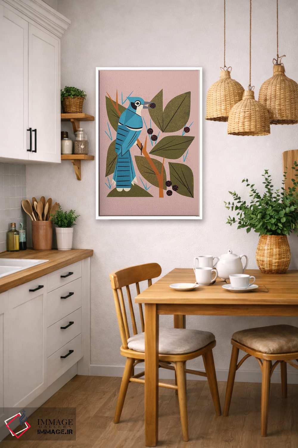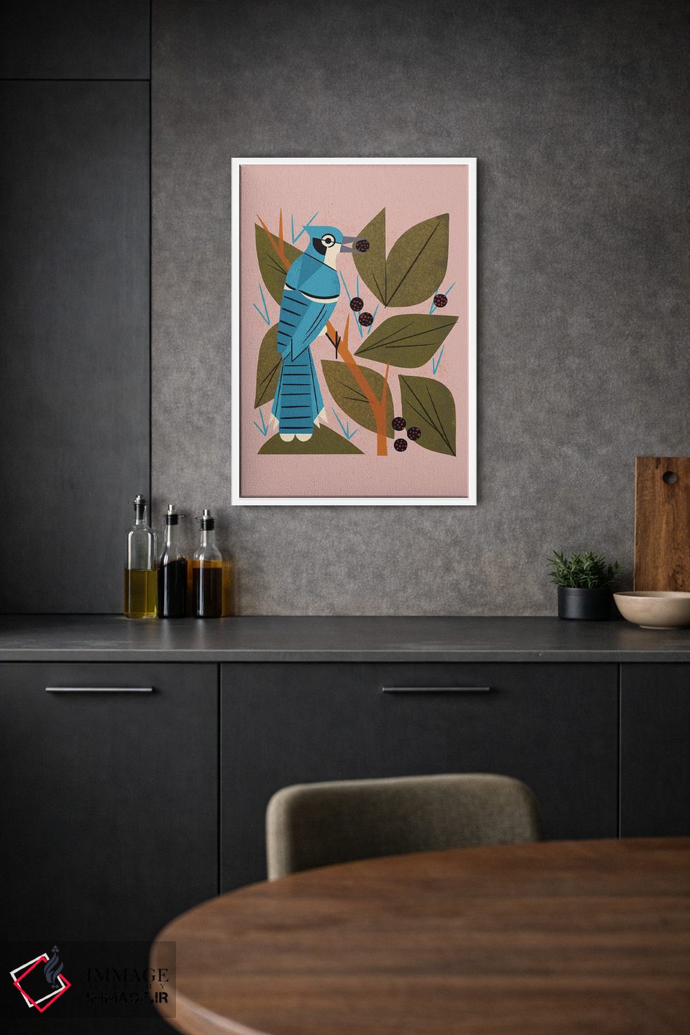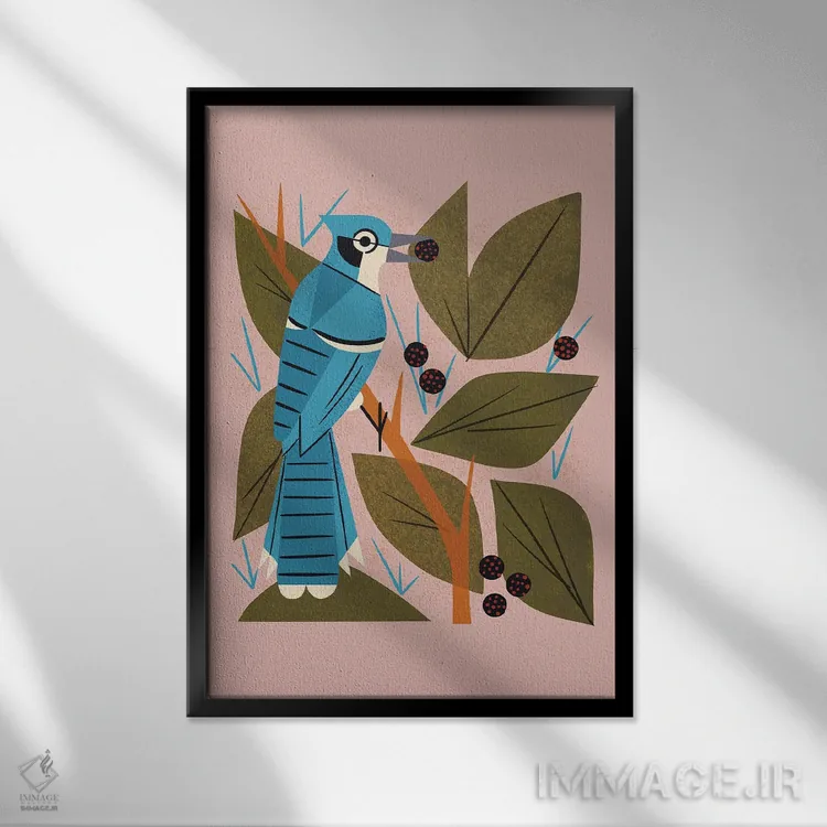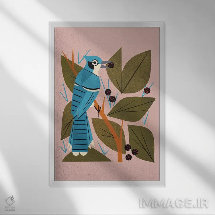 تابلو مدرن زاغ کبود با توت ها اثر رنیا ال. تول
