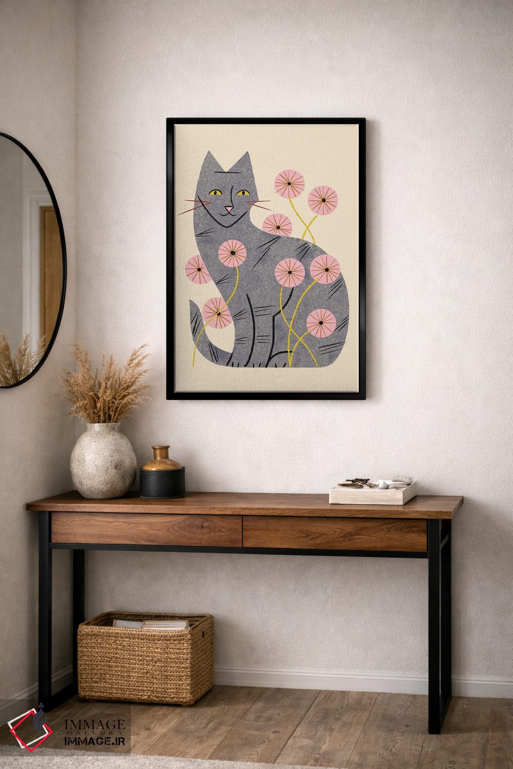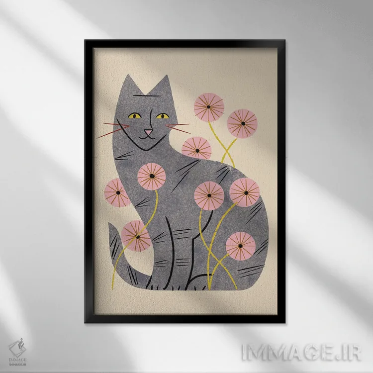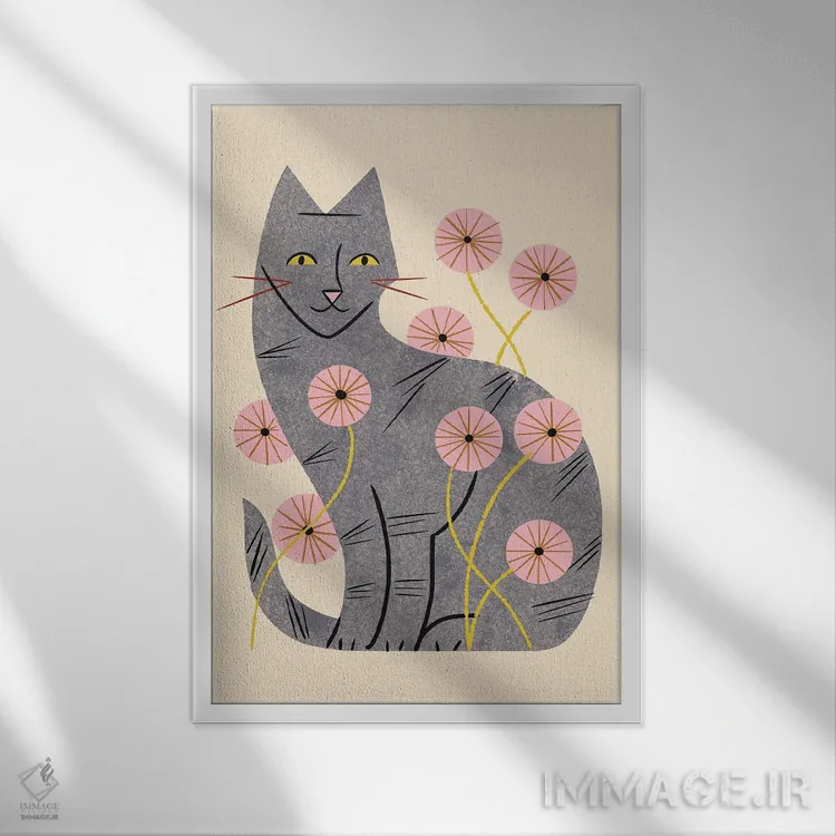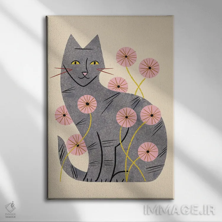 تابلو مدرن گربه راه راه و گل های وحشی اثر رنیا ال. تول