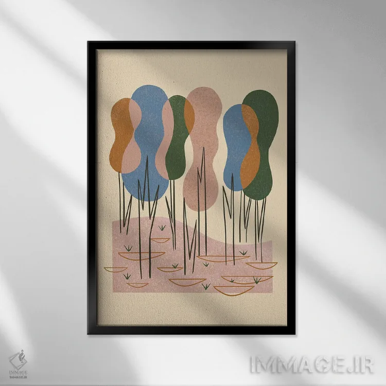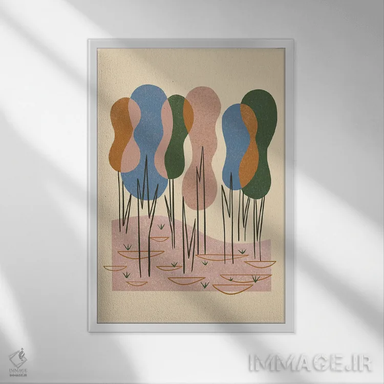 براساس پالت ترکیبی اثر، قاب بلوط روشن (چوبی) پیشنهاد اول است و استخوانی ملایم مکمل. برای سفارشهای پروژهای با ابعاد و قابهای اختصاصی با ایماژ در تماس باشید.