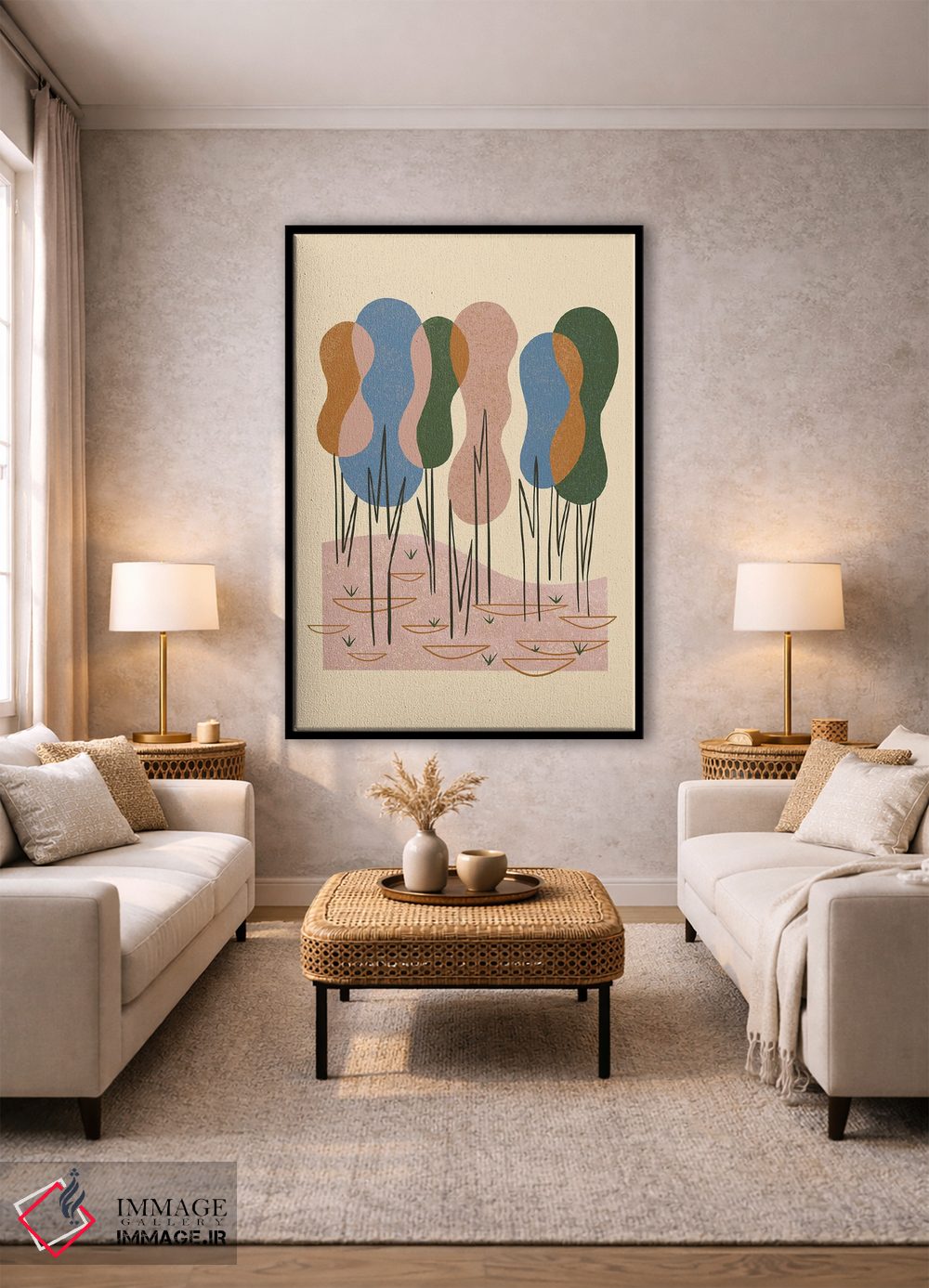 بوم گالری ایماژ نسخهی چیدماناتیوِ حرفهای از یک اثر هنری است؛ روی کنواس بدون اسید با بافت ظریف و یکنواخت با فرآیند چاپ حرفهای جیکلی (Giclée) و کنترل دقیق تونها با جوهرهای آرشیویِ حرفهای برای لایههای رنگی خواناتر، این ترکیب باعث میشود گذارهای رنگی نرمتر و بافتها خواناتر شوند. هر تابلو بهصورت سفارشی روی چهارچوب کشیده میشود و با یراق مناسب آمادهی نصب است.