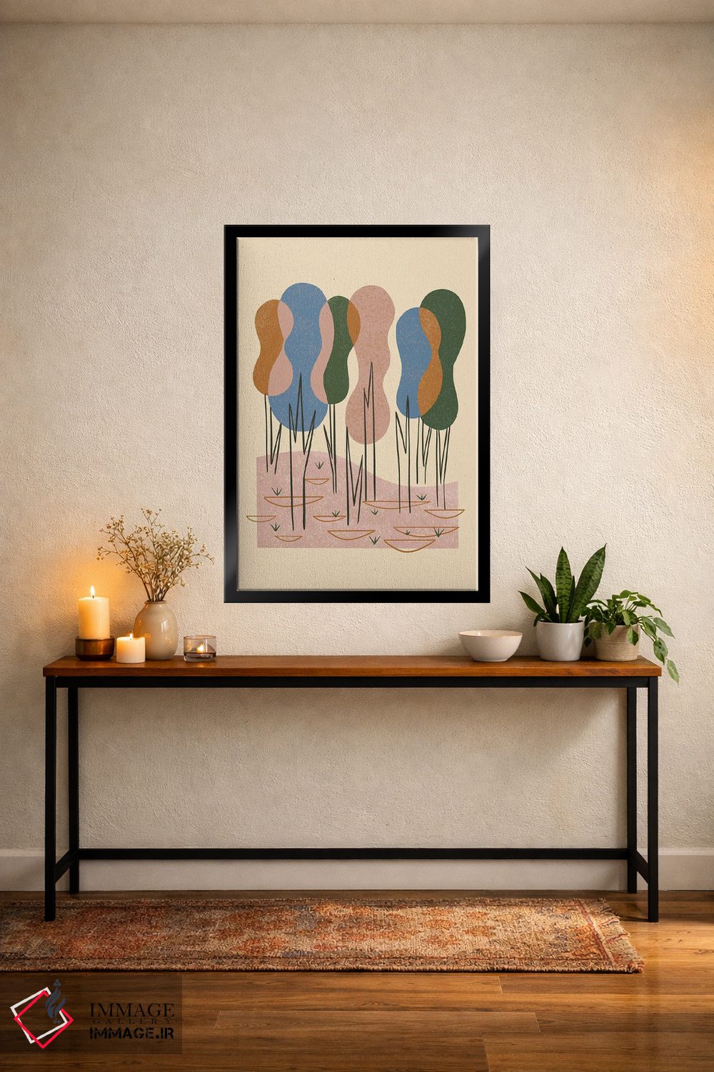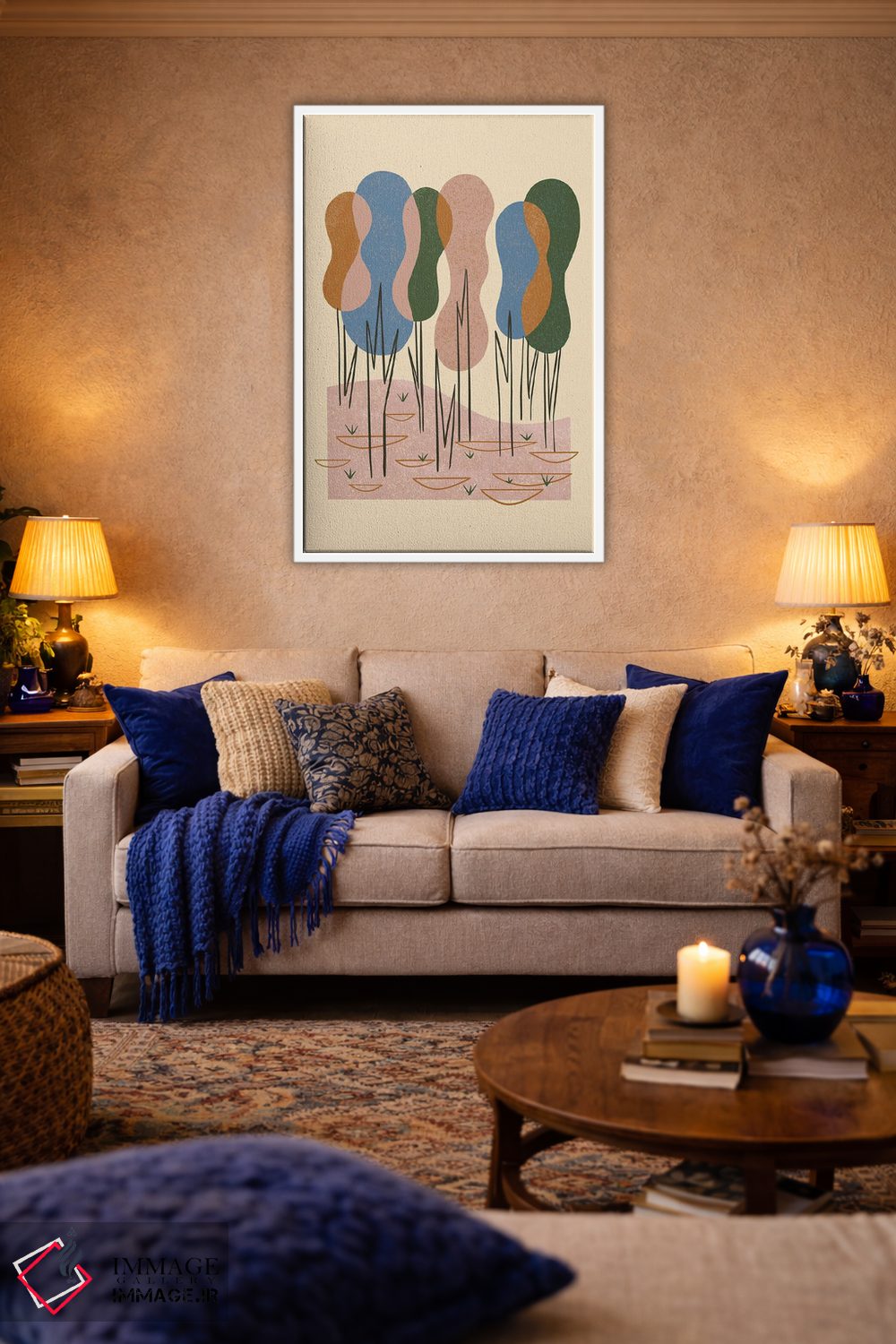 برای سفارشهای چندتایی یا پروژهای، تیم ایماژ کنار شماست تا هماهنگی فضا کاملتر شود. اگر دوست دارید که اثر در فضا «پر انرژی و رنگی» دیده شود، یک اکسنت رنگی کوچک کافی است و نتیجه را مرتبتر و تمیزتر میکند.