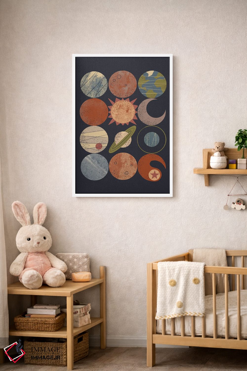 ساختار بوم گالری ایماژ طوری است که اثر روی دیوار «پرداختشده» و حرفهای دیده شود—نه پرزرقوبرقِ بیپایه؛ بلکه دقیق و خوشپرداخت. با بافت ظریف کنواس، حس اثر هنری را در نگاه نزدیک نگه میدارد بهخصوص وقتی نور موضعی ملایم داشته باشید. با ارائهی آماده نصب، اثر را مرتب و یکدست روی دیوار مینشاند بدون اغراق؛ فقط دقیقتر. حاصل کار، یک تابلو خوشنشین است که هم از دور اثرگذار است و هم از نزدیک خوشخوان.