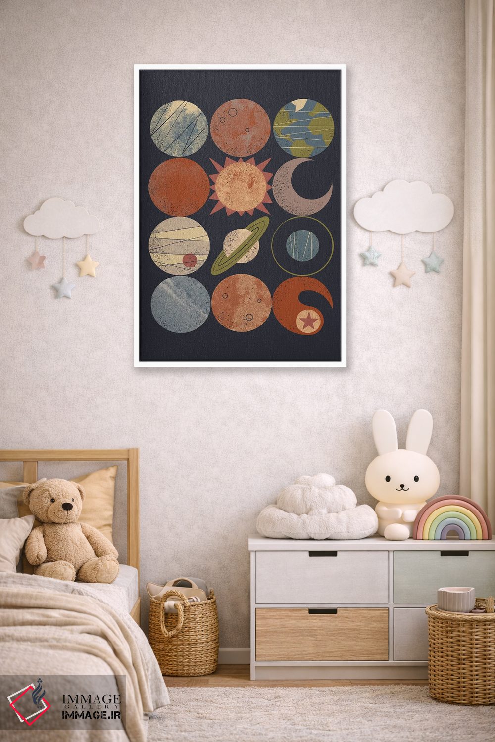 بوم گالری ایماژ نسخهی دکوراتیوِ سطحبالا از یک اثر هنری است؛ روی کنواس بدون اسید با بافت ظریف و یکنواخت با چاپ هنری به استاندارد جیکلی (Giclée) با رنگدانههای آرشیوی و سیستم رنگ دقیق؛ خروجی، یک «تابلو» است نه یک چاپ ساده. کلافکشی مرتب و یراق نصب استاندارد، تجربهی نصب را ساده میکند.