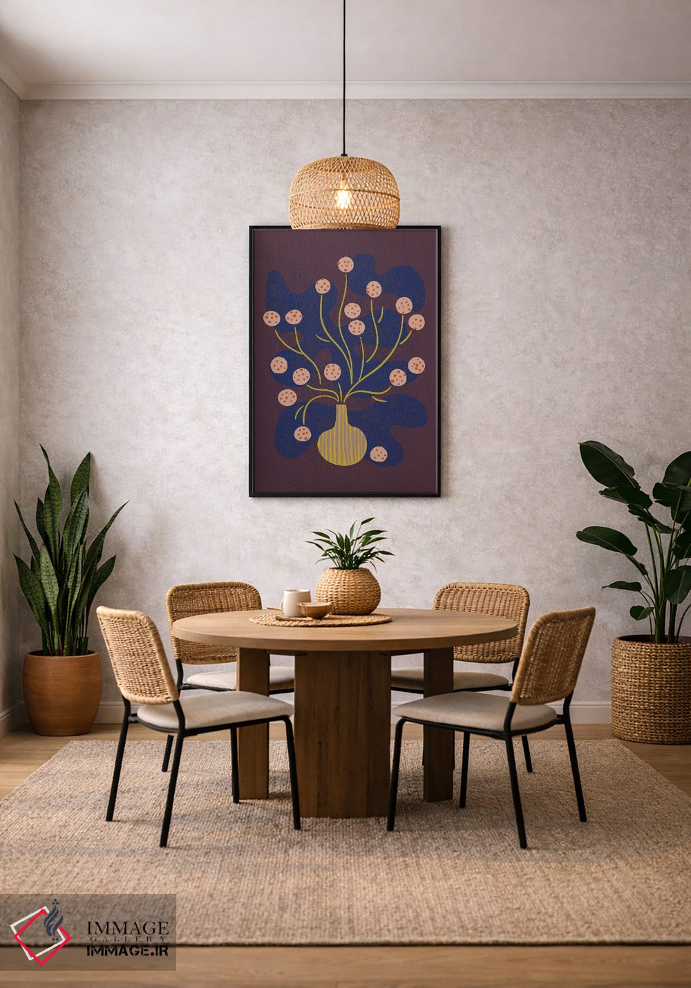 «طبیعت بیجان گل گرد (زرشکی)» اثرِ «رنیا ال. تول» میتواند مثل یک قطعهٔ دکورِ همیشهبهروز عمل کند؛ برای راهروهای مینیمال پیشنهاد میشود. فضا را شلوغ نمیکند؛ فقط لطیفترش میکند.