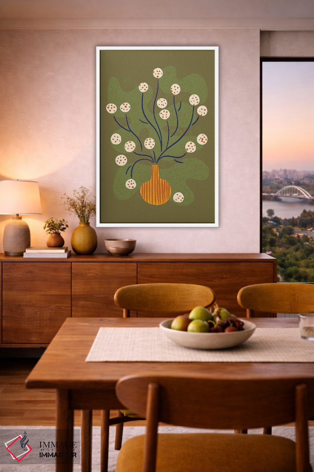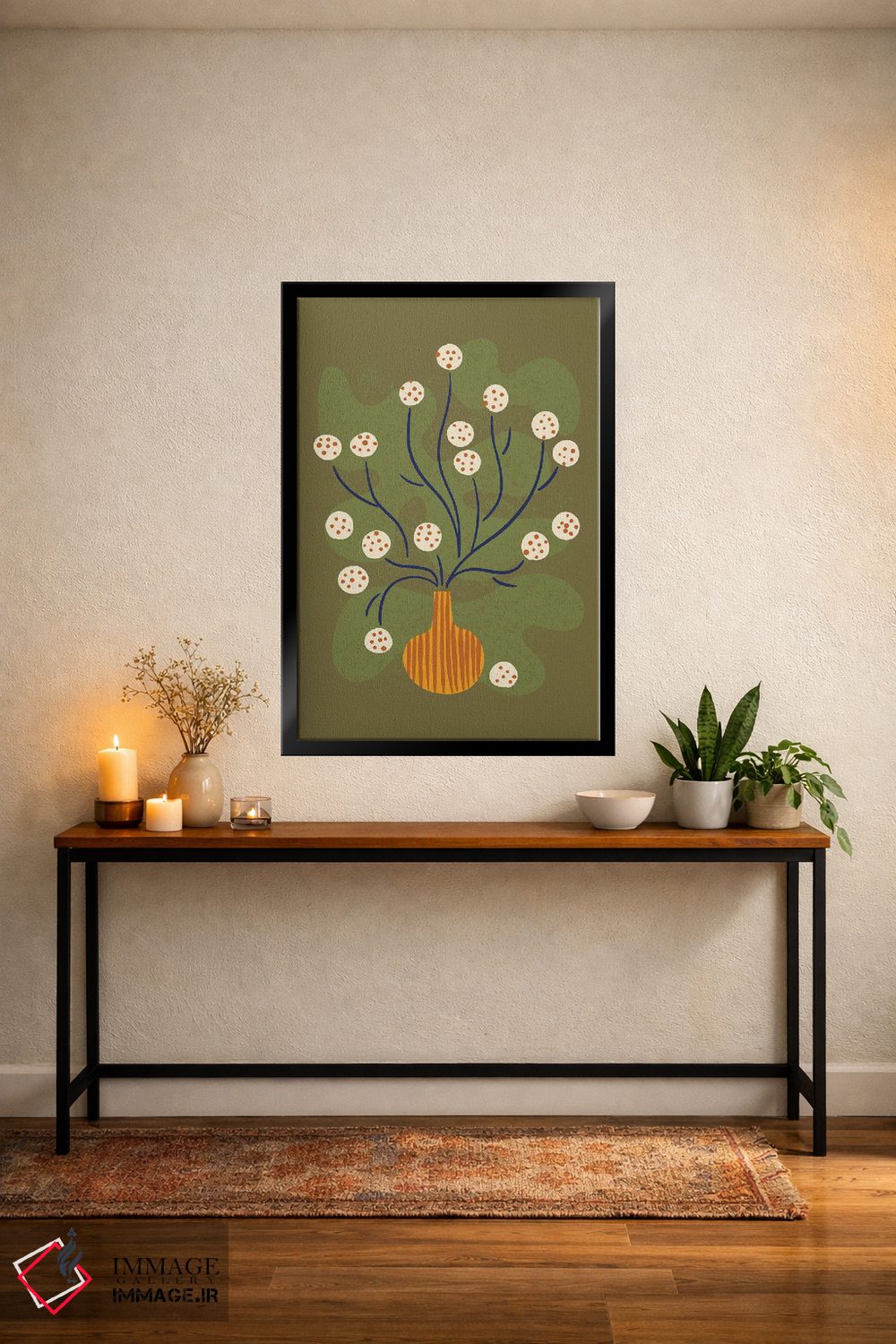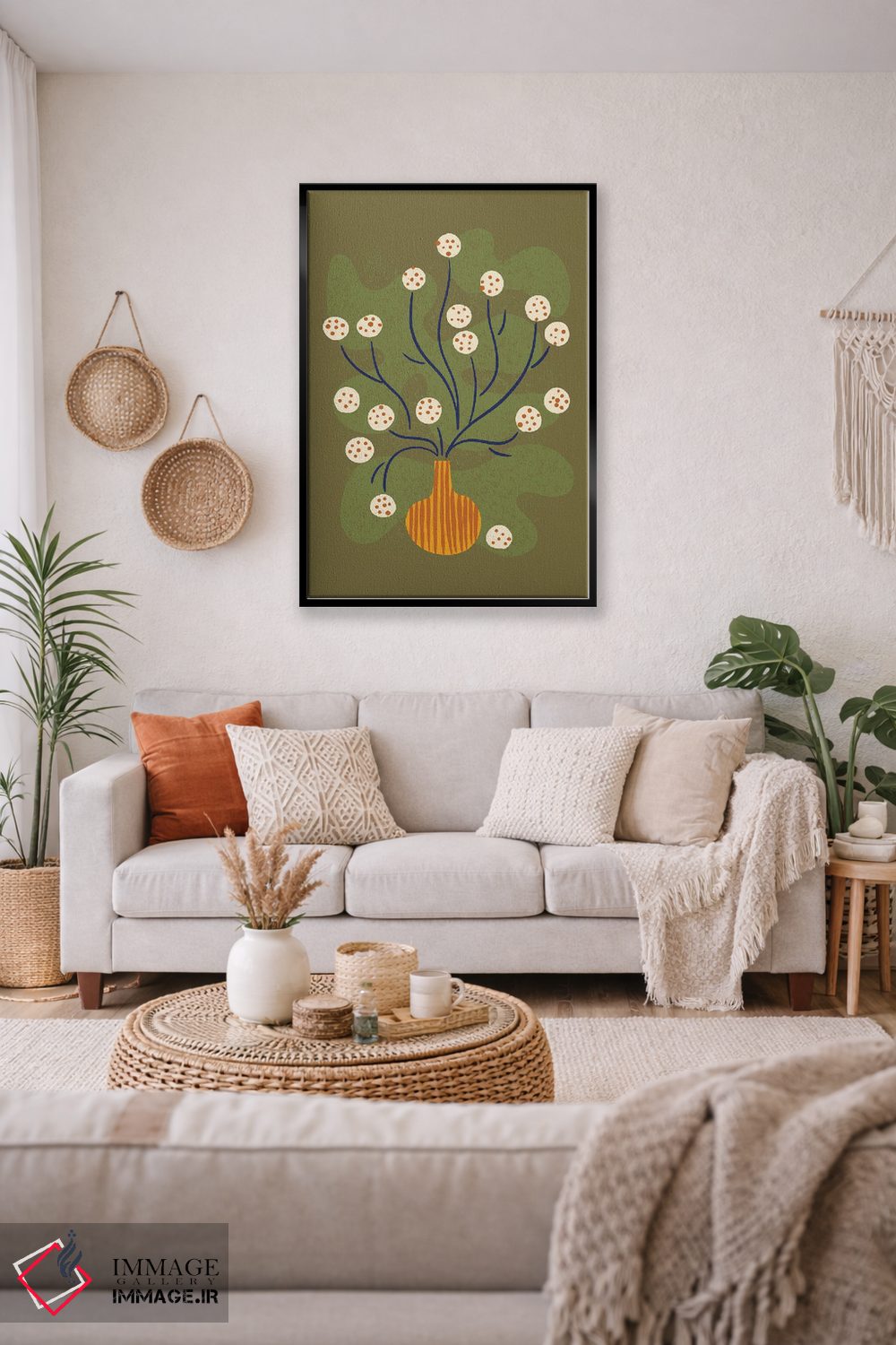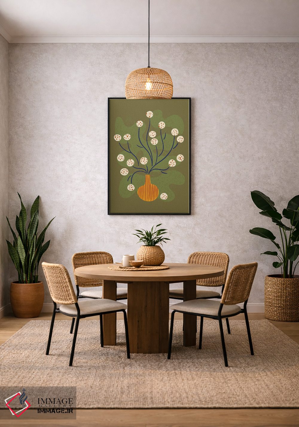 «طبیعت بیجان گل گرد (سبز زیتونی)» اثرِ «رنیا ال. تول» مثل یک نفس تازه است؛ حس طراوت را بدون شلوغی وارد اتاق میکند؛ برای فضاهای بوهمی انتخابی خوشسلیقه است. در کنار گیاهان آپارتمانی، هماهنگتر هم میشود.