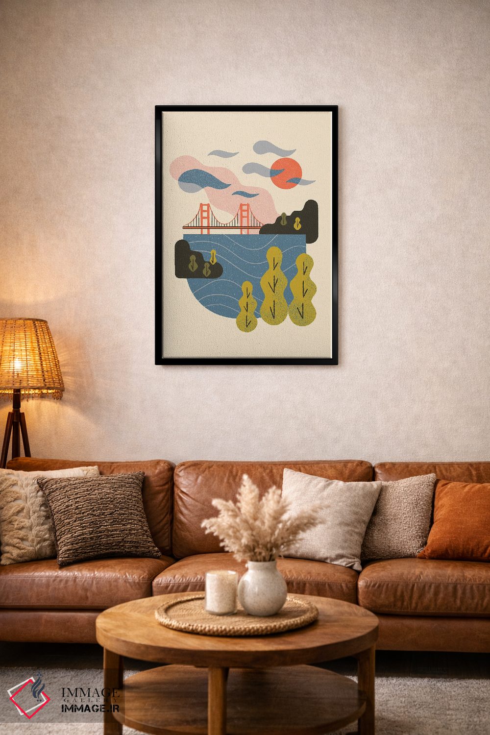 براساس پالت ترکیبی اثر، قاب بلوط روشن (چوبی) پیشنهاد اول است و استخوانی ملایم مکمل. برای سفارشهای پروژهای با ابعاد و قابهای اختصاصی با ایماژ در تماس باشید.