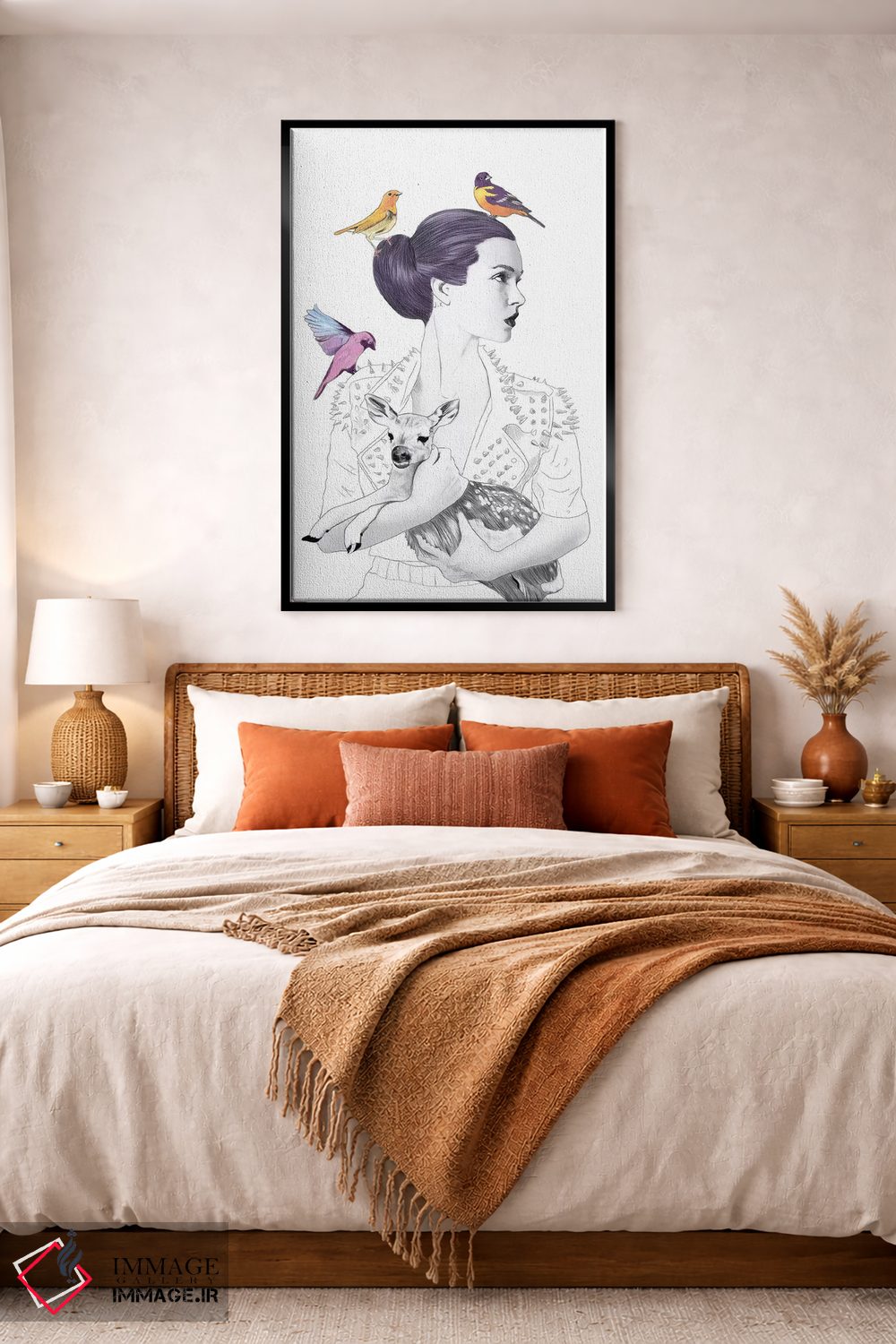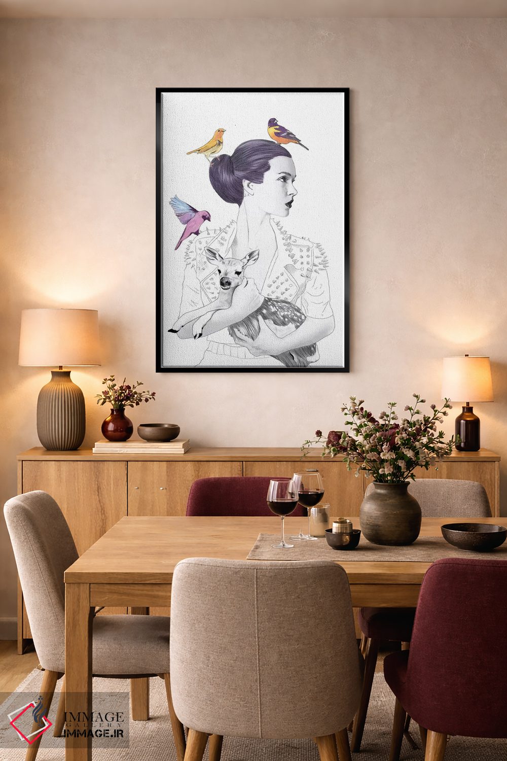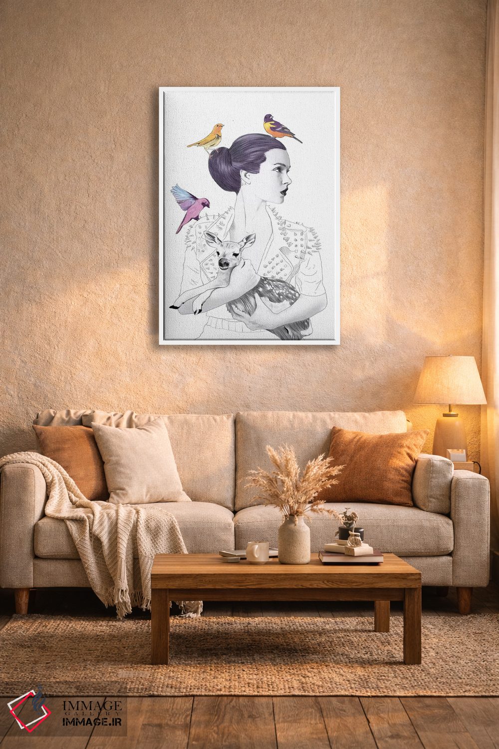 بوم گالری ایماژ نسخهی چیدماناتیوِ گالریپسند از یک اثر هنری است؛ روی کنواس سفیدِ یکدست و بدون اسید با چاپ هنری به استاندارد جیکلی (Giclée) و رنگدانههای آرشیوی Epson UltraChrome HDR، در گذارهای رنگی، لطافت بیشتری حس میشود. آمادهی نصب روی دیوار؛ کشیدگی دقیق روی چهارچوب و ارائهی مرتب. در صورت تمایل میتوانید نسخهی قابدار را هم انتخاب کنید یا برای قاب و اندازه سفارشی با ما در تماس باشید.