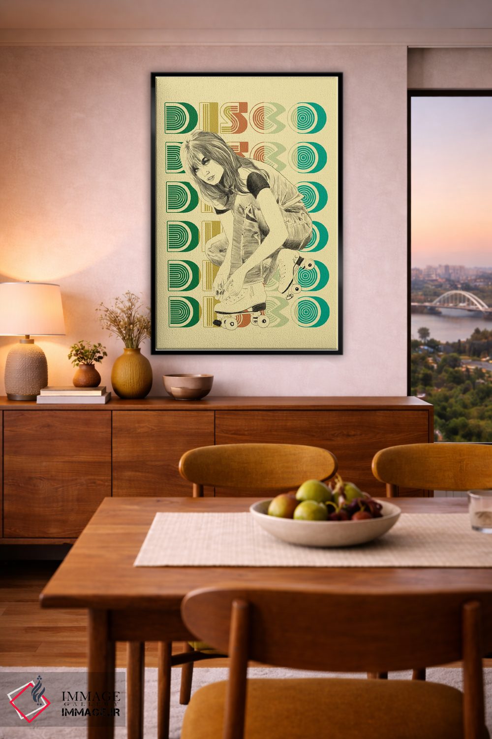 این تابلو با عنوان «نوزاد دیسکو» اثرِ «جنی روم»، کنار آینه و رختکن یا اتاق لباس عالی مینشیند.