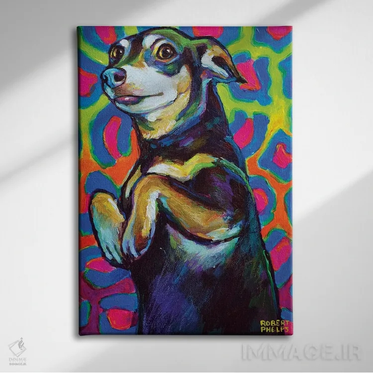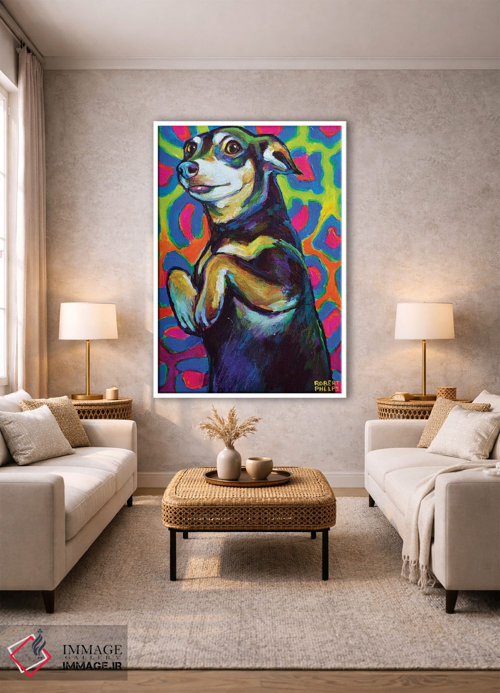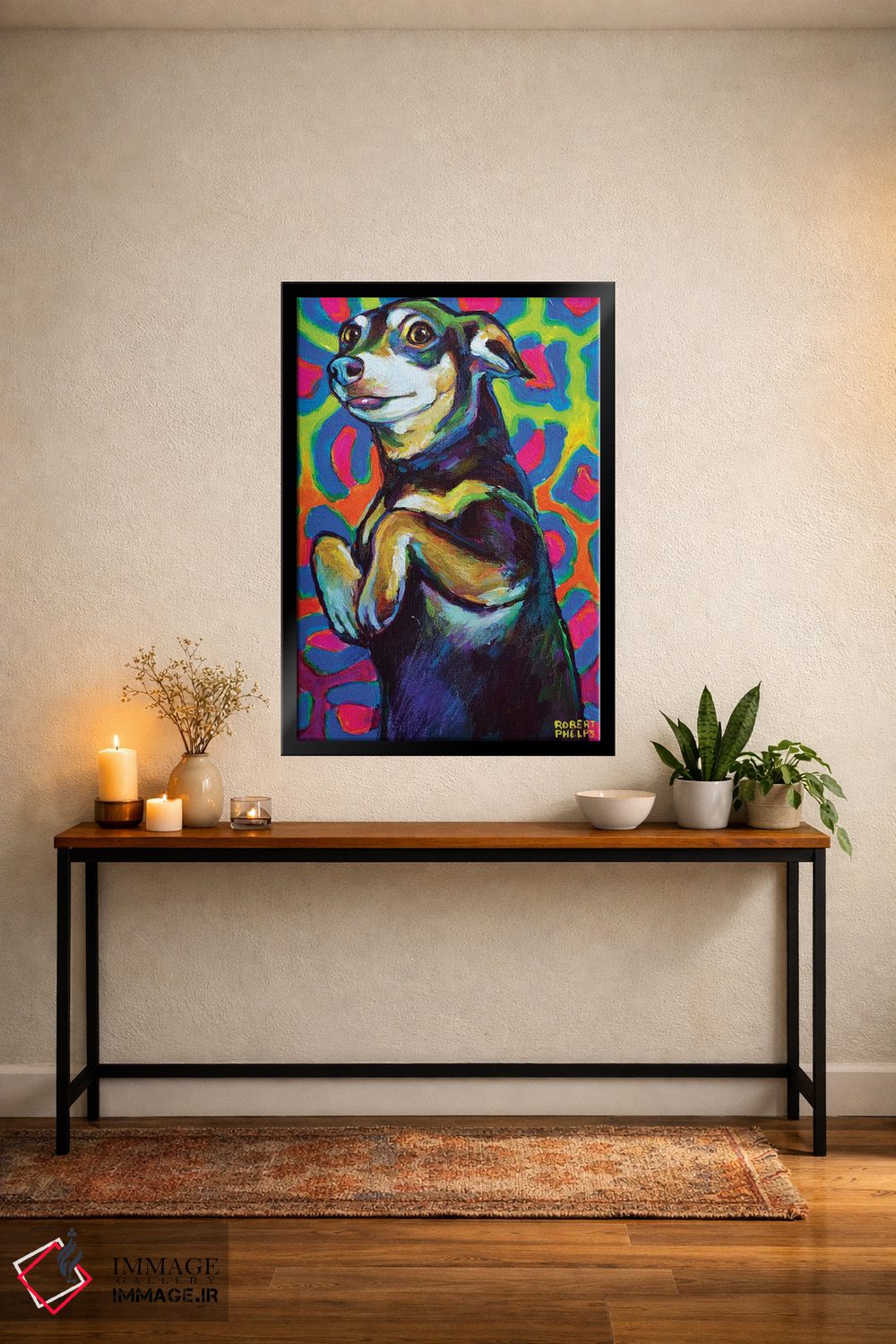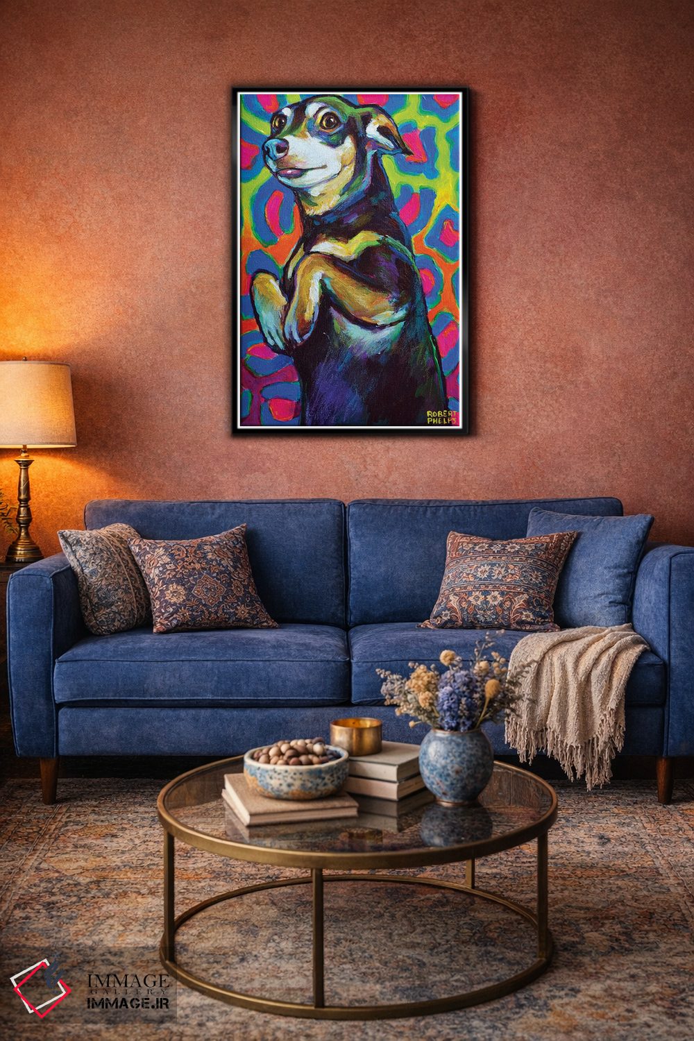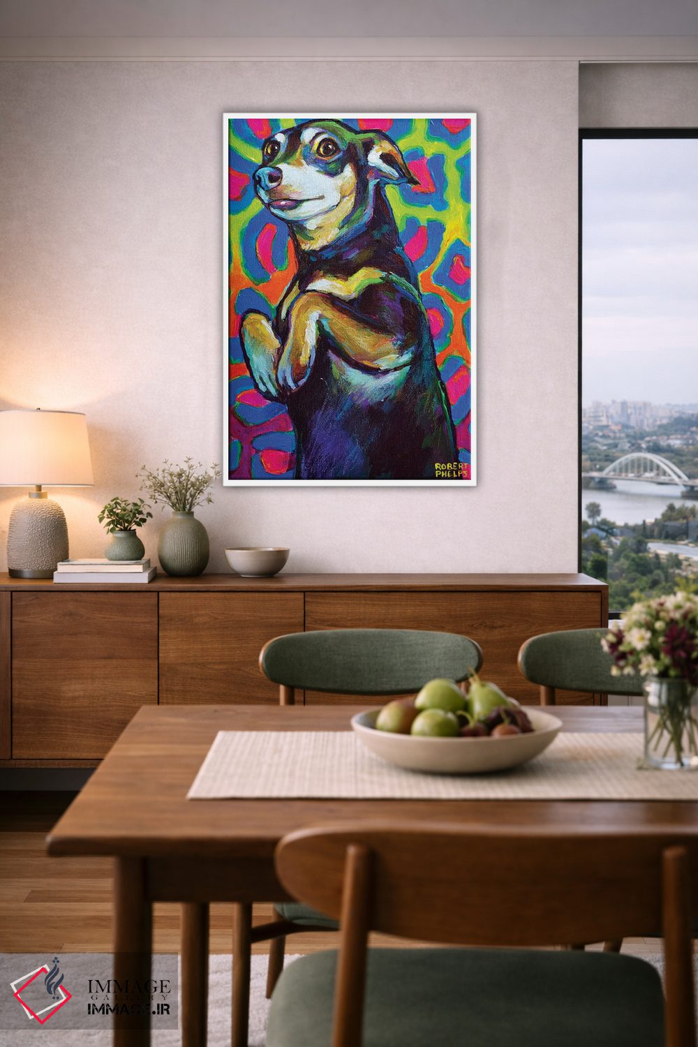 اگر میخواهید دیوار کمی سرزندگیِ محترمانه داشته باشد، «داشهوند سبک پانک راک» اثرِ «رابرت فلپس» مثل یک امضای بامزه اما متین عمل میکند، برای دکورهای مدرن و مینیمال گزینهٔ مناسبیست. حسش صمیمی است، اما کیفیتش جدی و خوشپرداخت.