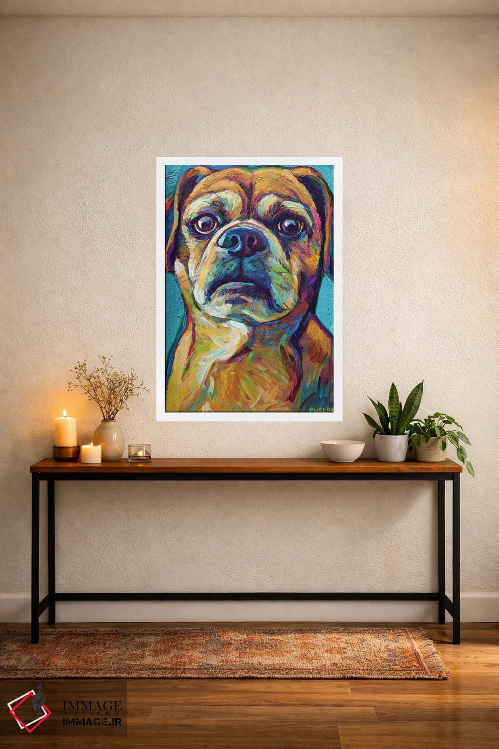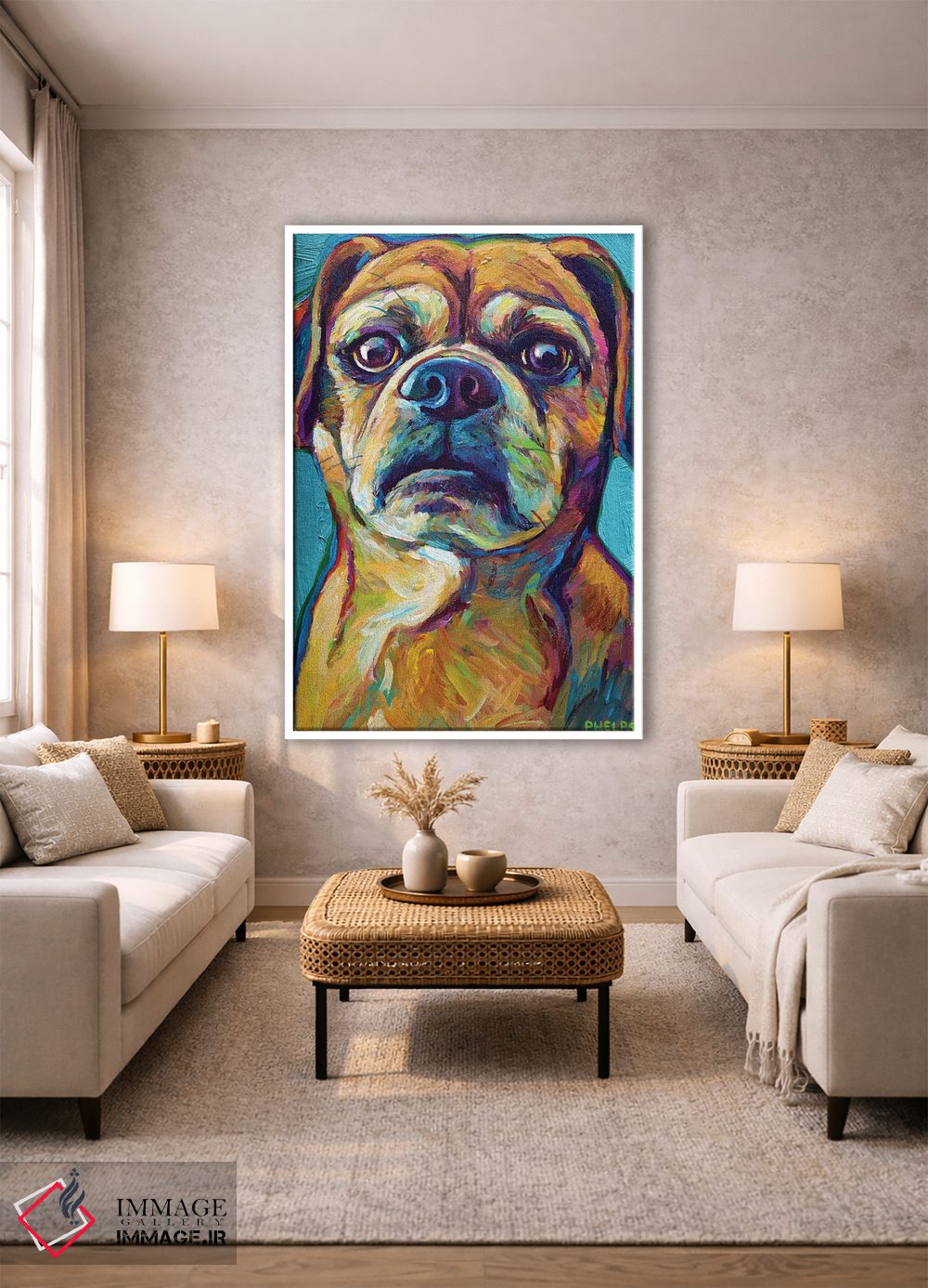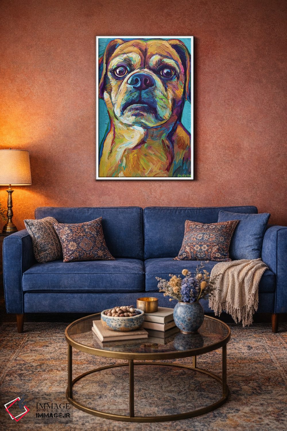 برای دیوارهای ساده، «پاگل روی پسزمینه آبی (پاگل: سگ دورگه پاگ و بیگل)» اثرِ «رابرت فلپس» برای دکورهای مینیمال، یک نقطهٔ توجه میسازد؛ برای کافههای کوچک و صمیمی انتخابی خوشسلیقه است. به دیوار، قصه میدهد—اما قصهای آرام و شیک.