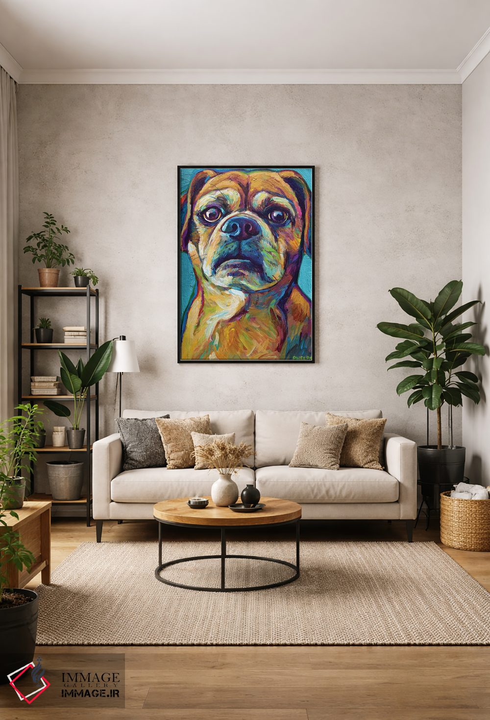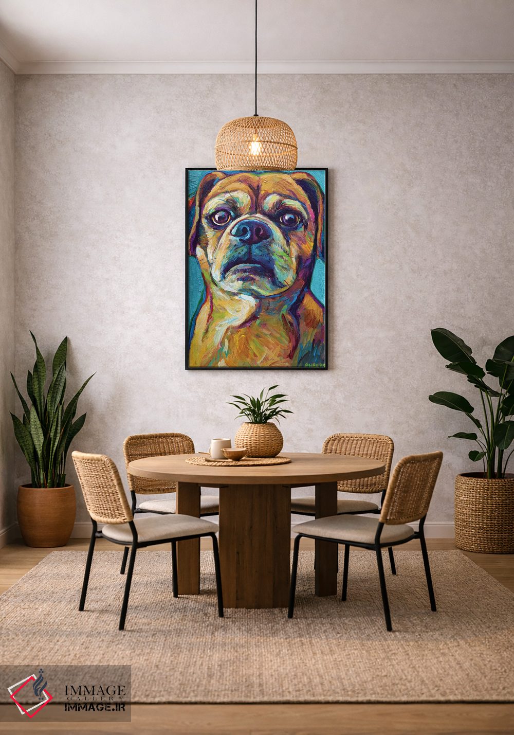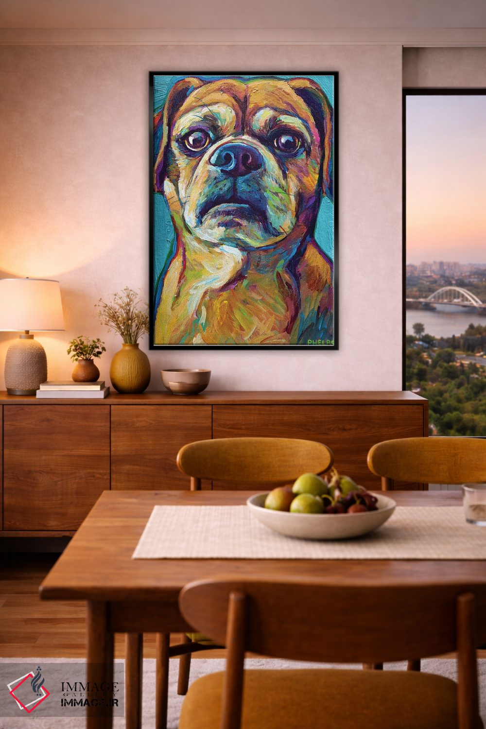 برای دیوارهای ساده، «پاگل روی پسزمینه آبی (پاگل: سگ دورگه پاگ و بیگل)» اثرِ «رابرت فلپس» برای دکورهای مینیمال، یک نقطهٔ توجه میسازد؛ برای کافههای کوچک و صمیمی انتخابی خوشسلیقه است. به دیوار، قصه میدهد—اما قصهای آرام و شیک.