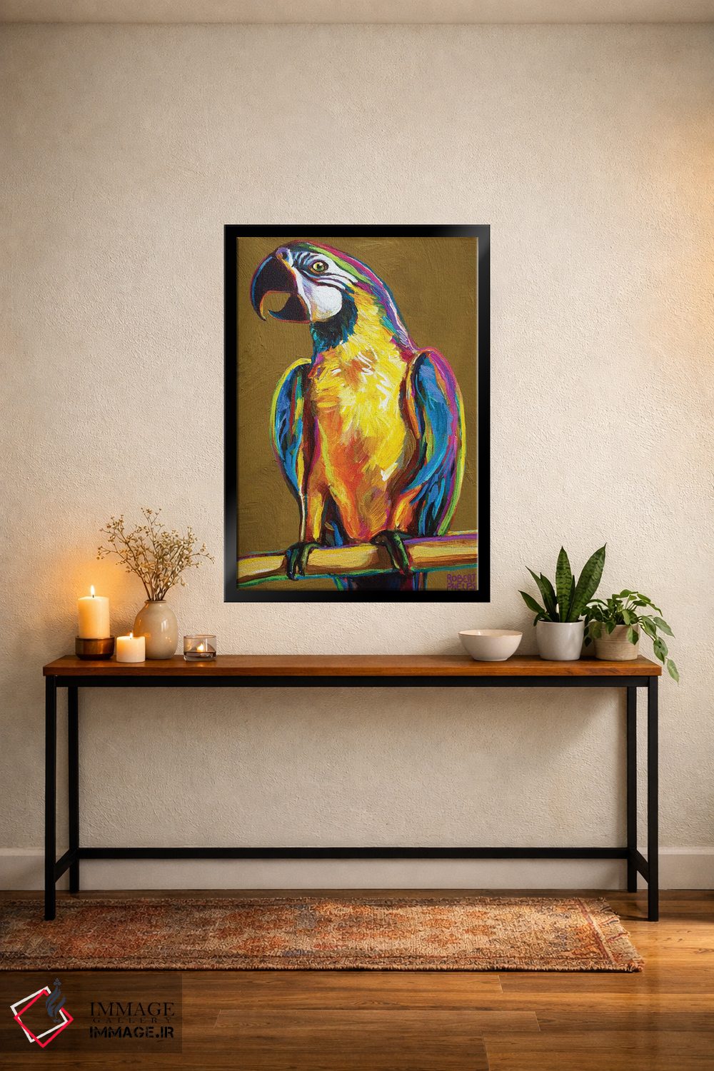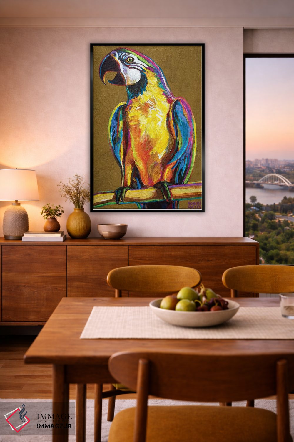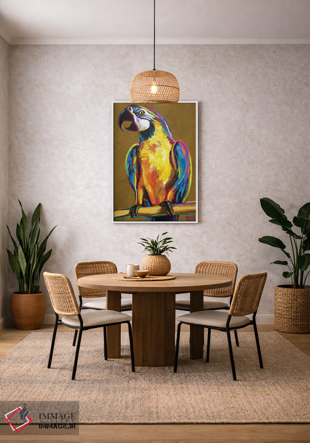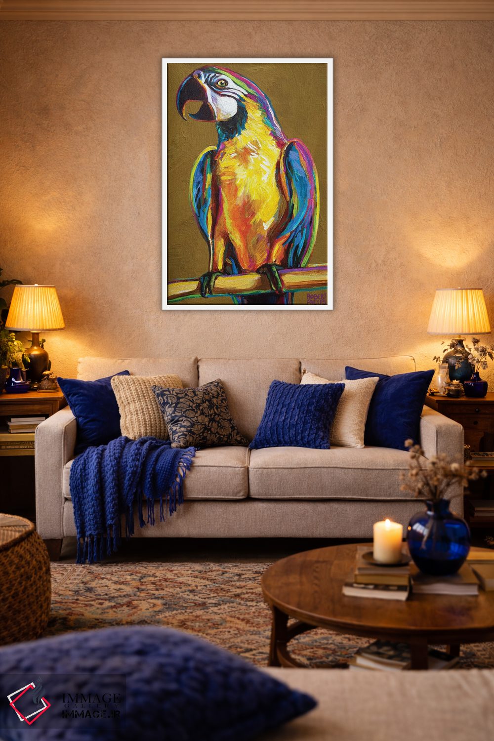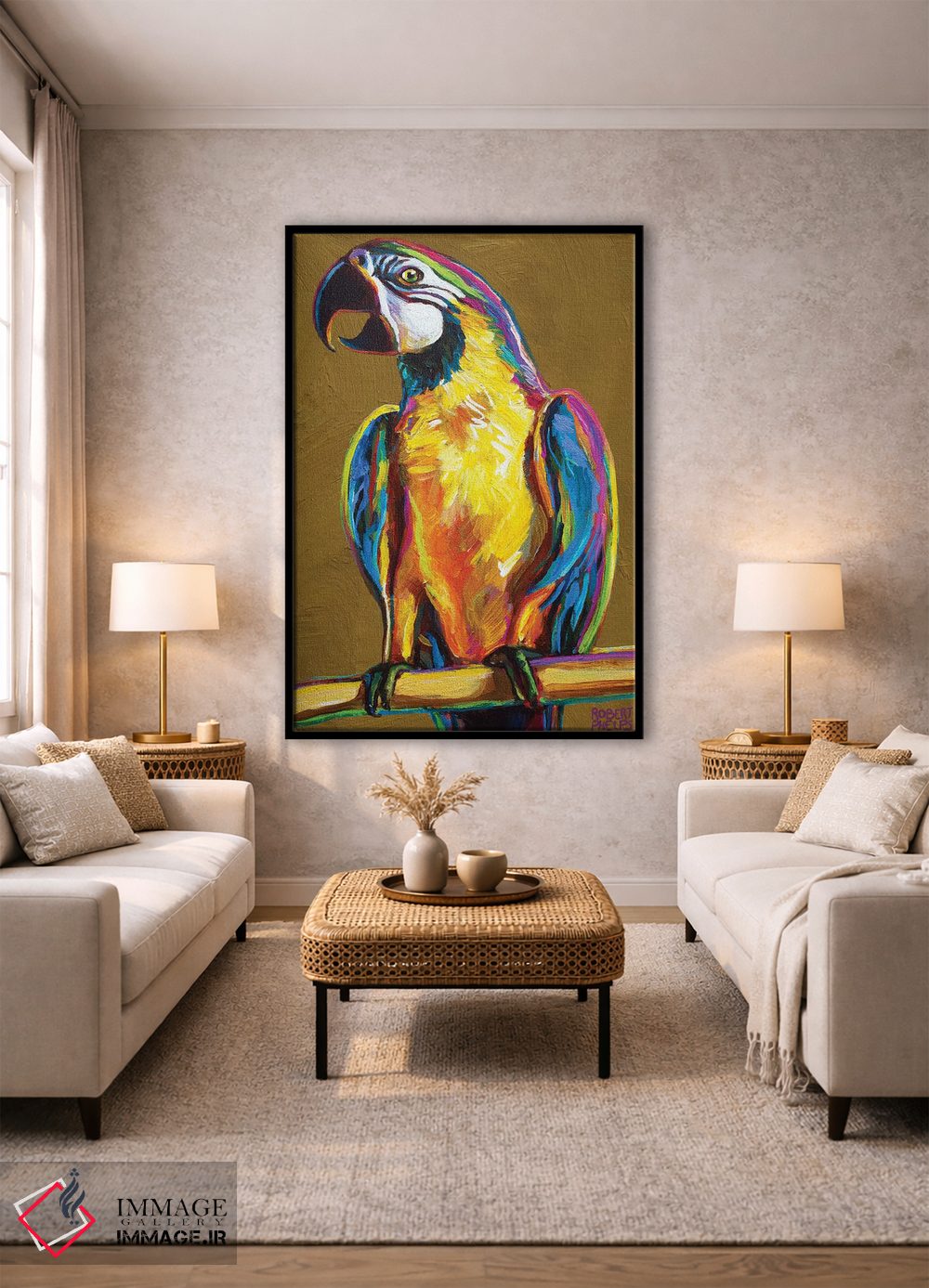 برای اتاقی که به یک عنصر دوستداشتنی نیاز دارد، «طوطی روی طلایی» اثرِ «رابرت فلپس» برای دکورهای مینیمال، یک نقطهٔ توجه میسازد؛ برای خانههایی با چوب و پارچههای گرم انتخابی خوشسلیقه است. برای دیوار گالریوار هم گزینهٔ خوبیست.