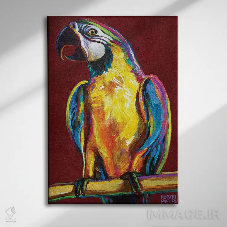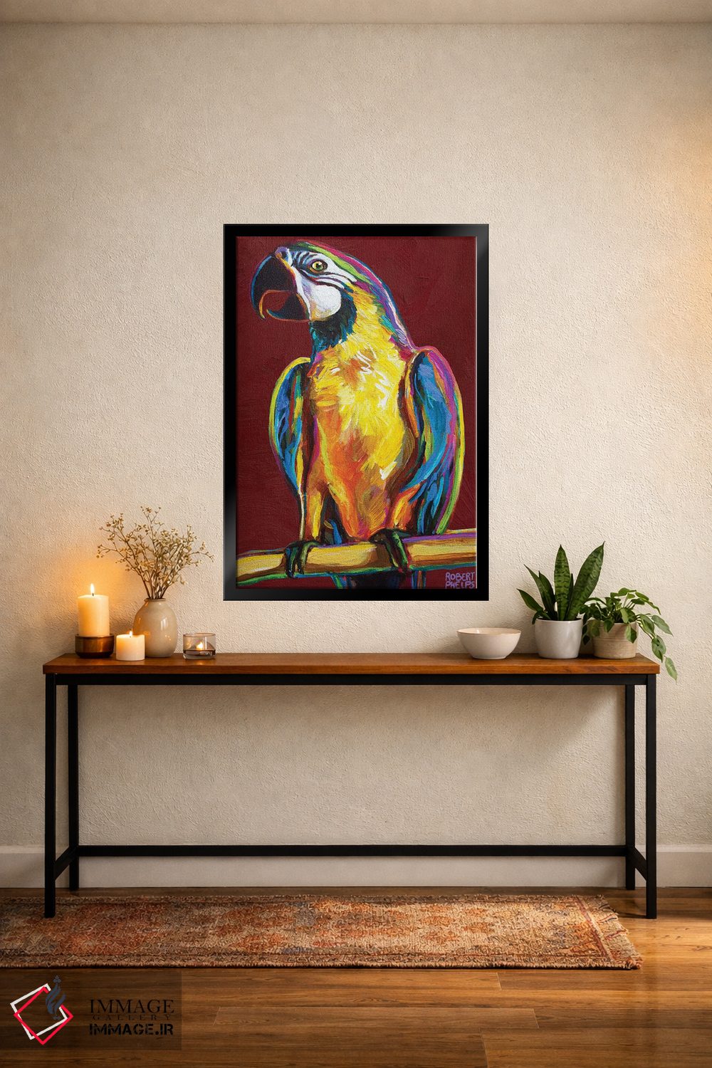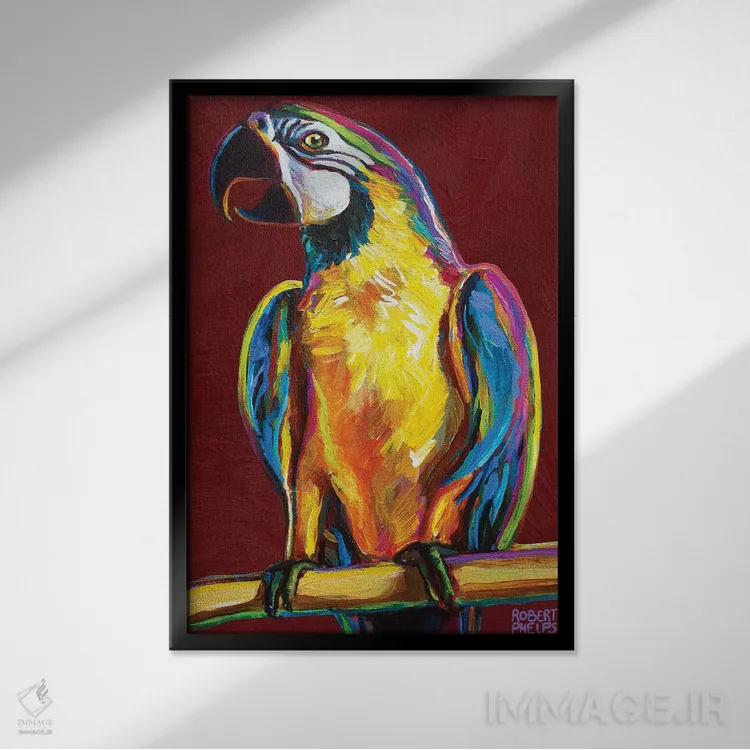 تابلو دکوراتیو طوطی روی قرمز اثر رابرت فلپس