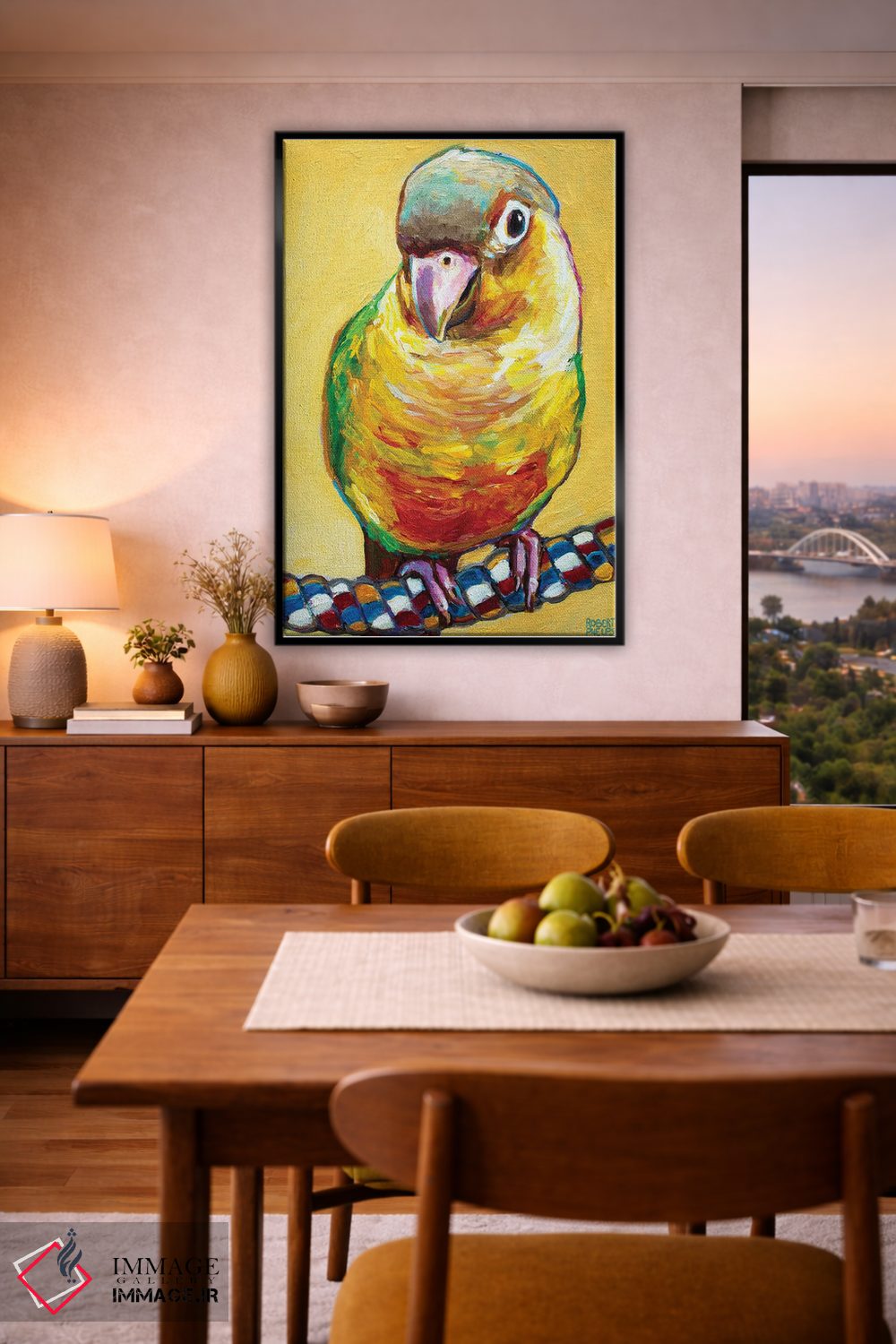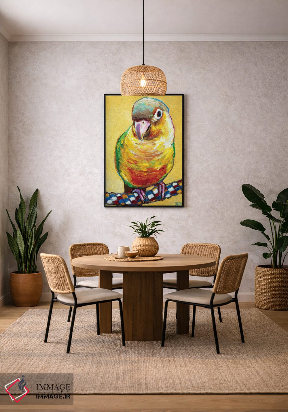 «کونور روی زرد (کونور: نوعی طوطی کوچک)» اثرِ «رابرت فلپس» از آن کارهاییست که برای دکورهای مینیمال، یک نقطهٔ توجه میسازد؛ برای نشیمنهای خانوادگی انتخاب خوبیست. اگر دنبال اثر دوستداشتنیِ «بیغلو» هستید، این یکی دقیق مینشیند.