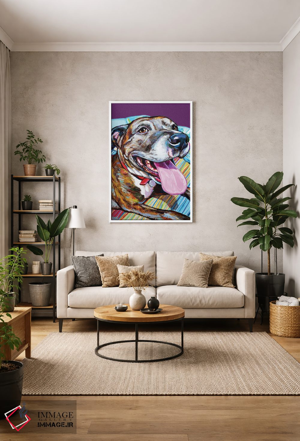 این اثر با عنوان «پارکر پیتبول» اثرِ «رابرت فلپس» حس طبیعت را بیدغدغه وارد خانه میکند؛ برای اتاق کودک (بدون لحن کودکانه) انتخابی خوشسلیقه است. با قاب چوبی یا مشکی، حس مرتبتری پیدا میکند.