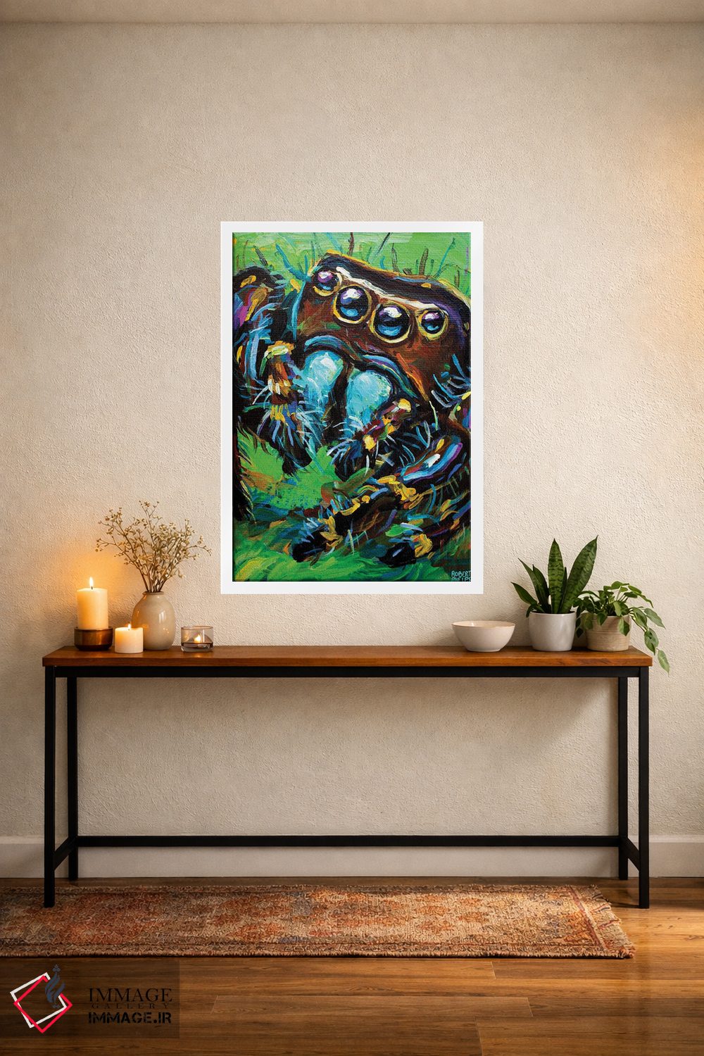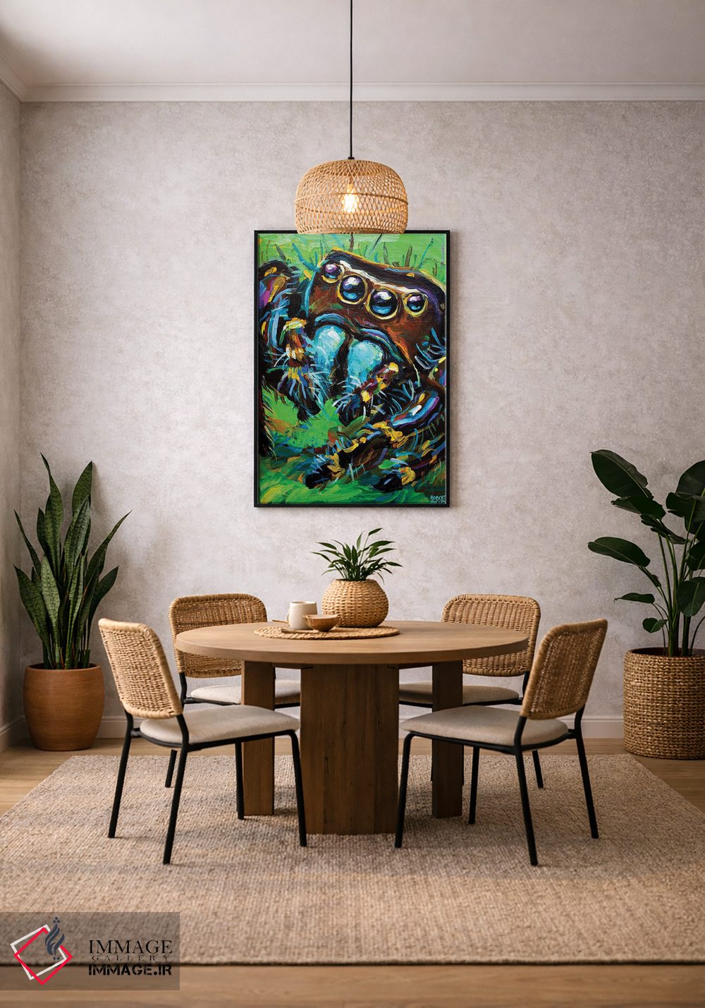 برای دکورهای صمیمی، «عنکبوت جهنده ۱» اثرِ «رابرت فلپس» گرما و شخصیت به فضا اضافه میکند؛ برای هدیهدادن به دوستداران حیوانات انتخابی خوشسلیقه است. با قاب چوبی یا مشکی، حس مرتبتری پیدا میکند.