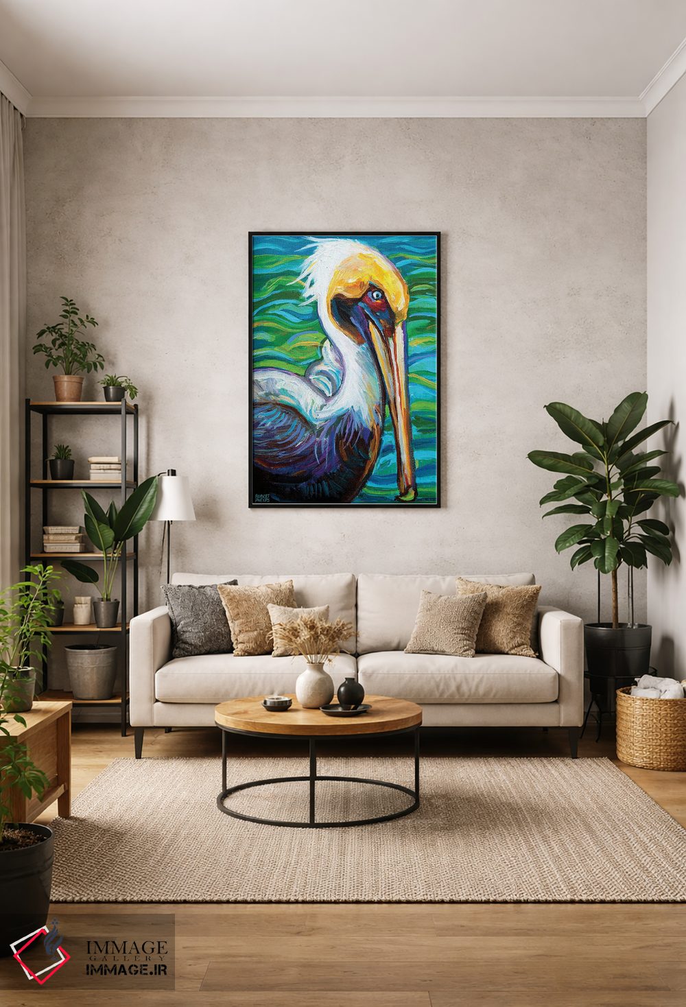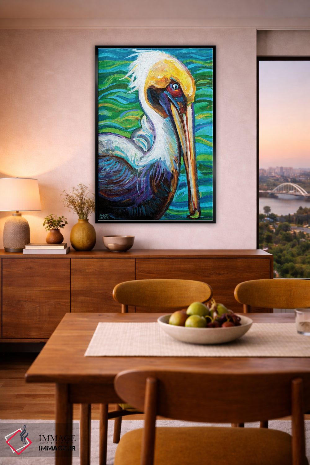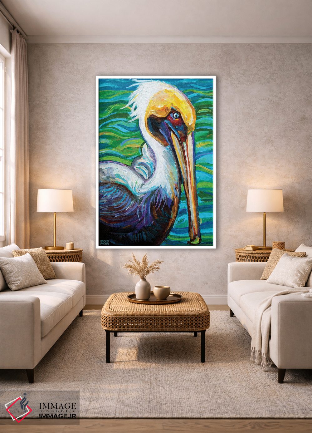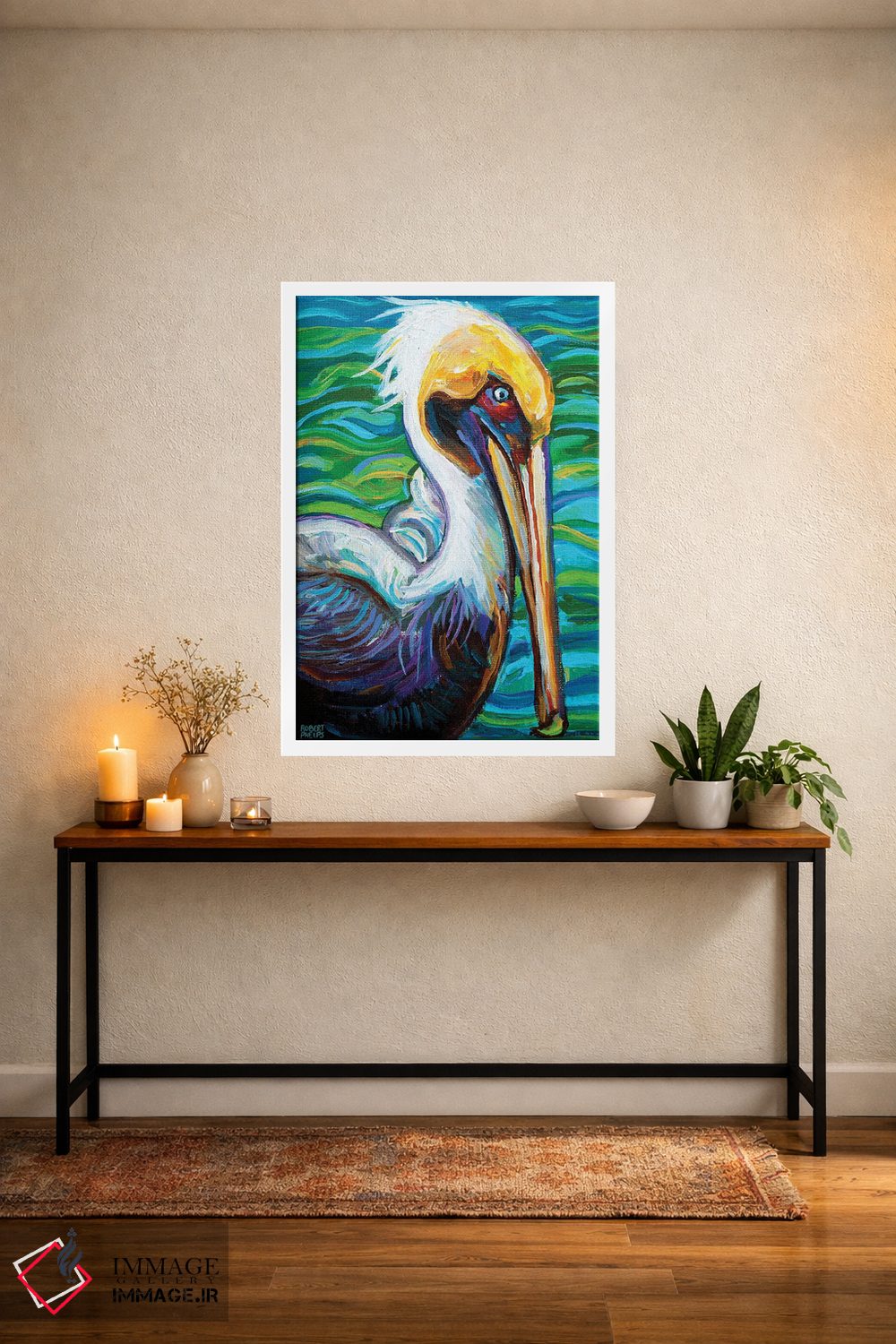تابلو دکوراتیو پلیکان فلوریدا اثر رابرت فلپس - نمای روبه‌رو روی دیوار