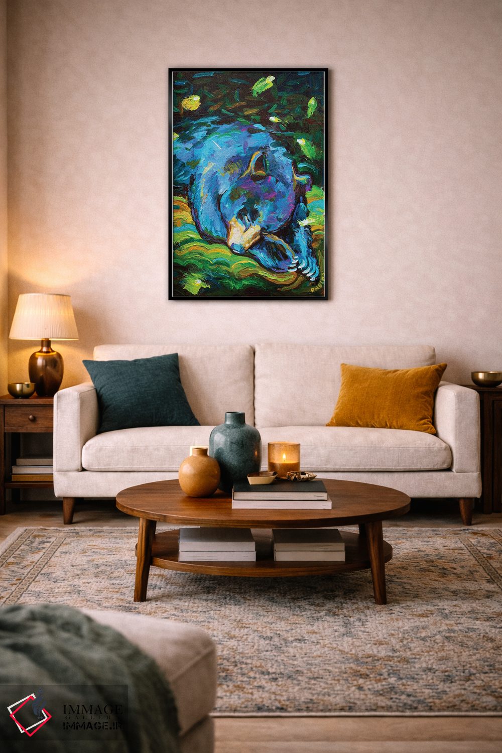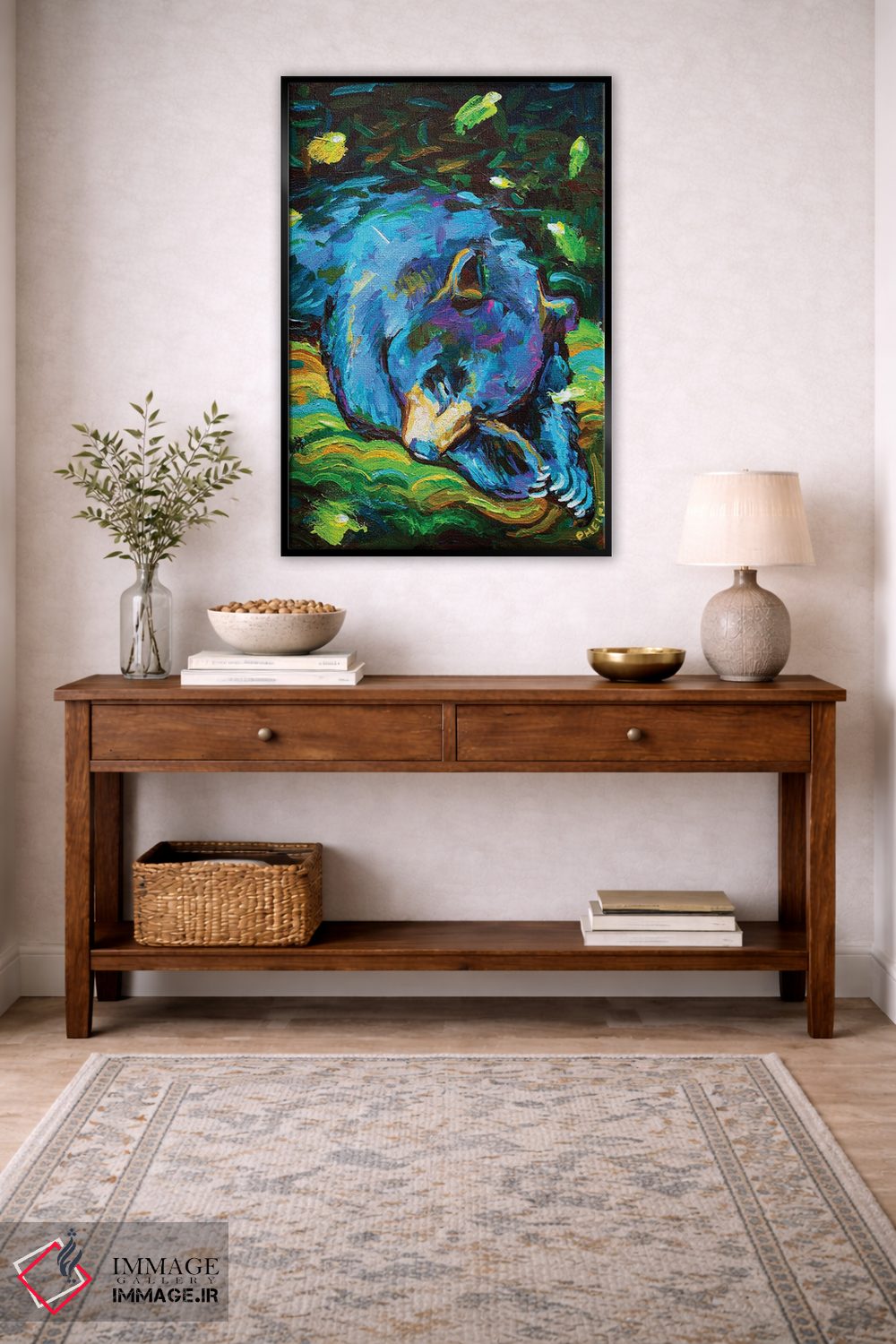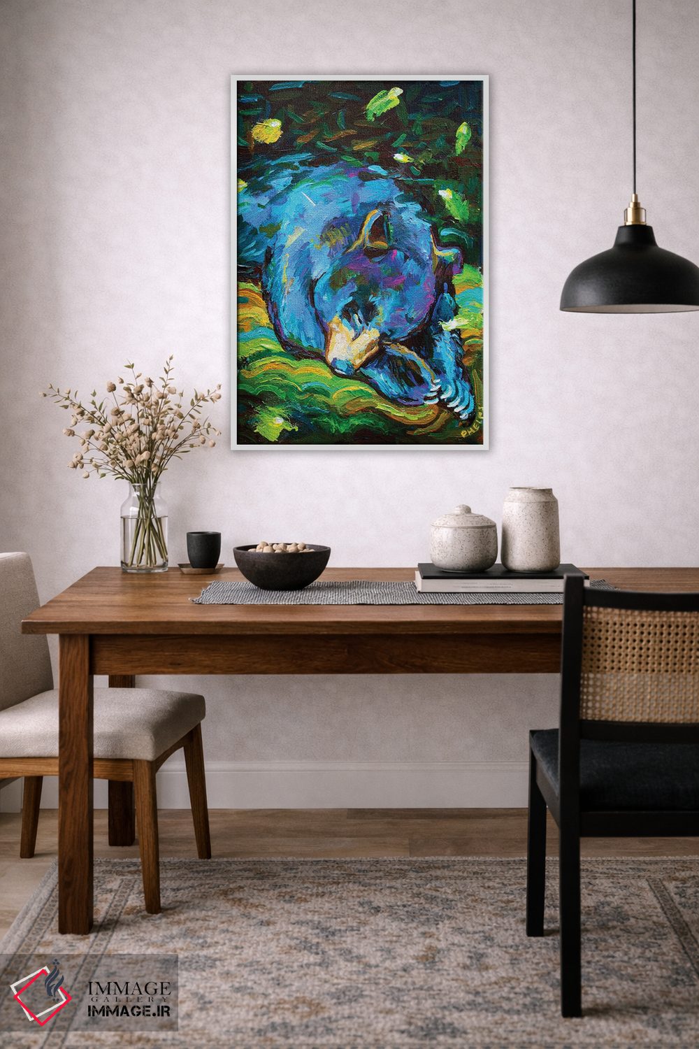 این اثر با عنوان «خرس خوابآلود» اثرِ «رابرت فلپس» حس طبیعت را بیدغدغه وارد خانه میکند؛ برای دکورهای مدرن و مینیمال انتخابی خوشسلیقه است. حسش صمیمی است، اما کیفیتش جدی و خوشپرداخت.