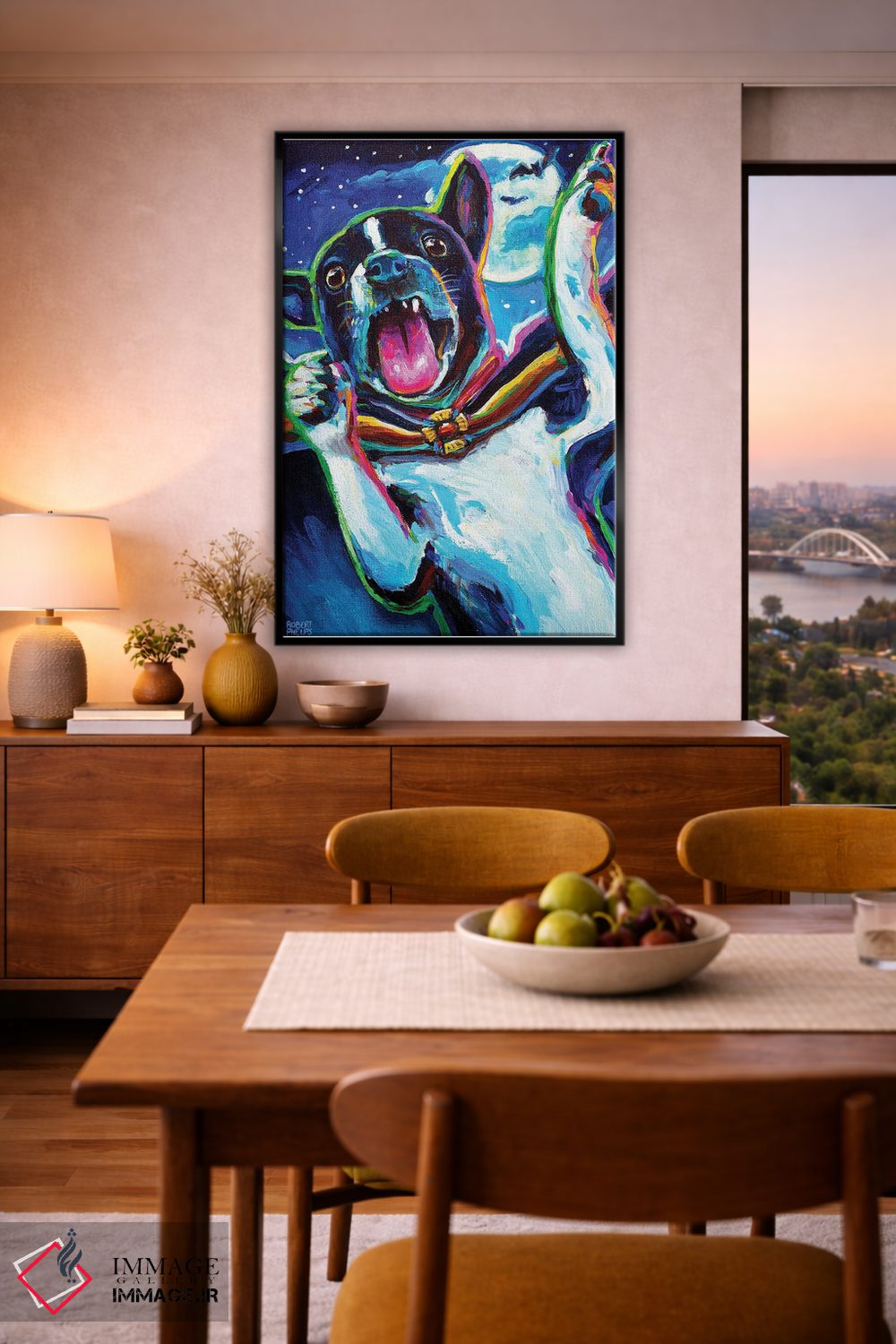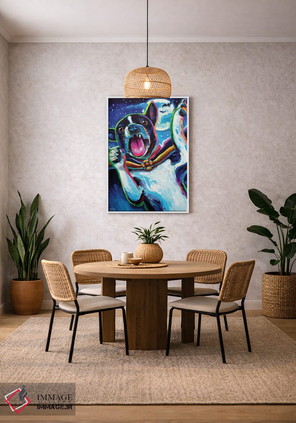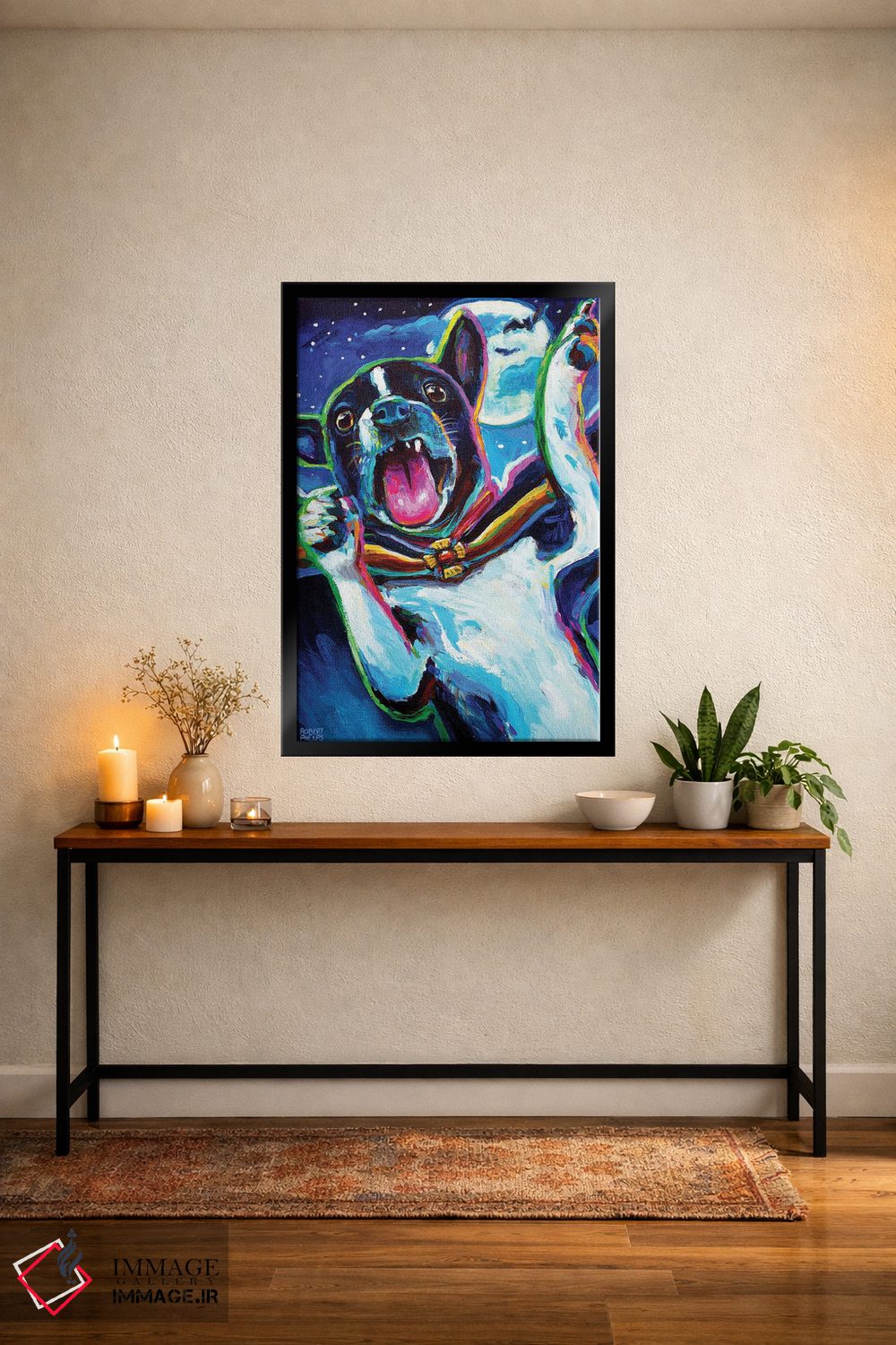 برای دکورهای صمیمی، «توله سگ خونآشام یک» اثرِ «رابرت فلپس» گرما و شخصیت به فضا اضافه میکند؛ برای خانههایی با چوب و پارچههای گرم انتخابی خوشسلیقه است. با نورپردازی نقطهای، جذابتر هم میشود.
