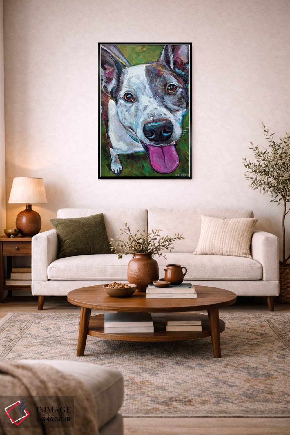 براساس پالت ترکیبی اثر، قاب تیک گرم (چوبی) پیشنهاد اول است و مشکی مات (فریم متوسط) مکمل. برای سفارشهای پروژهای با ابعاد و قابهای اختصاصی با ایماژ در تماس باشید.