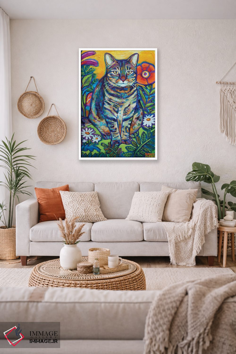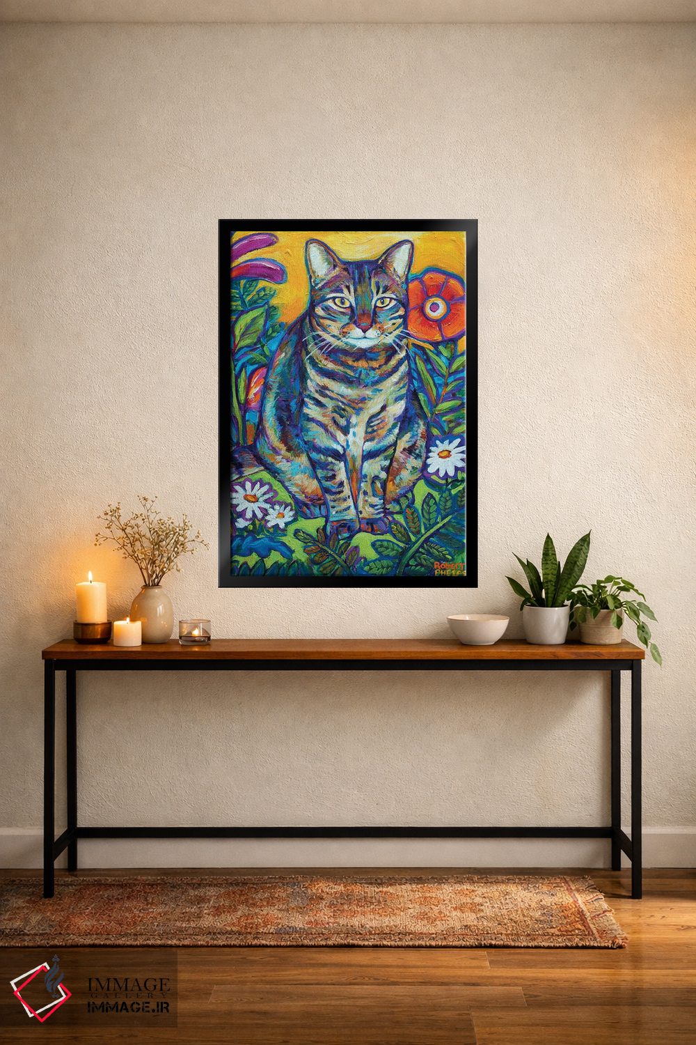 «گربه باغی» اثرِ «رابرت فلپس» میتواند بافت و جزئیات را طوری نشان بدهد که نگاه میماند؛ برای نشیمنهای خانوادگی پیشنهاد میشود. به دیوار، قصه میدهد—اما قصهای آرام و شیک.