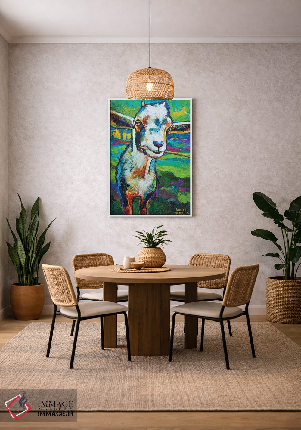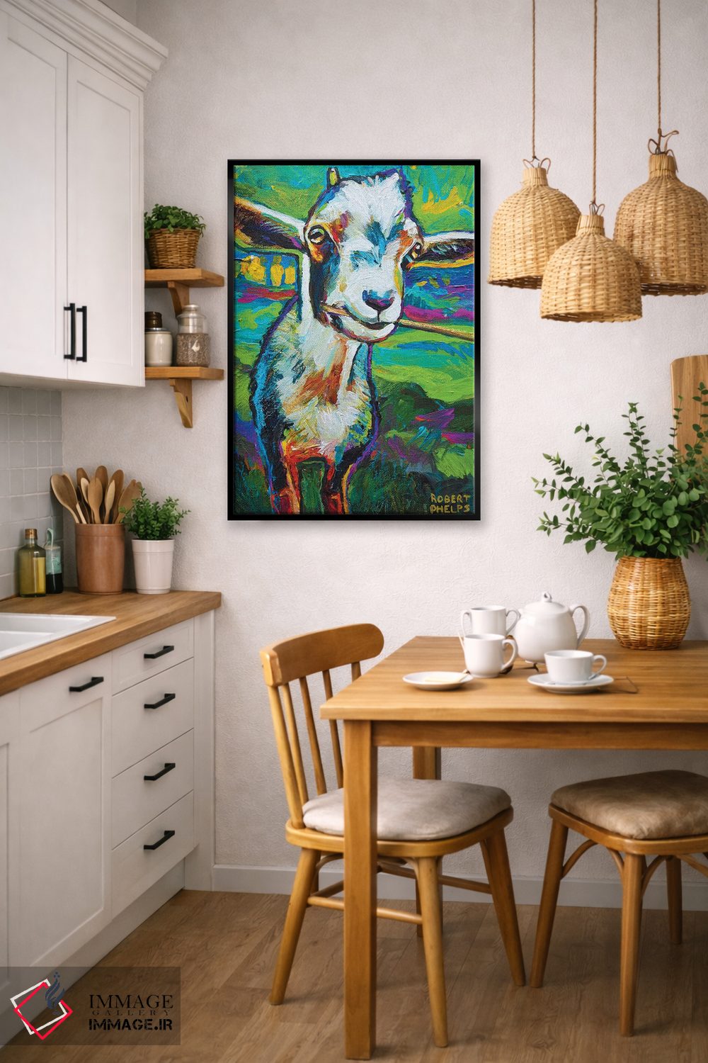 این اثر با عنوان «تئو بز» اثرِ «رابرت فلپس» برای دکورهای مینیمال، یک نقطهٔ توجه میسازد؛ برای فضاهای روستیک یا بوهو انتخابی خوشسلیقه است. به دیوار، قصه میدهد—اما قصهای آرام و شیک.