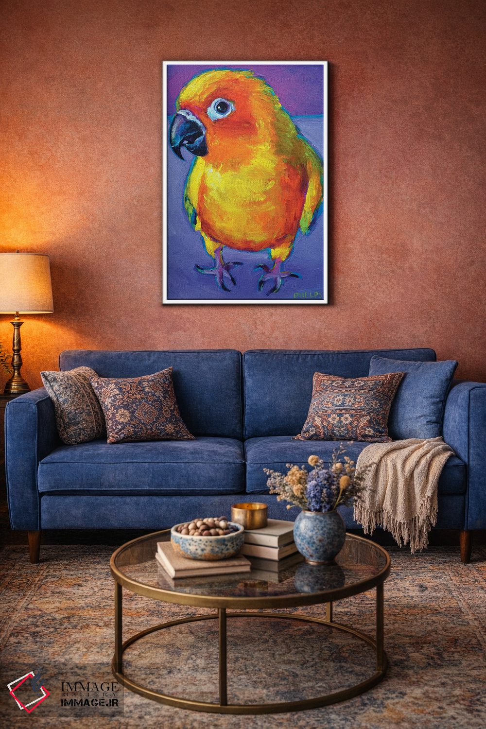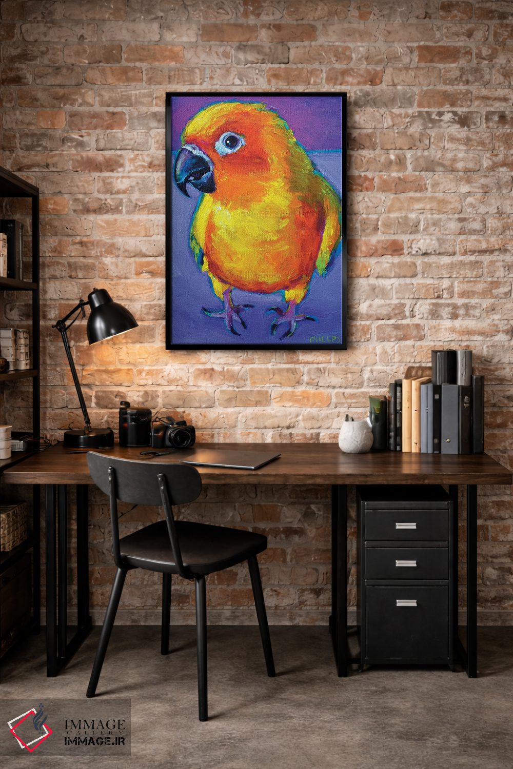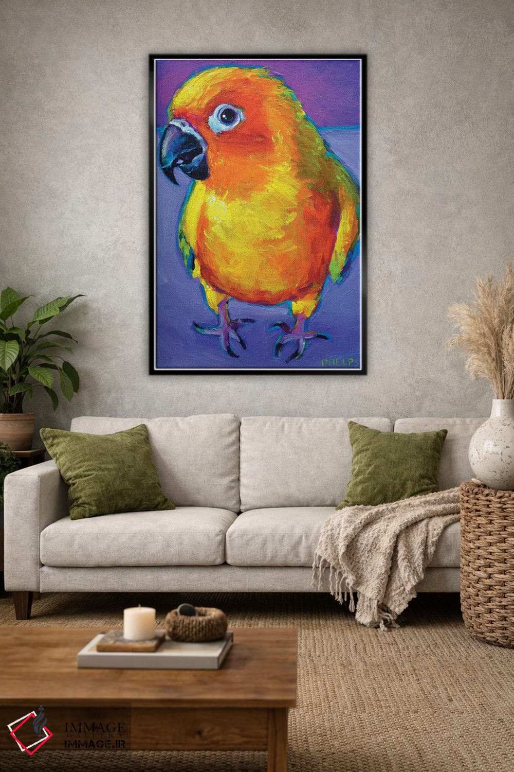 «طوطی آفتابی (سان کانور)» اثرِ «رابرت فلپس» از آن کارهاییست که به دیوار، انرژیِ نرم و زنده میدهد؛ برای خانههایی با چوب و پارچههای گرم انتخاب خوبیست. هم فضا را گرم میکند، هم شلوغش نمیکند.