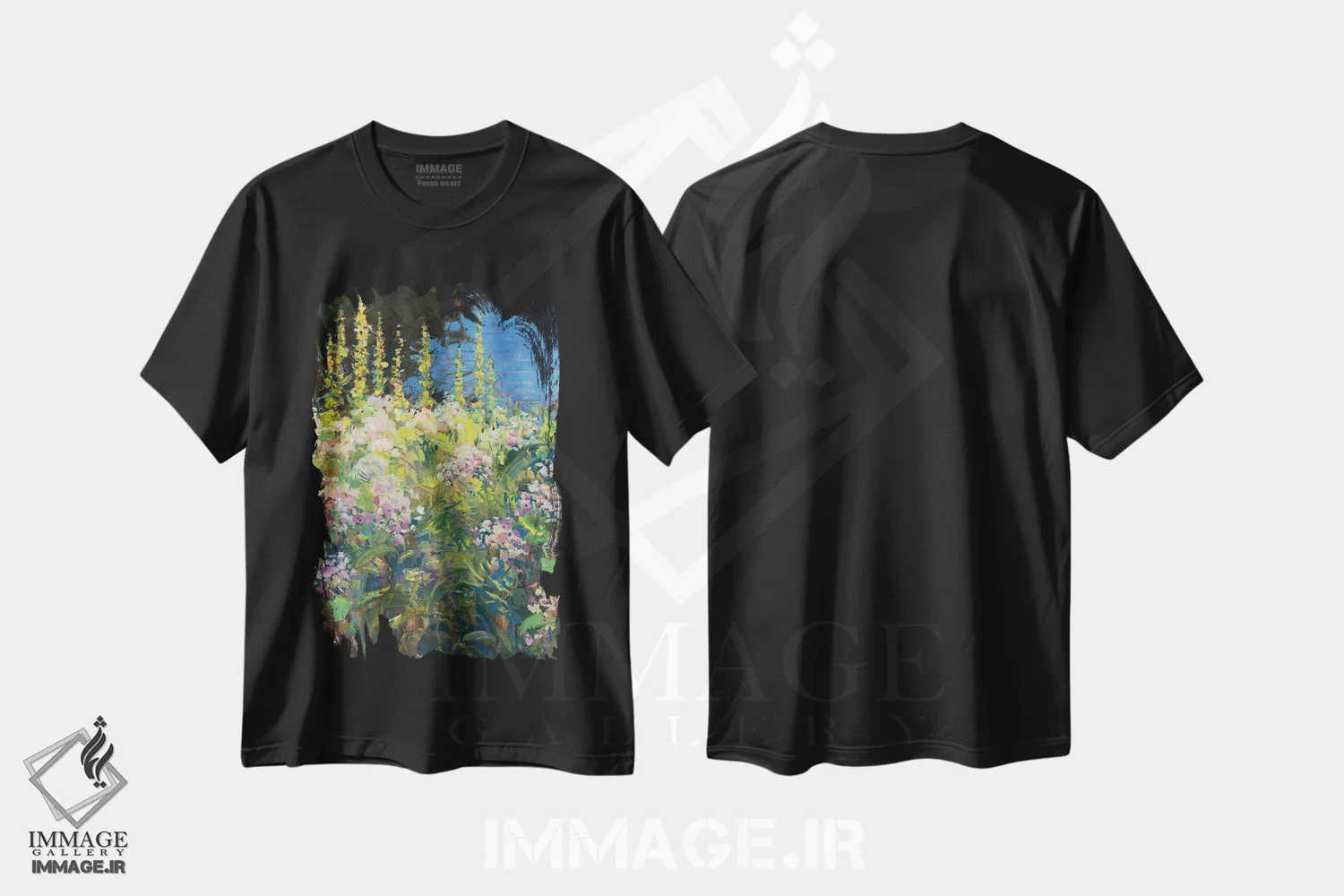 تیشرت مشکی طرح دار گل ختمی، هنر فاخر معاصر اثر کترین ام الیوت | فروشگاه ایماژ