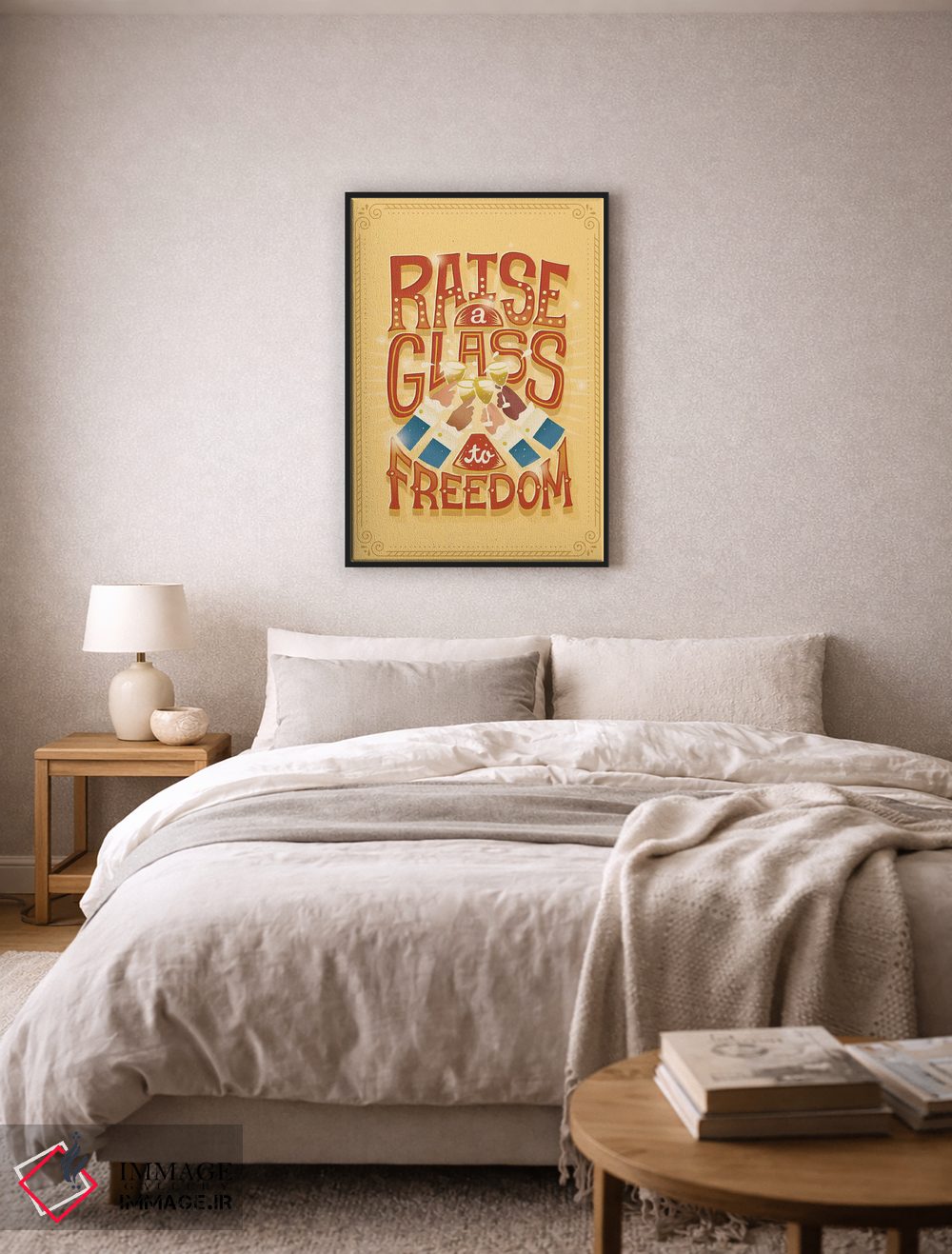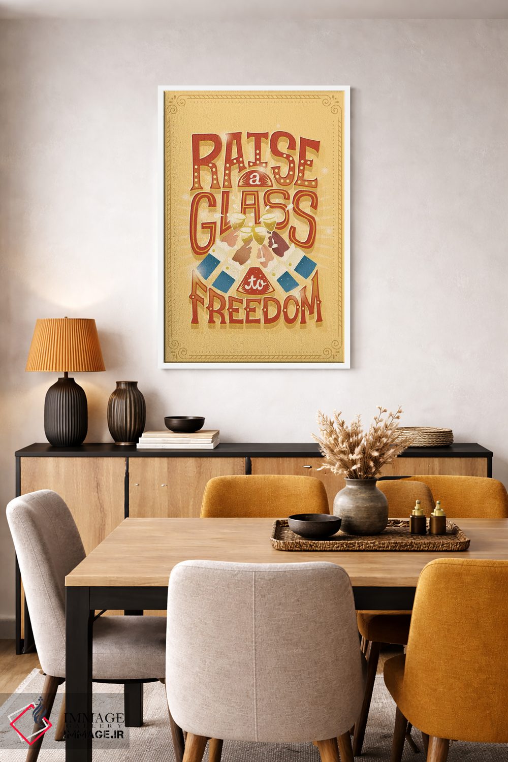 براساس پالت گرم اثر، قاب تیک گرم (چوبی) پیشنهاد اول است و مشکی مات (فریم متوسط) مکمل. برای سفارشهای پروژهای با ابعاد و قابهای اختصاصی با ایماژ در تماس باشید.