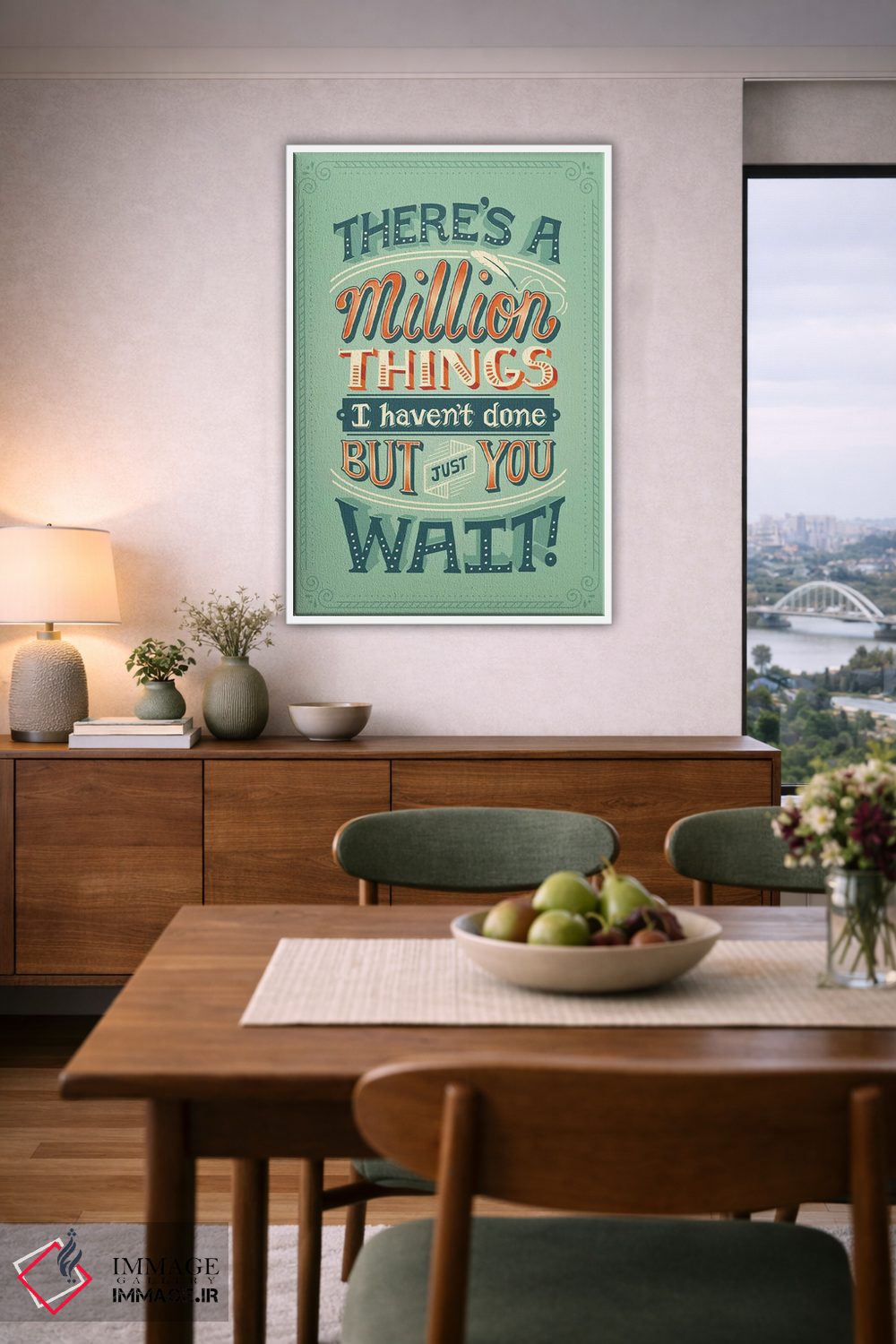 براساس پالت ترکیبی اثر، قاب تیک گرم (چوبی) پیشنهاد اول است و مشکی مات (فریم متوسط) مکمل. برای سفارشهای پروژهای با ابعاد و قابهای اختصاصی با ایماژ در تماس باشید.